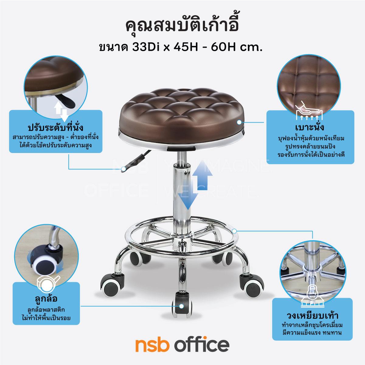 : เก้าอี้บาร์สตูลที่นั่งกลมล้อเลื่อน รุ่น Caspian (แคสเปียน) โช๊คแก๊ส ขาเหล็กชุบโครเมี่ยม