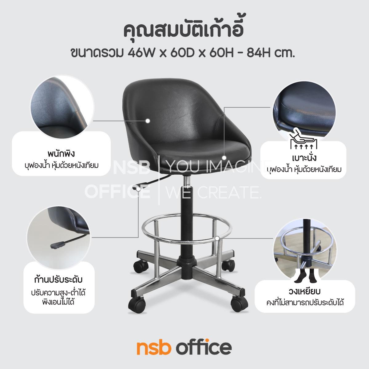 : เก้าอี้บาร์ที่นั่งเหลี่ยมล้อเลื่อน รุ่น Diane (ไดแอน) โช้คแก๊ส ขาเหล็กชุบโครเมี่ยม