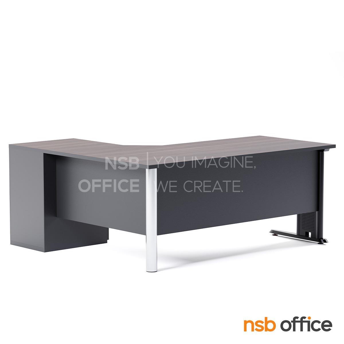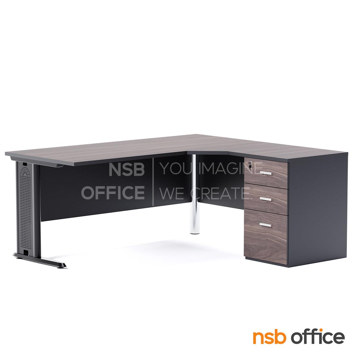 : โต๊ะผู้บริหารตัวแอล 3 ลิ้นชัก รุ่น McLean (แม็กลีน) ขนาด 180W1 ,160W2 cm. (แอลขวา) ขาเหล็ก