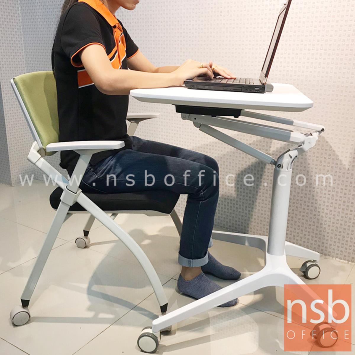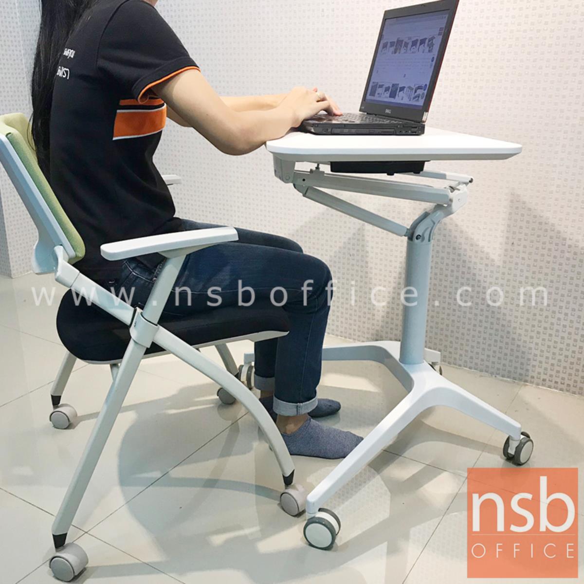 : โต๊ะล้อเลื่อน presenter แบบยืน ปรับสูงต่ำได้ รุ่น Mechelen (เมเคอเลน) หน้าท็อปมีร่องวางปากกา โครงขาอลูมิเนียม