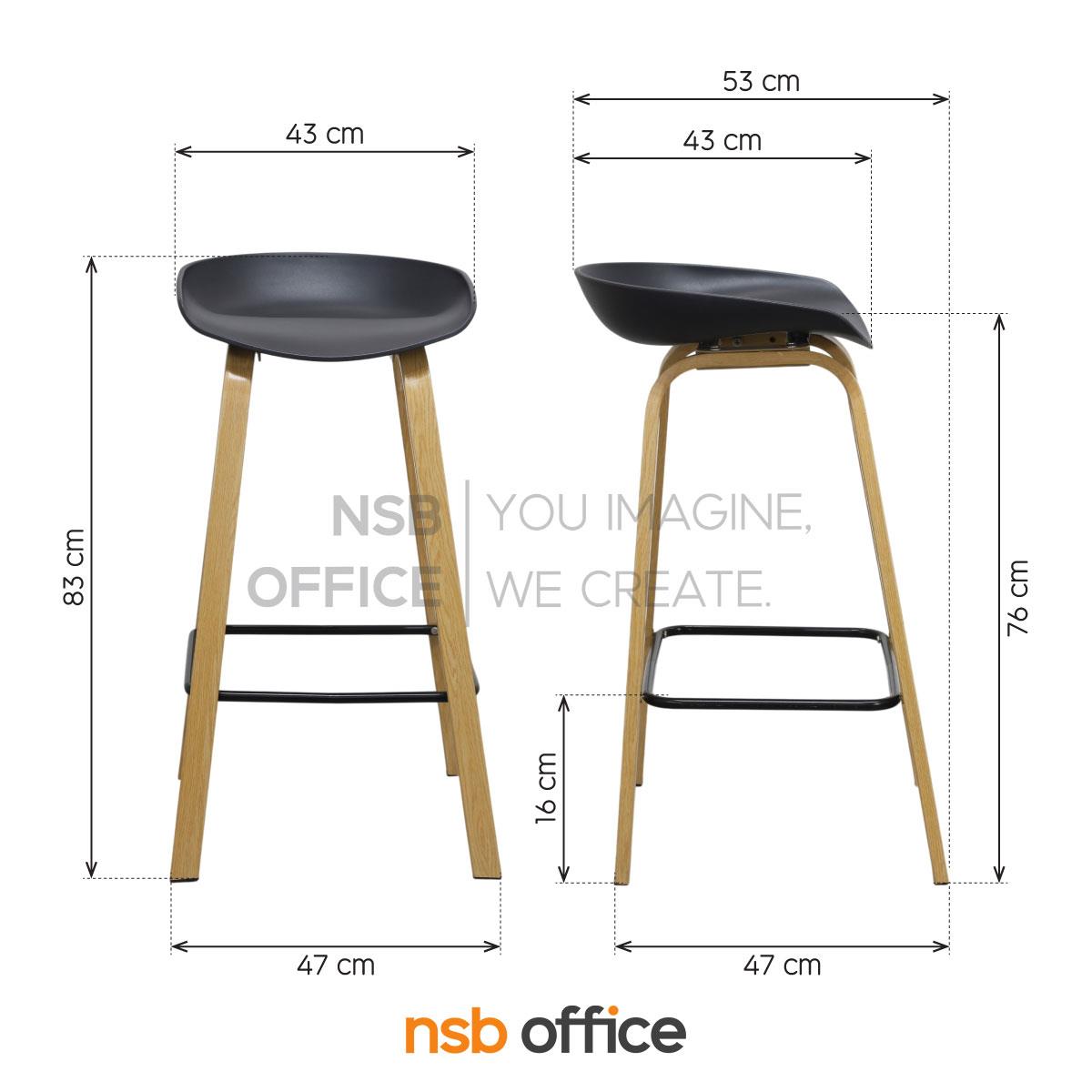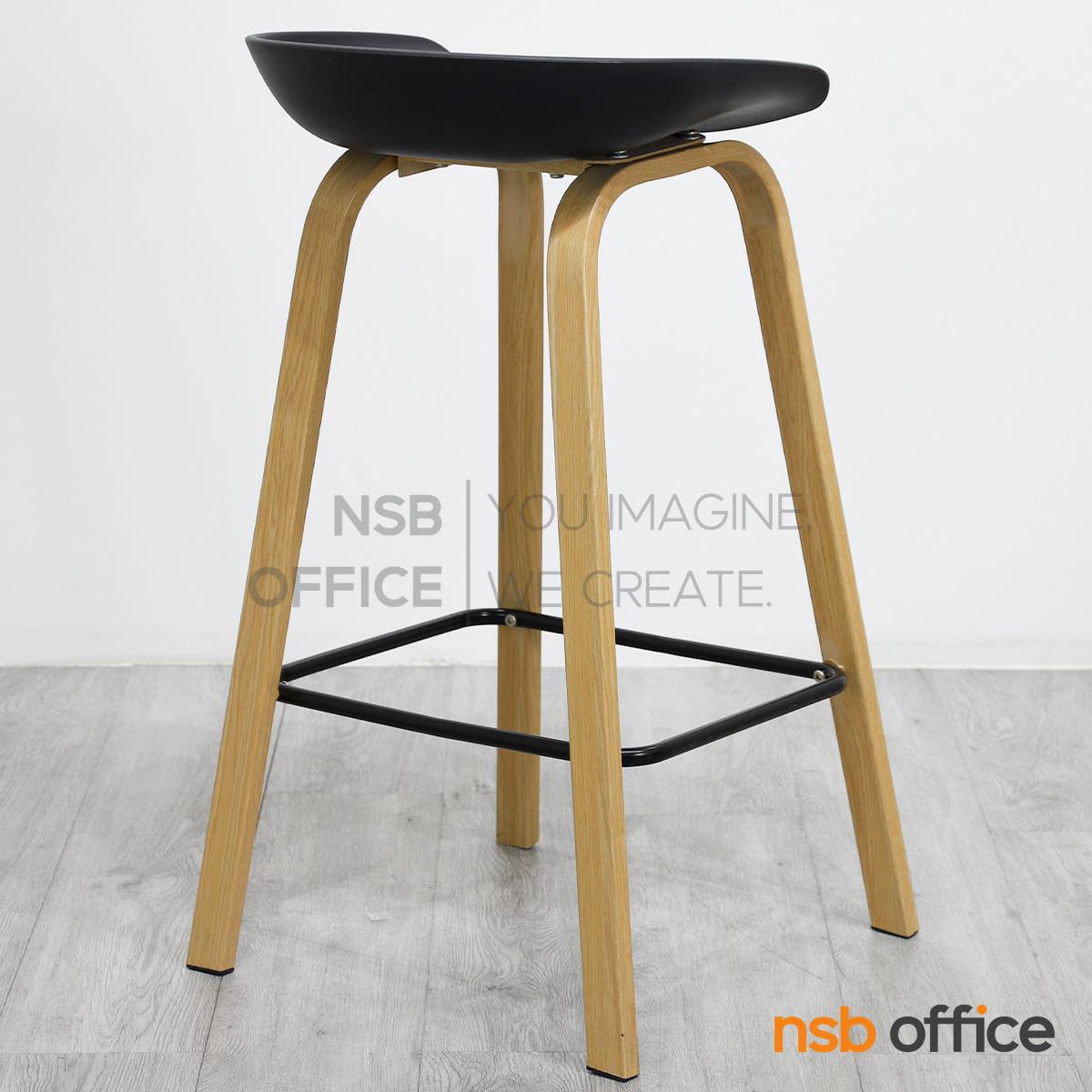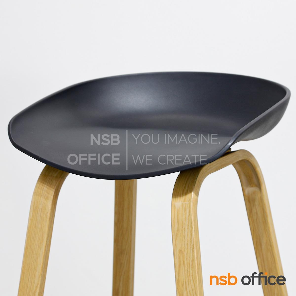 : เก้าอี้บาร์สูงโพลี่ รุ่น Staples (สเตเปิลส์) (โพลี่สีดำ) ขาไม้สีธรรมชาติ พักเท้าเหล็ก