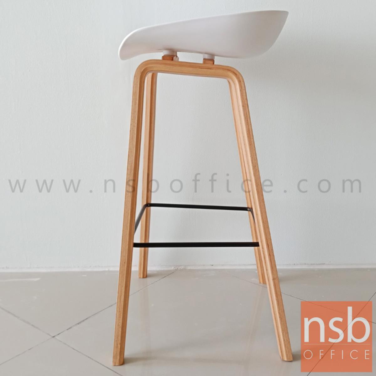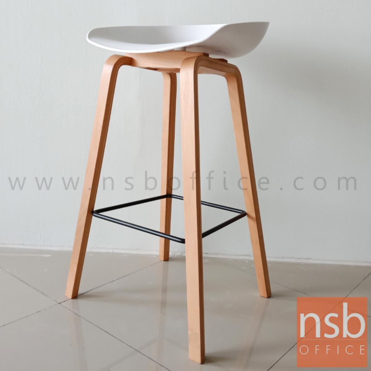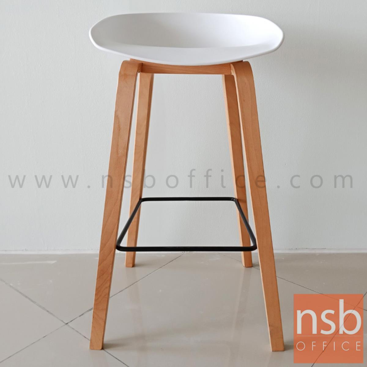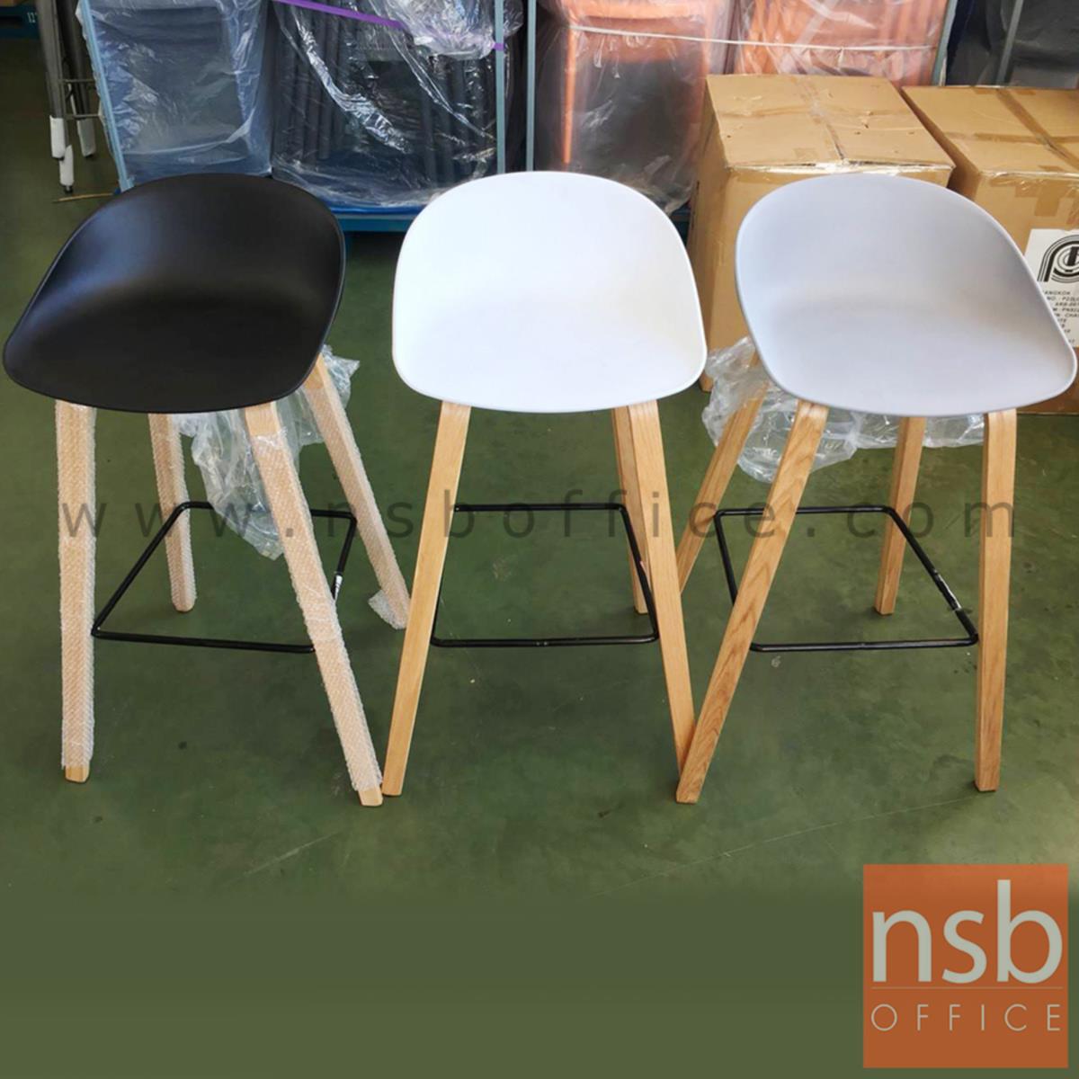 : เก้าอี้บาร์สูงโพลี่ รุ่น Staples (สเตเปิลส์) (โพลี่สีขาว) ขาไม้สีธรรมชาติ พักเท้าเหล็ก