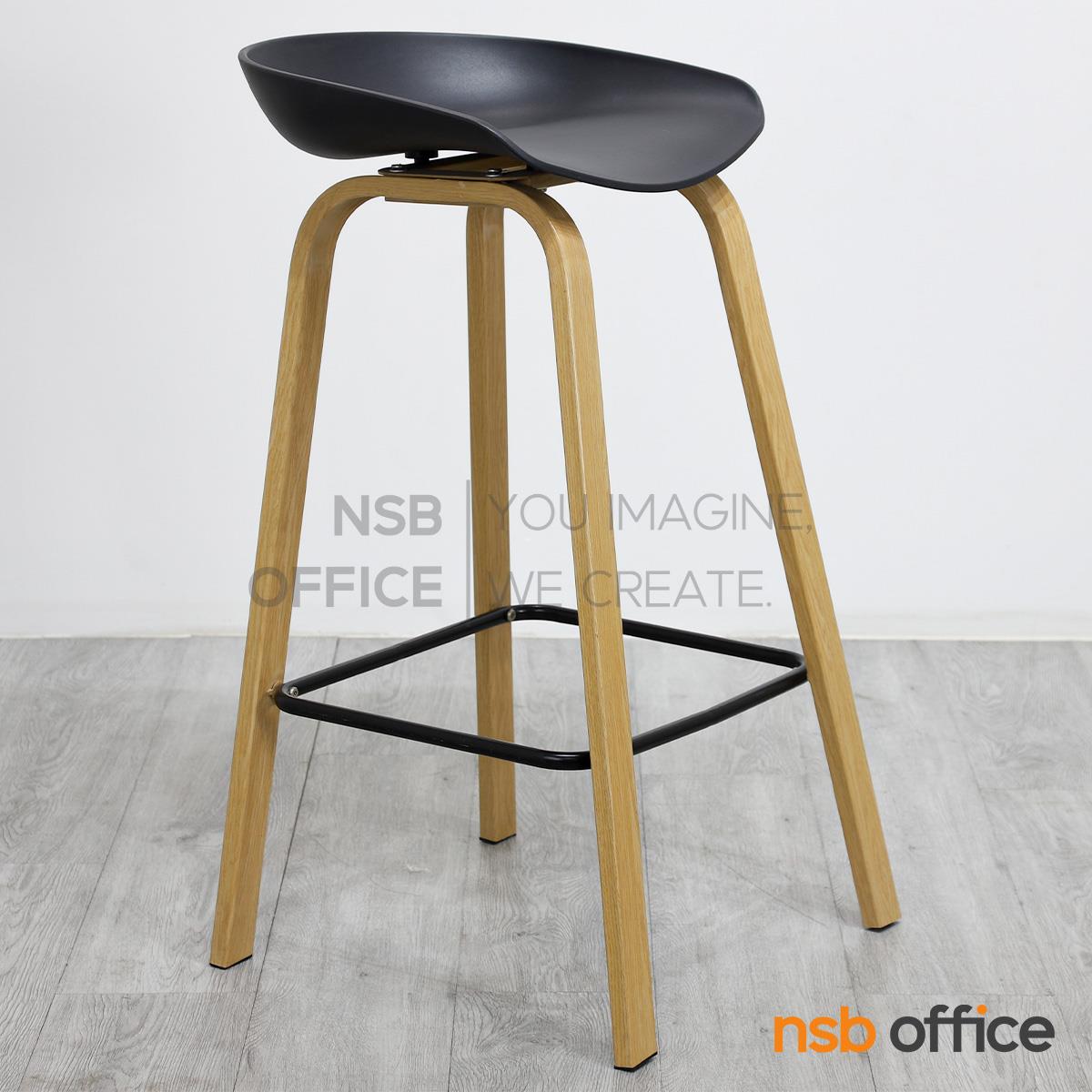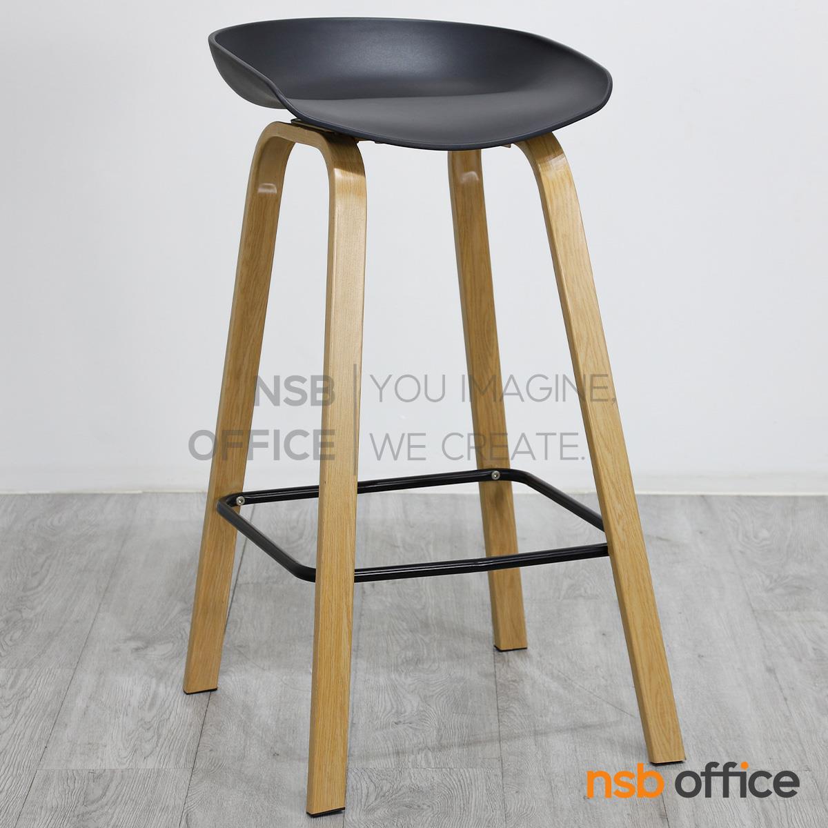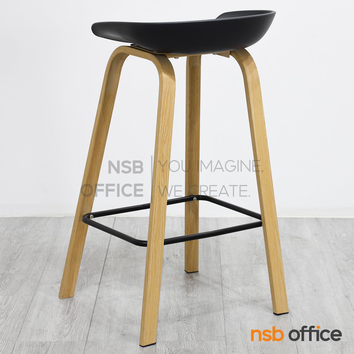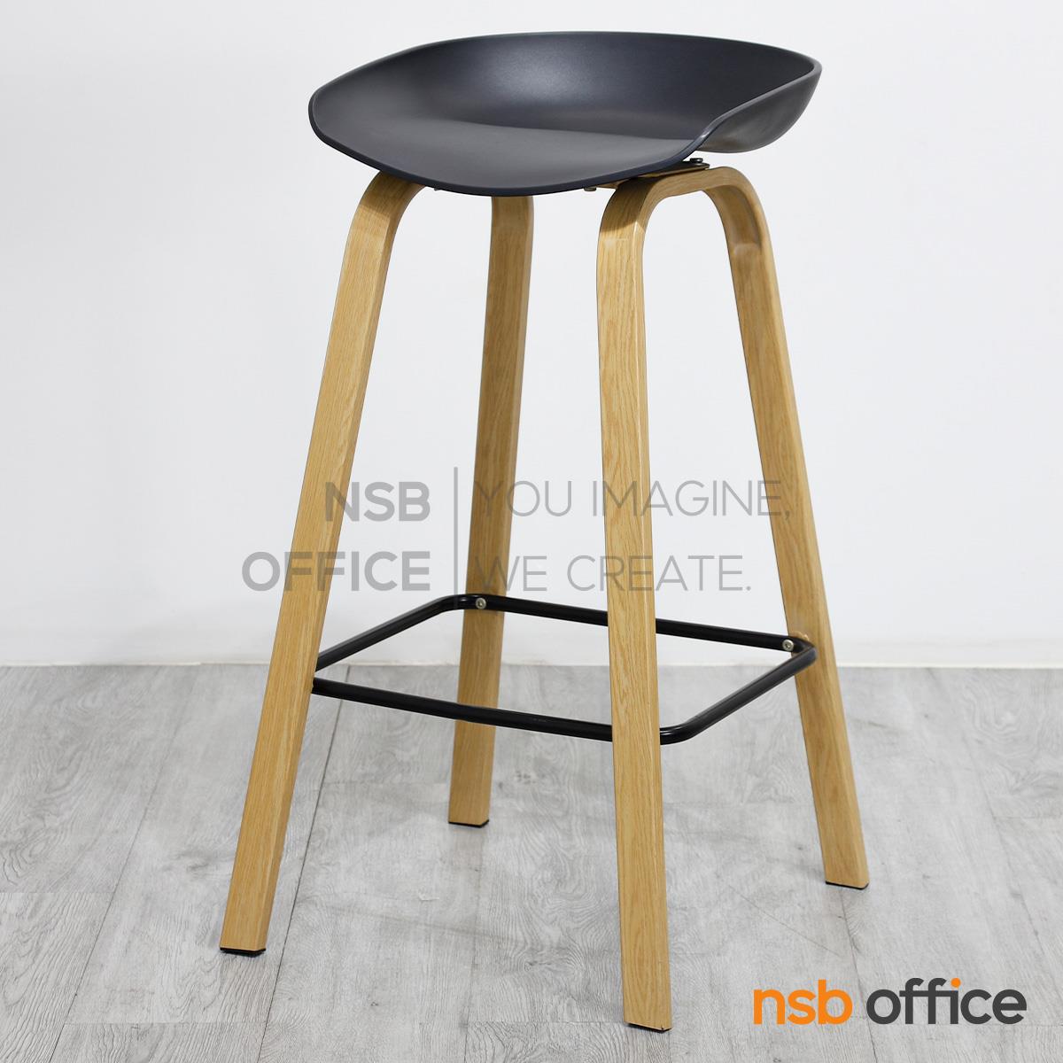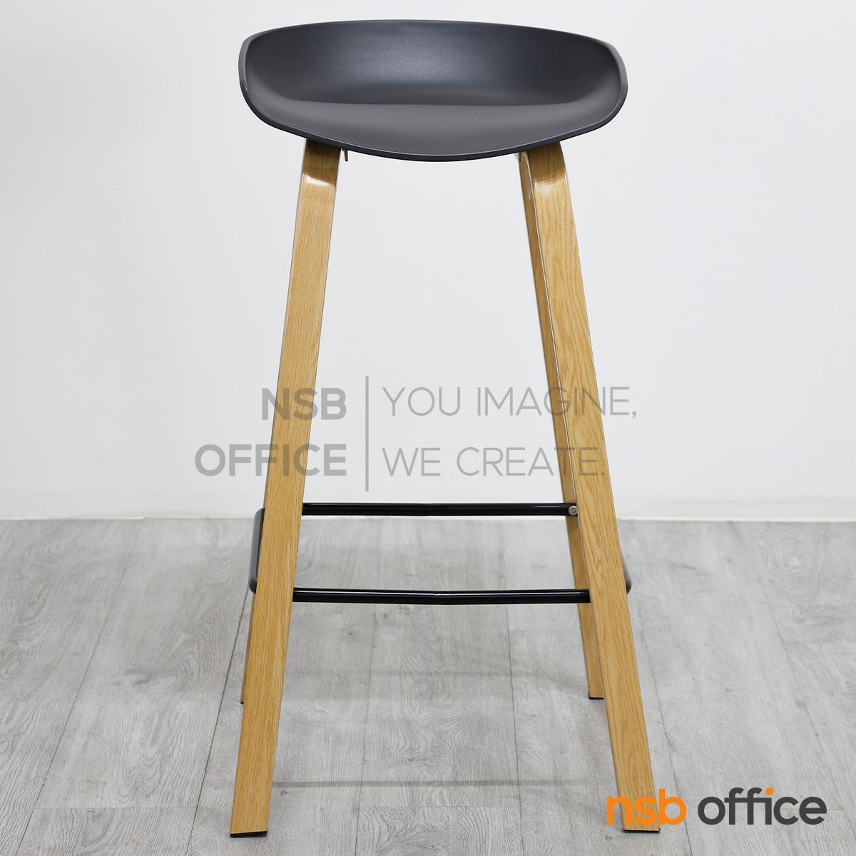: เก้าอี้บาร์สูงโพลี่ รุ่น Staples (สเตเปิลส์) (โพลี่สีขาว) ขาไม้สีธรรมชาติ พักเท้าเหล็ก