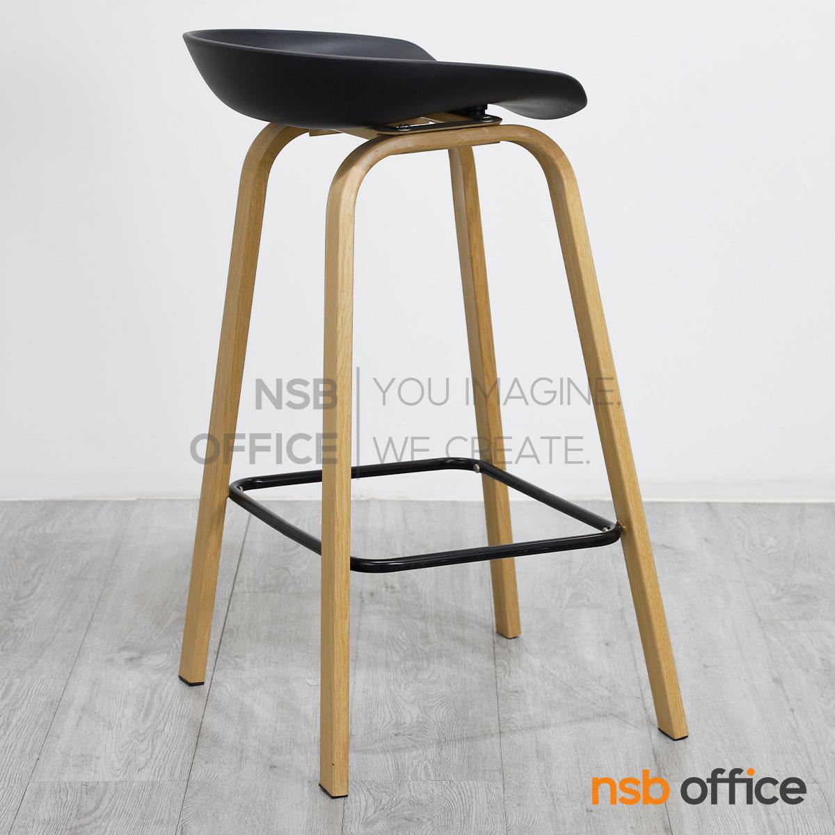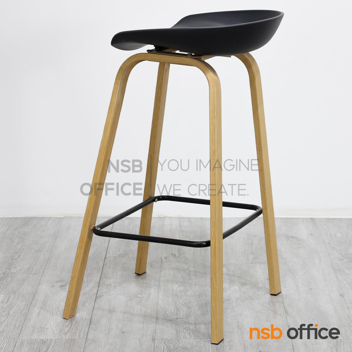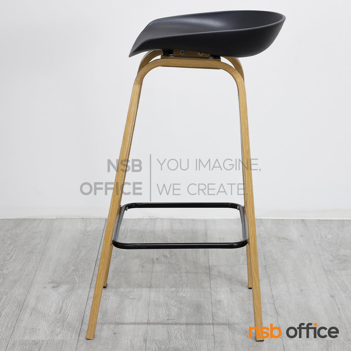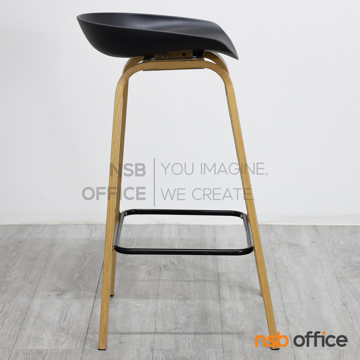 : เก้าอี้บาร์สูงโพลี่ รุ่น Staples (สเตเปิลส์) (โพลี่สีขาว) ขาไม้สีธรรมชาติ พักเท้าเหล็ก