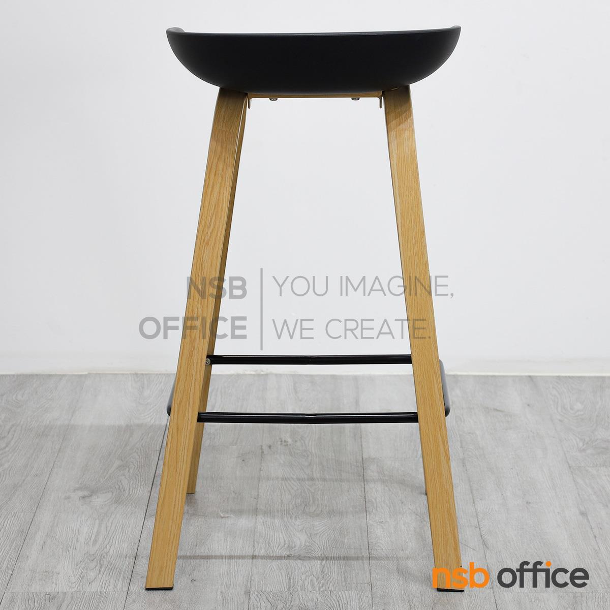 B29A322: เก้าอี้บาร์สูงโพลี่ รุ่น Staples (สเตเปิลส์) (สีขาวและสีดำ) ขาไม้สีธรรมชาติ พักเท้าเหล็ก