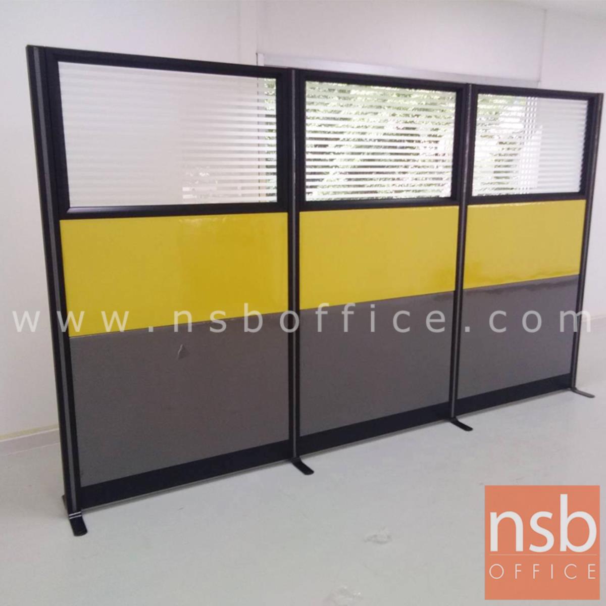 P01A065: พาร์ทิชั่นแบบครึ่งทึบครึ่งกระจกขัดลายสี Two Tone สูง 180 cm. พร้อมเสาเริ่ม