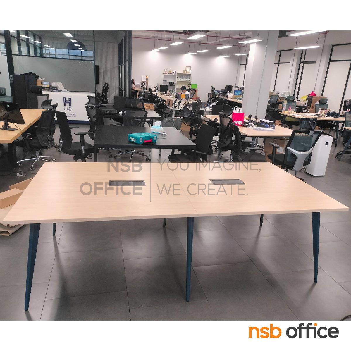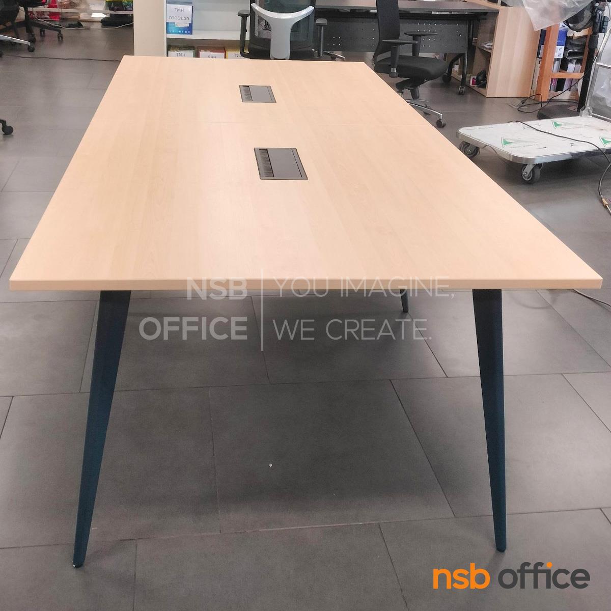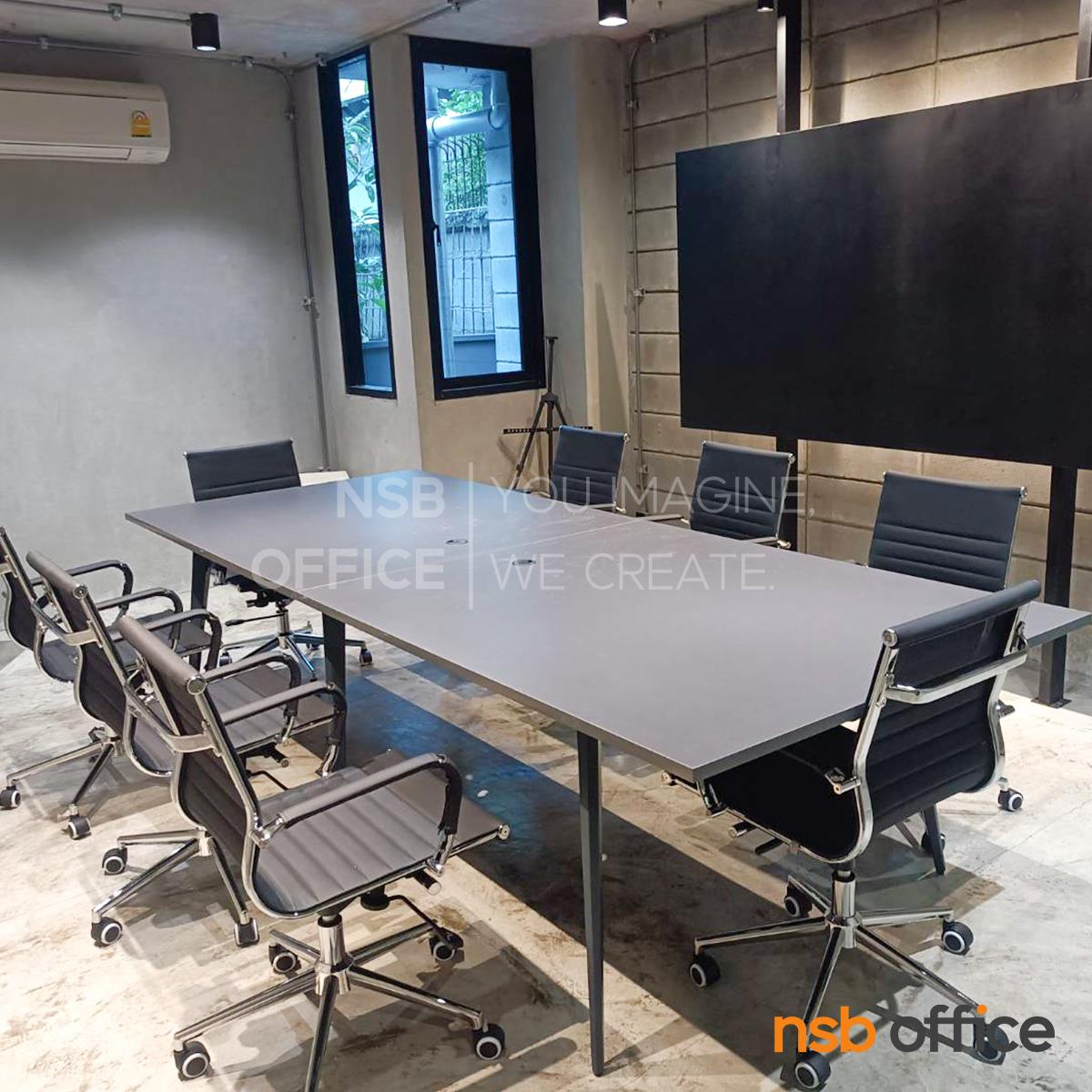 : โต๊ะประชุมทรงสี่เหลี่ยม รุ่น SKYLINE ขนาด 240W cm. ขาปลายเรียวหกเหลี่ยม สีเทาฟ้า