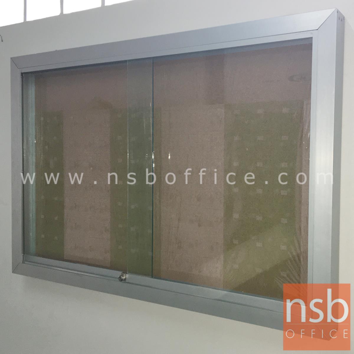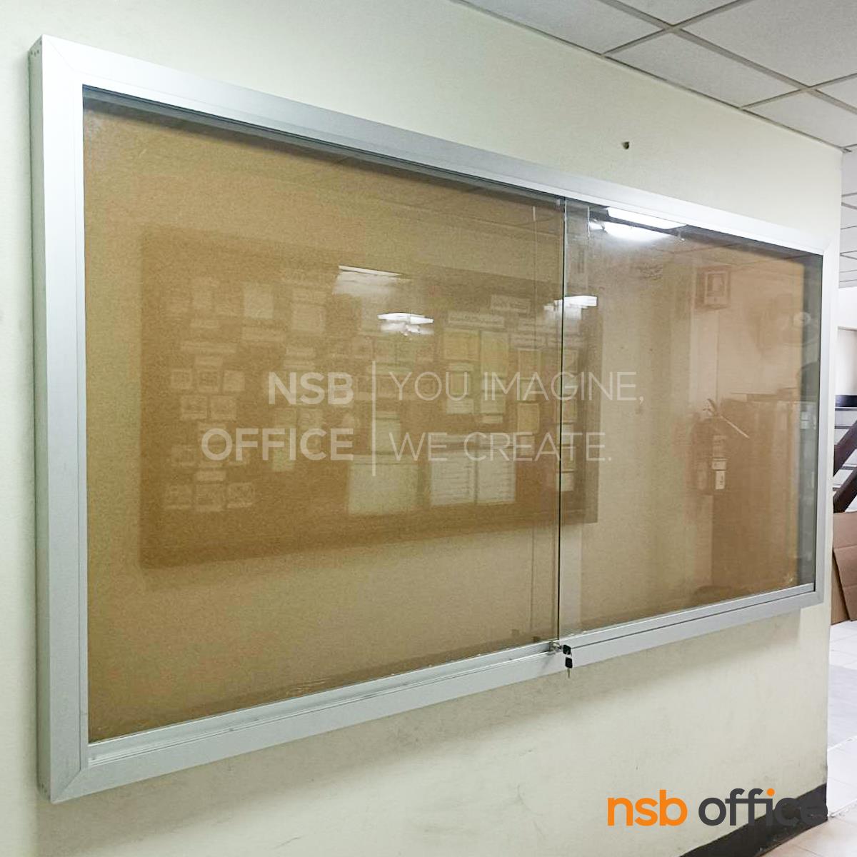G01A058: บอร์ดตู้กระจกบานเลื่อน ไม้ก็อก กรอบอลูมิเนียม มีกุญแจล็อคฟันเลื่อย (พร้อมติดตั้งบนผนังปูน)