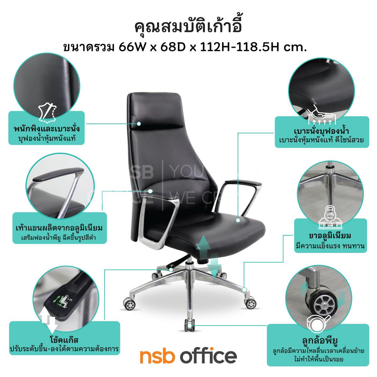 : เก้าอี้ผู้บริหารหนังแท้ รุ่น SENDAI (เซนได) โช็คแก๊ส มีก้อนโยก พิงเอนได้ ขาอลูมิเนียม