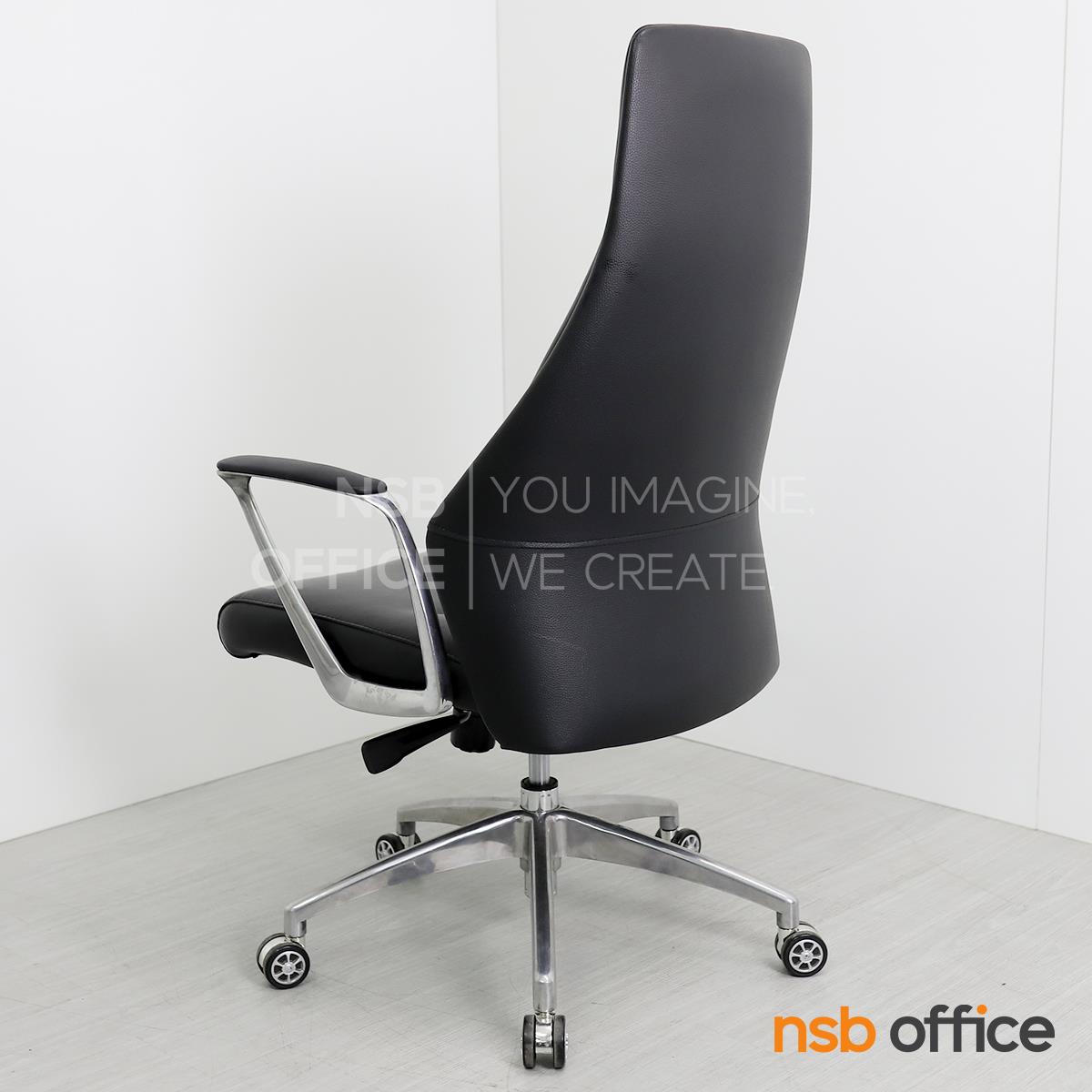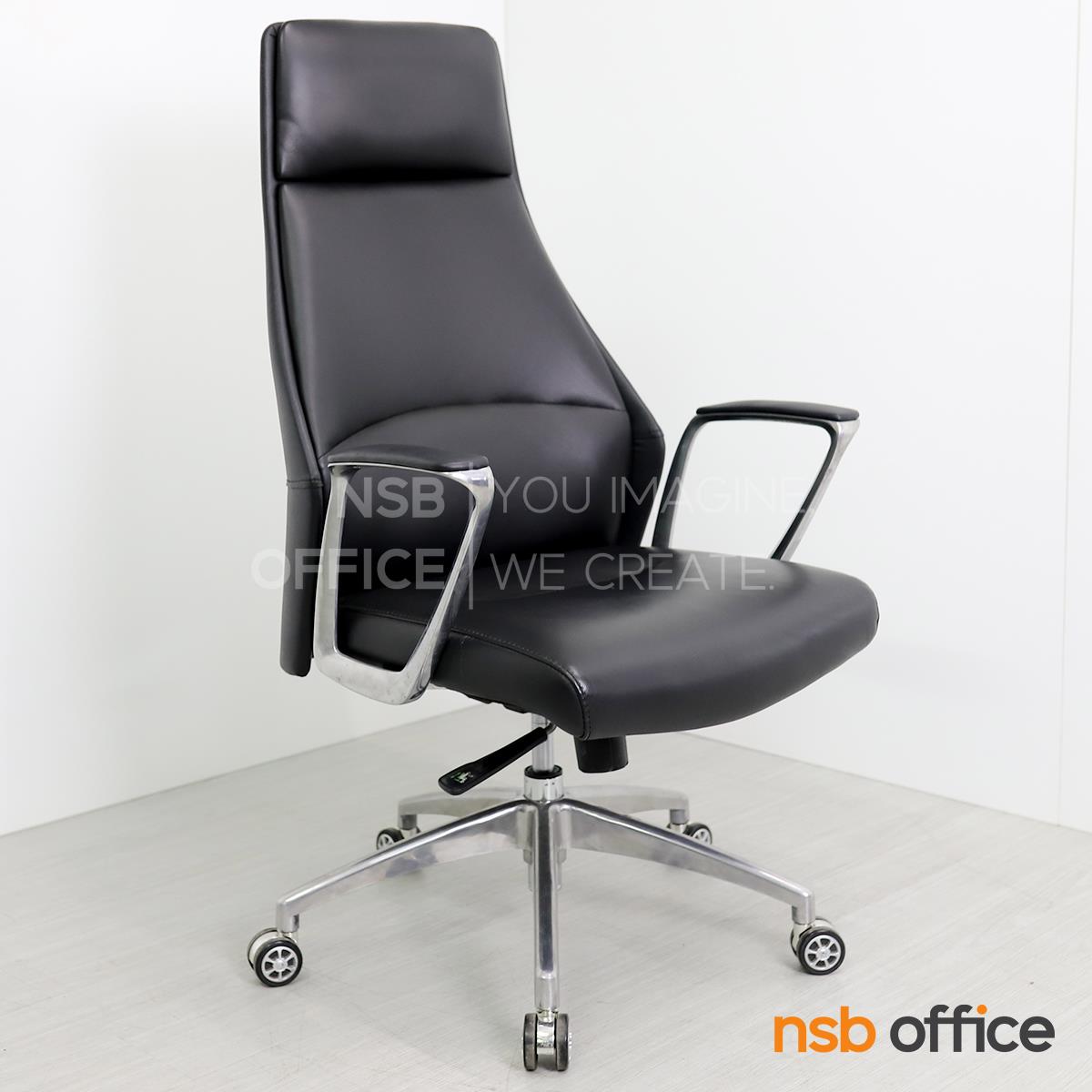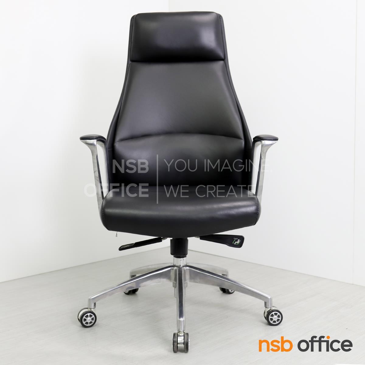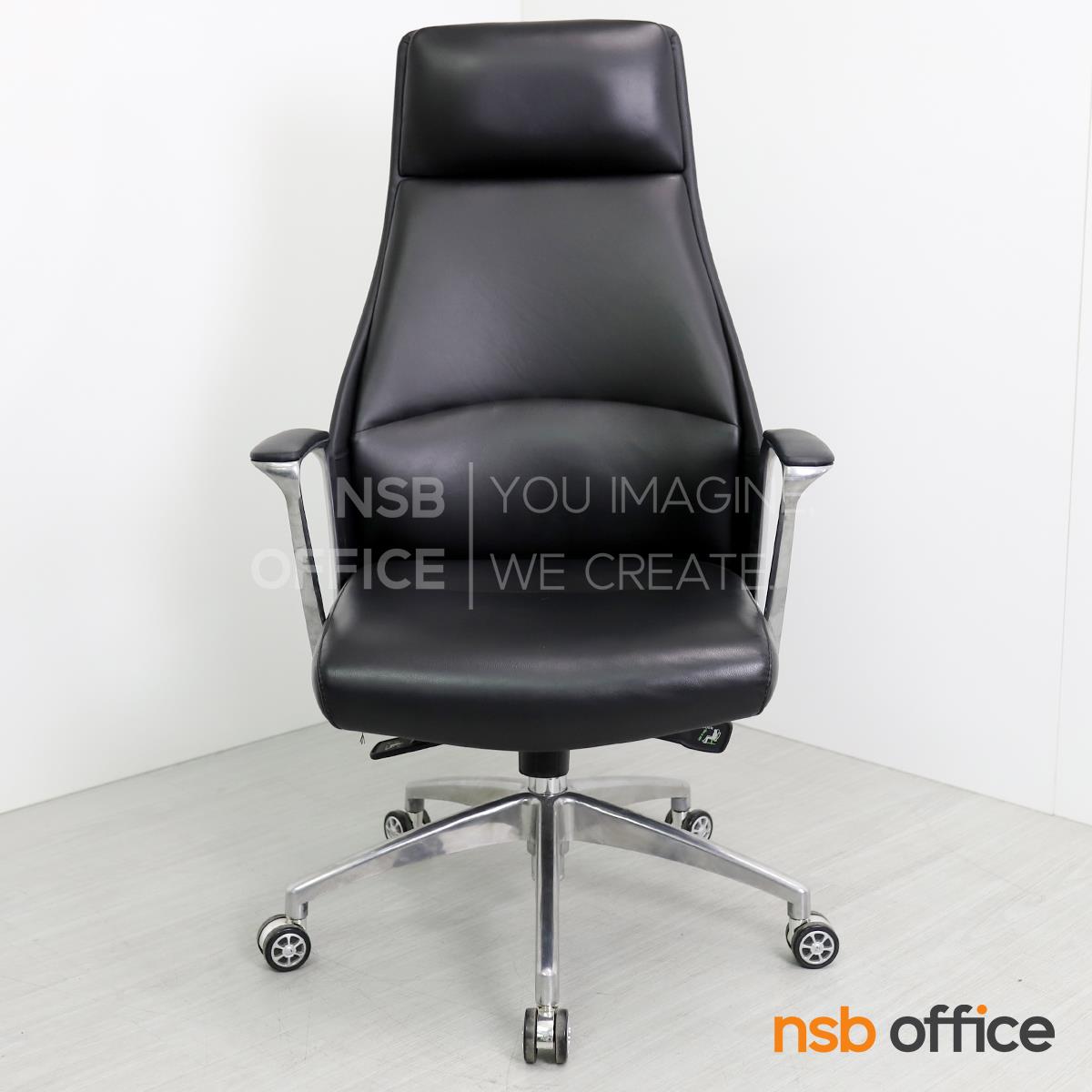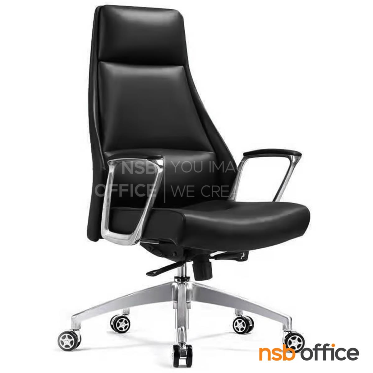 B01A492: เก้าอี้ผู้บริหารหนังแท้ รุ่น SENDAI (เซนได) โช็คแก๊ส มีก้อนโยก พิงเอนได้ ขาอลูมิเนียม