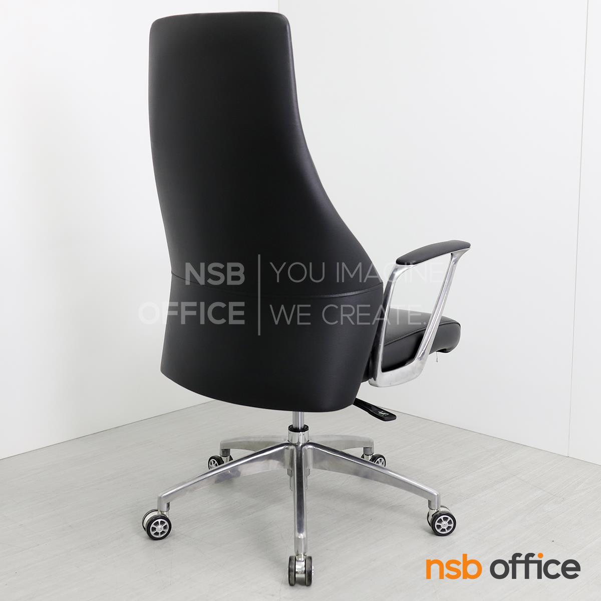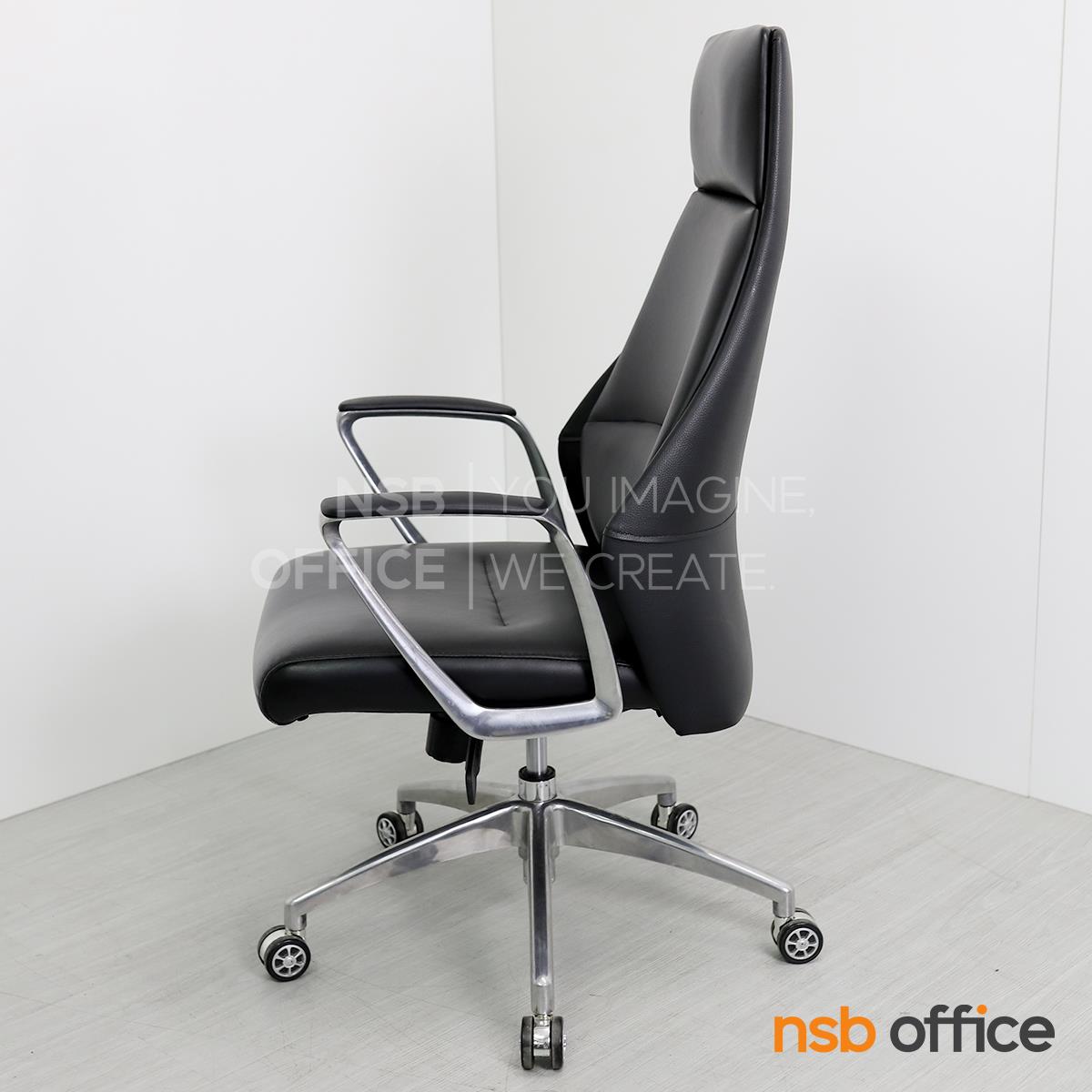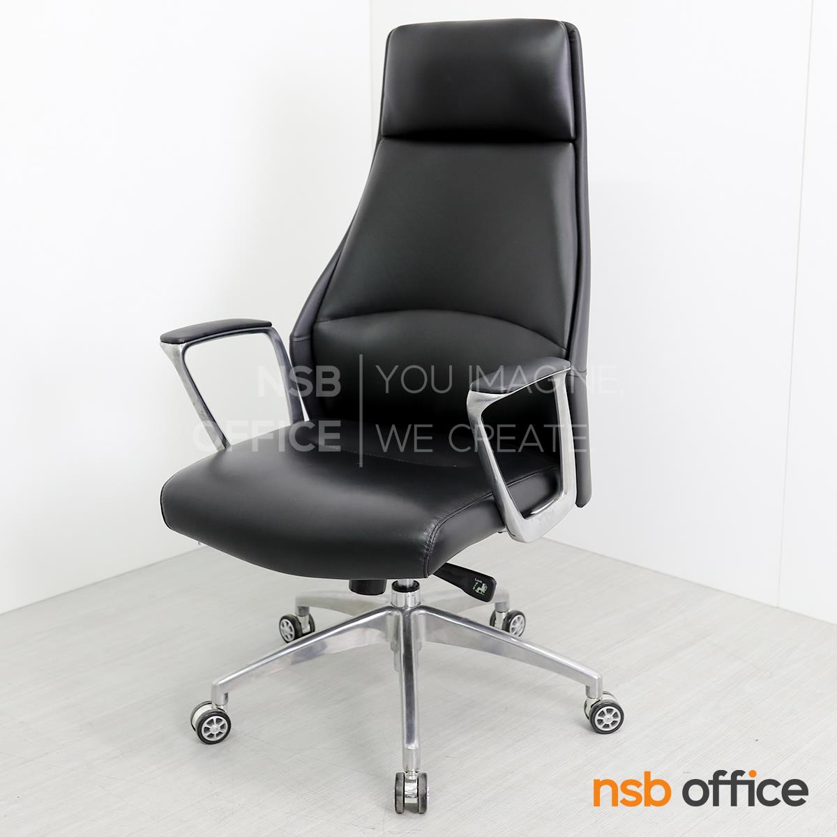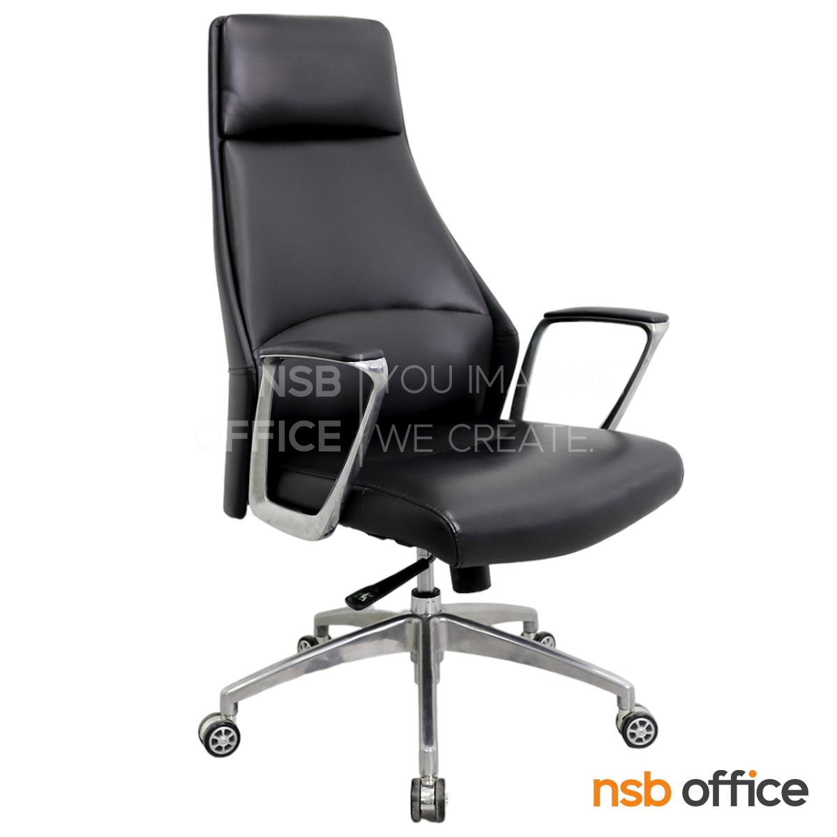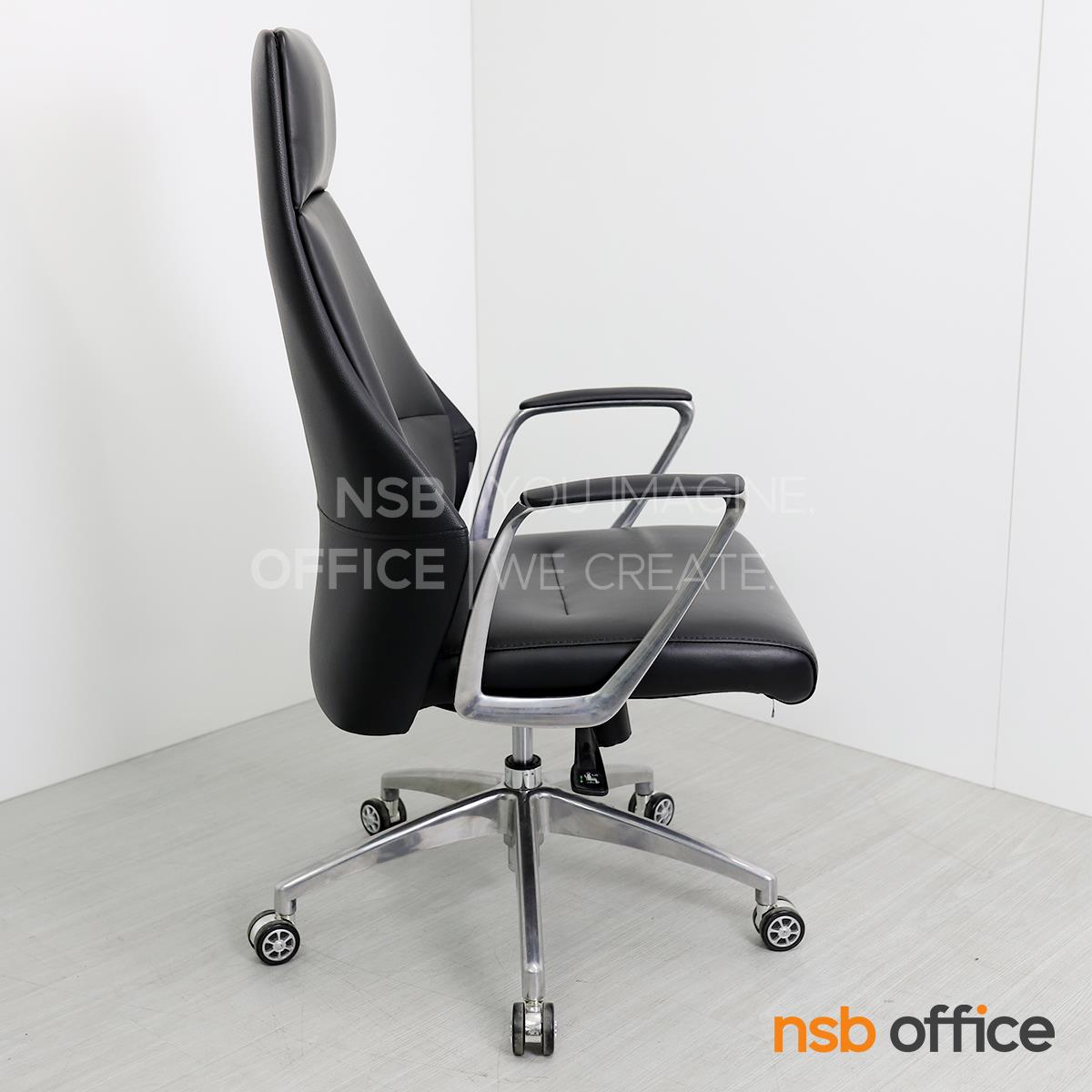 B01A492: เก้าอี้ผู้บริหารหนังแท้ รุ่น SENDAI (เซนได) โช็คแก๊ส มีก้อนโยก พิงเอนได้ ขาอลูมิเนียม