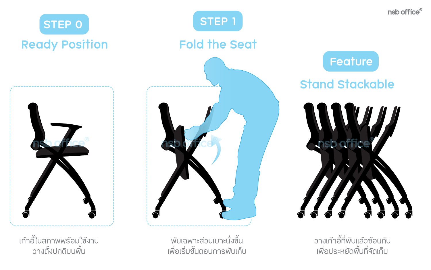 เบาะที่นั่งสามารถพับขึ้นและเรียงซ้อนต่อกันเป็นแถวรถไฟ (Stand Stackable)