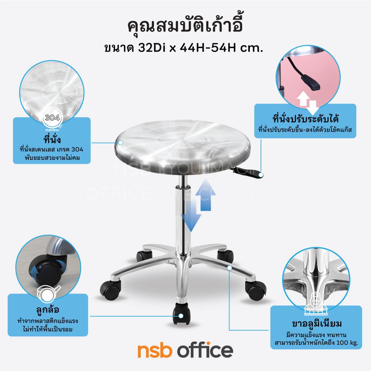 B02A086: เก้าอี้บาร์สตูลที่นั่งกลมสแตนเลส เกรด 304 รุ่น Biant (ไบอัน) โช้คแก๊ส ขาอลูมิเนียม
