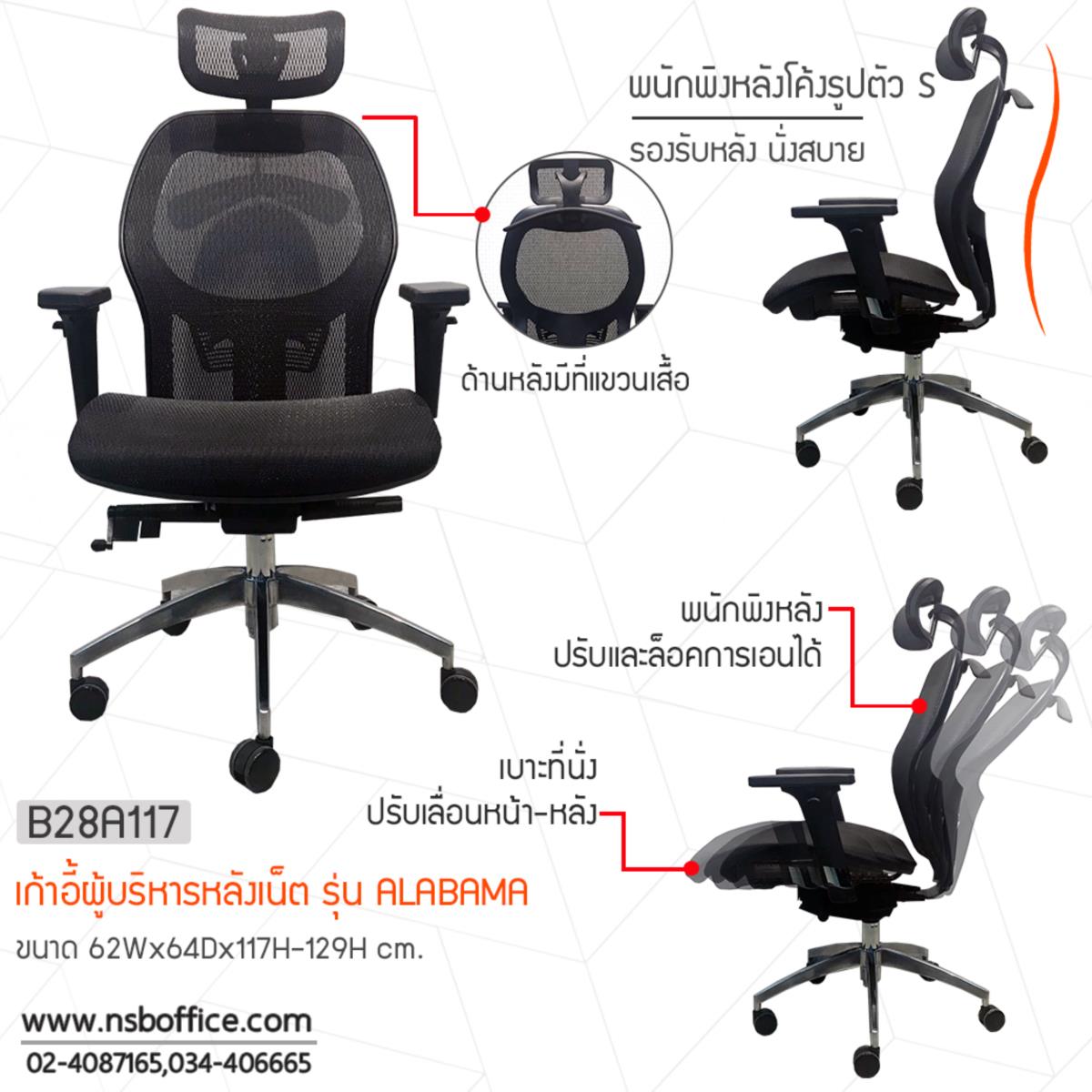 B28A117: เก้าอี้ผู้บริหารหลังเน็ต รุ่น ALABAMA โช๊คแก๊ส มีก้อนโยก ขาอลูมินั่ม
