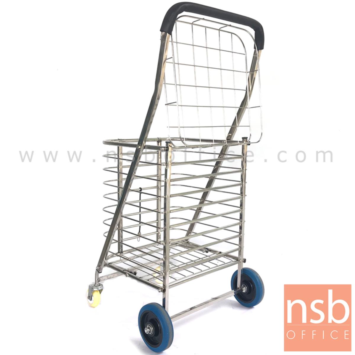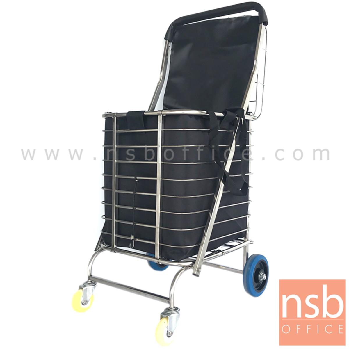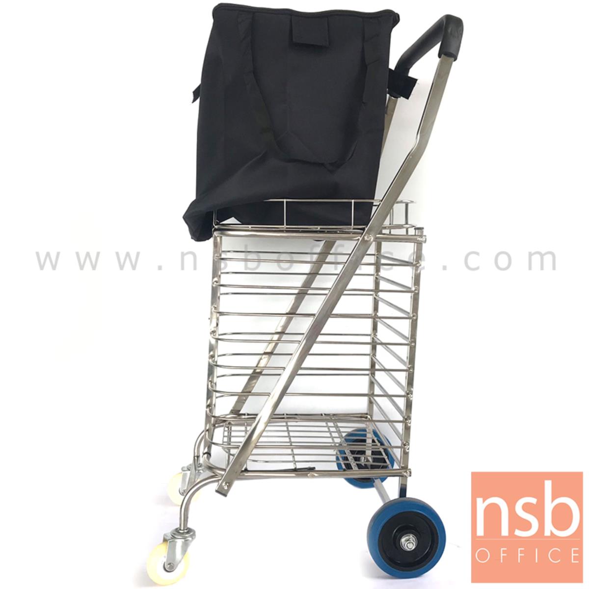 G03A062: รถเข็นสแตนเลสล้อใหญ่ รุ่น WAREHOUSE 7 ขนาด 40W*89H cm. พร้อมกระเป๋า