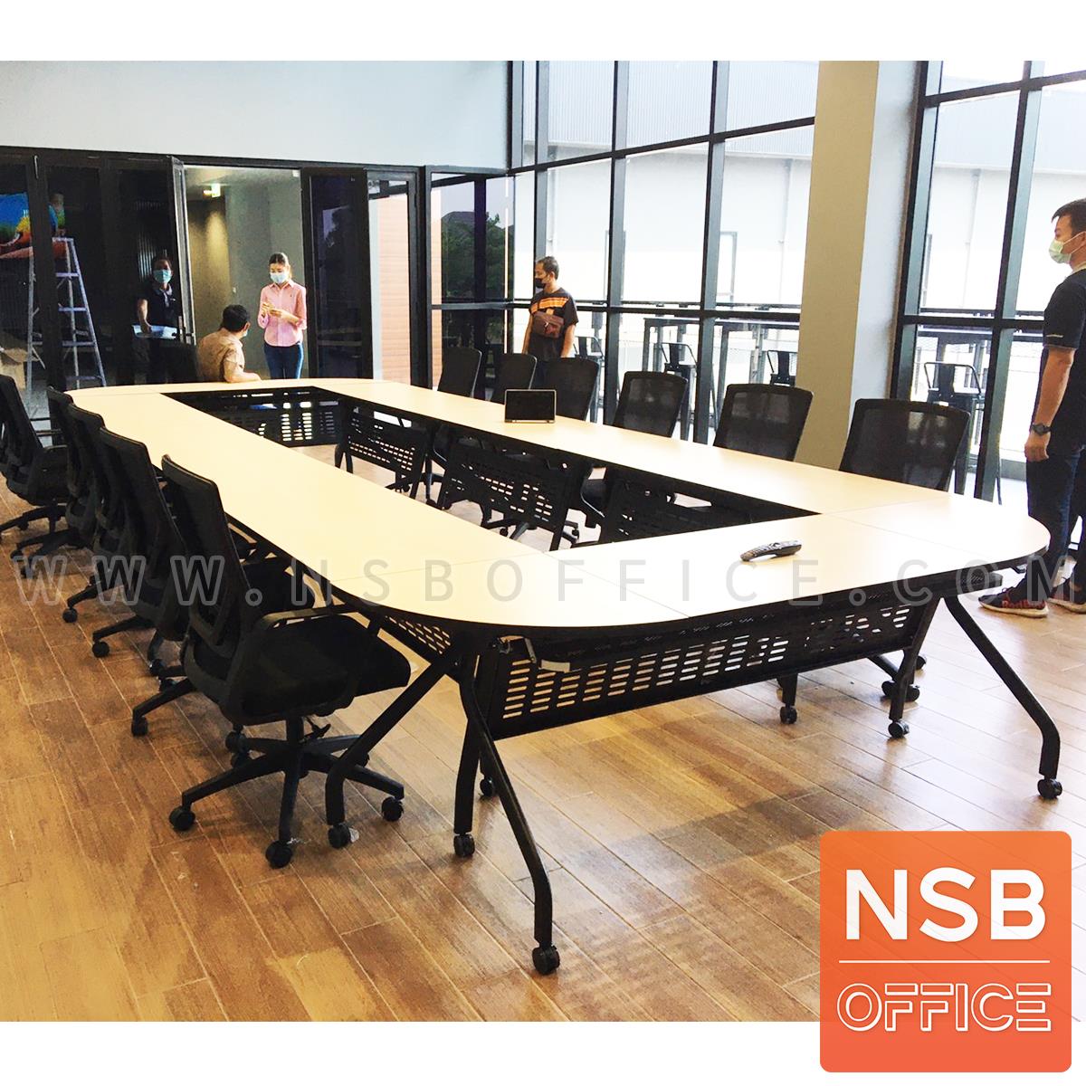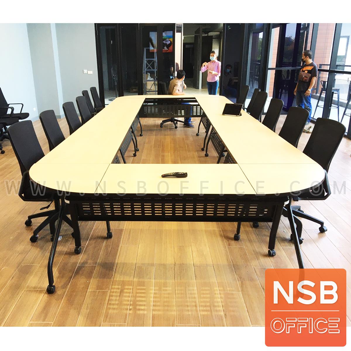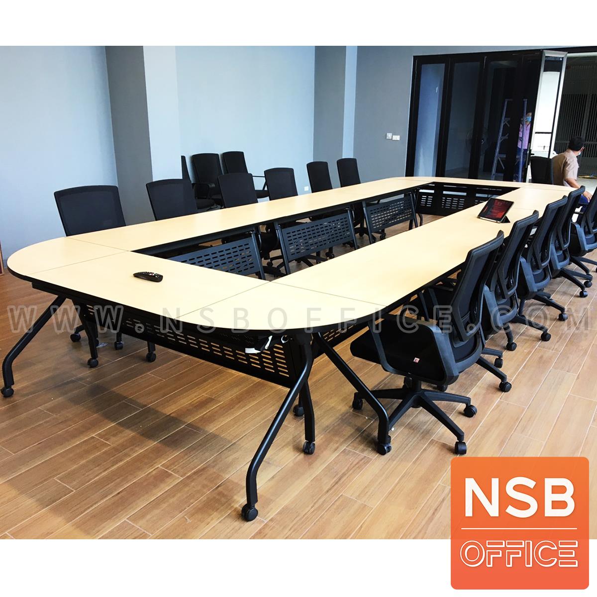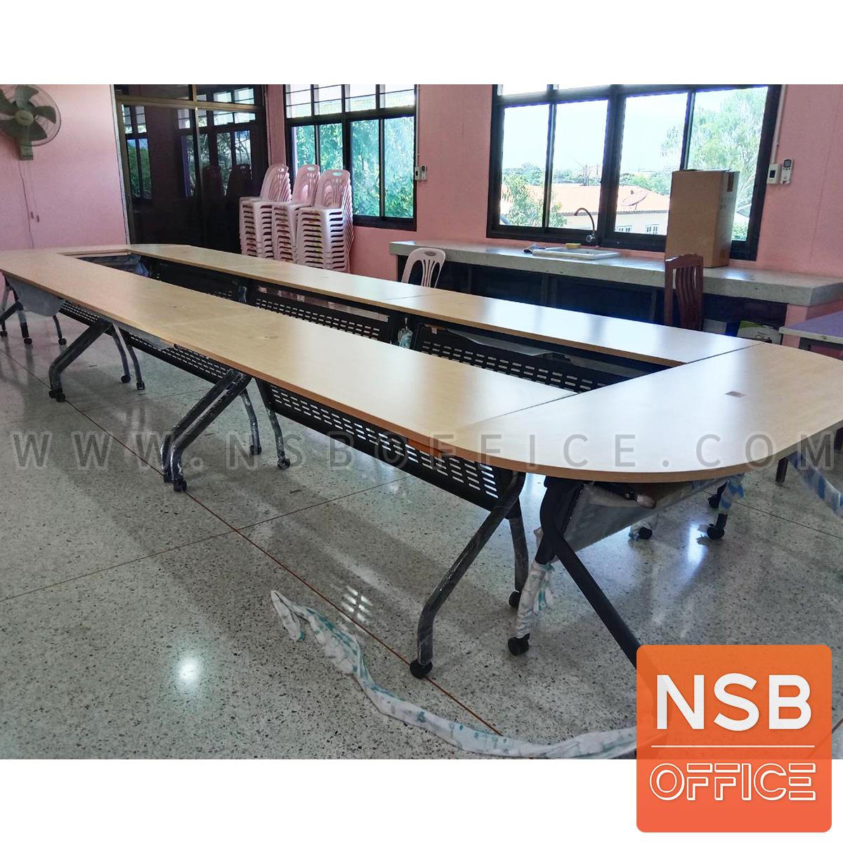 รูปแบบการวางโต๊ะประชุมล้อเลื่อนพับได้ แบบใช้ตัวล็อกโต๊ะ