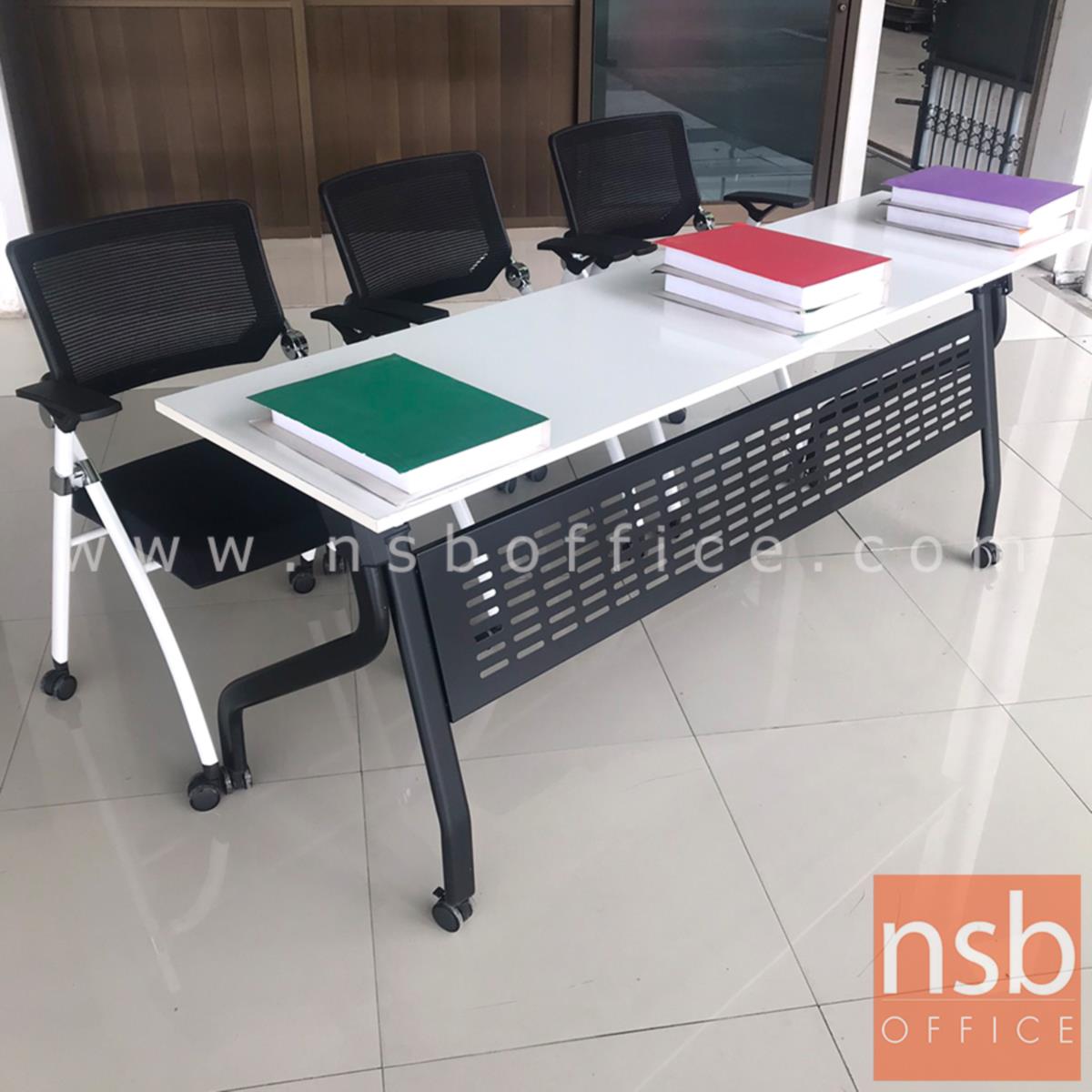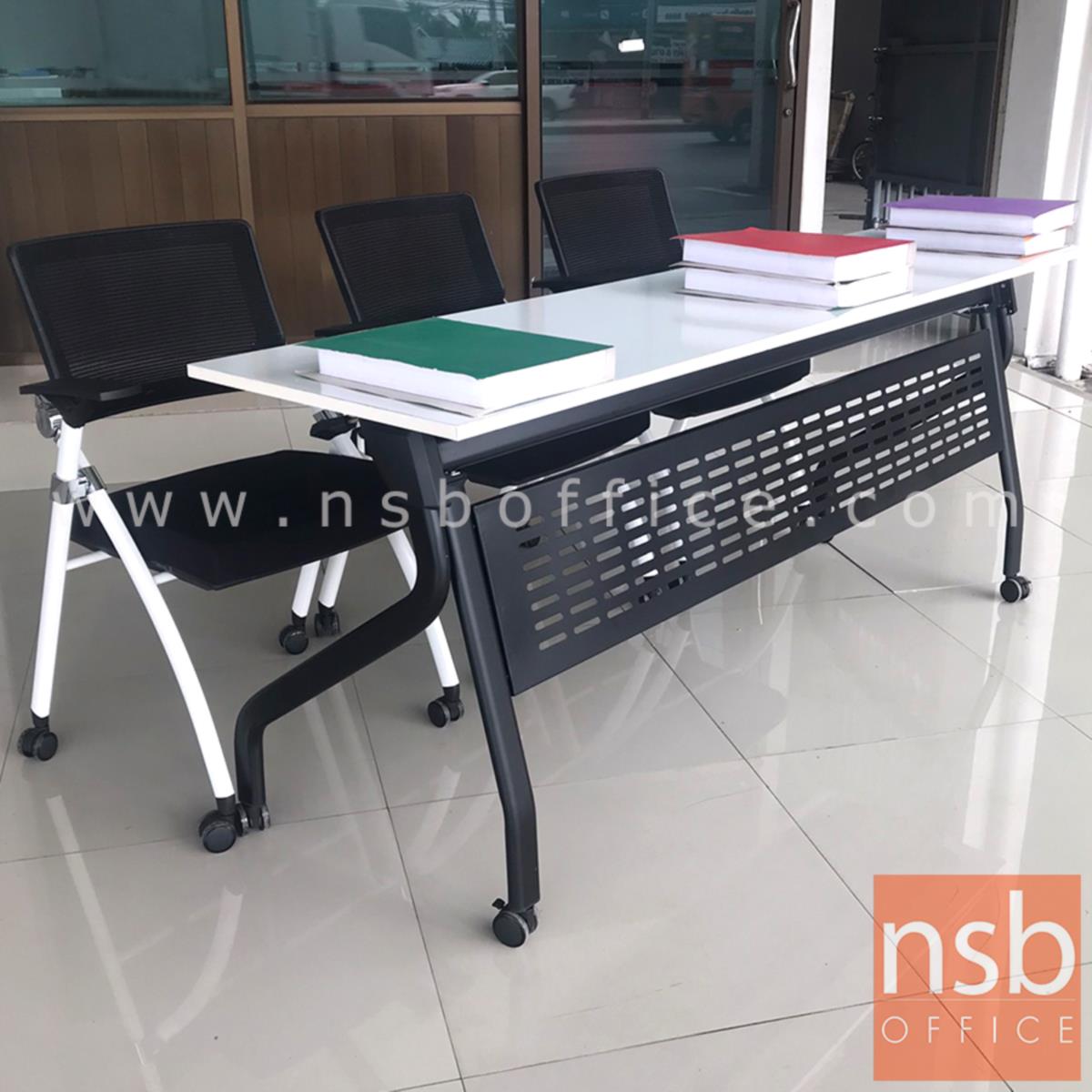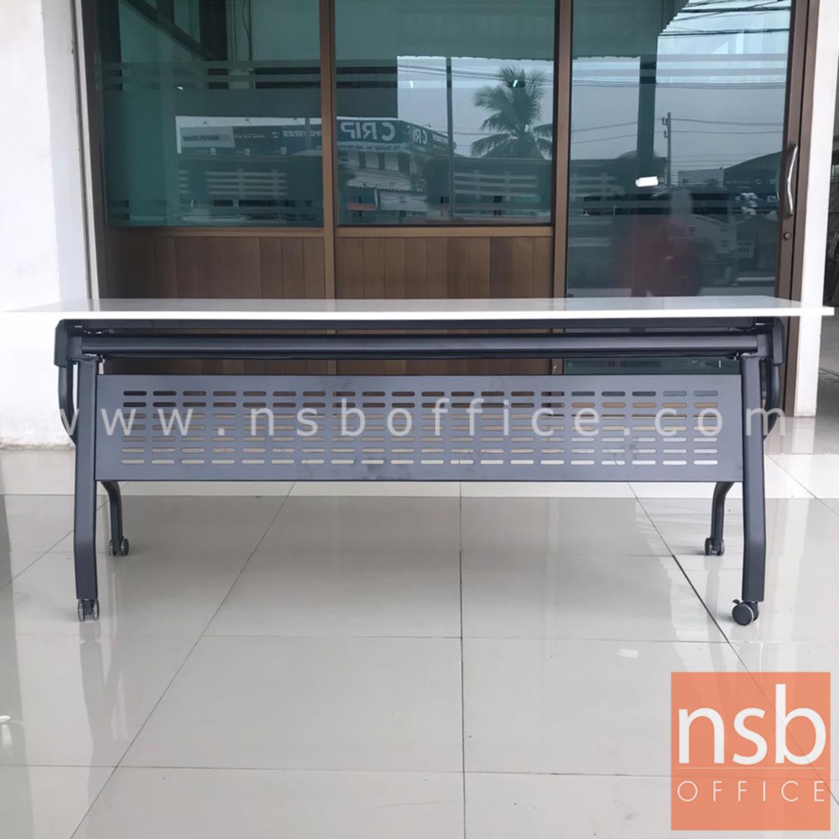 A18A096: โต๊ะสัมมนาพับเก็บได้ล้อเลื่อน รุ่น Quidditch (ควิดดิช) ขนาด 180W*60D cm (3 ที่นั่ง) มีที่วางของด้านใต้ (รวมรหัสกับ A18A090 07/07/65)