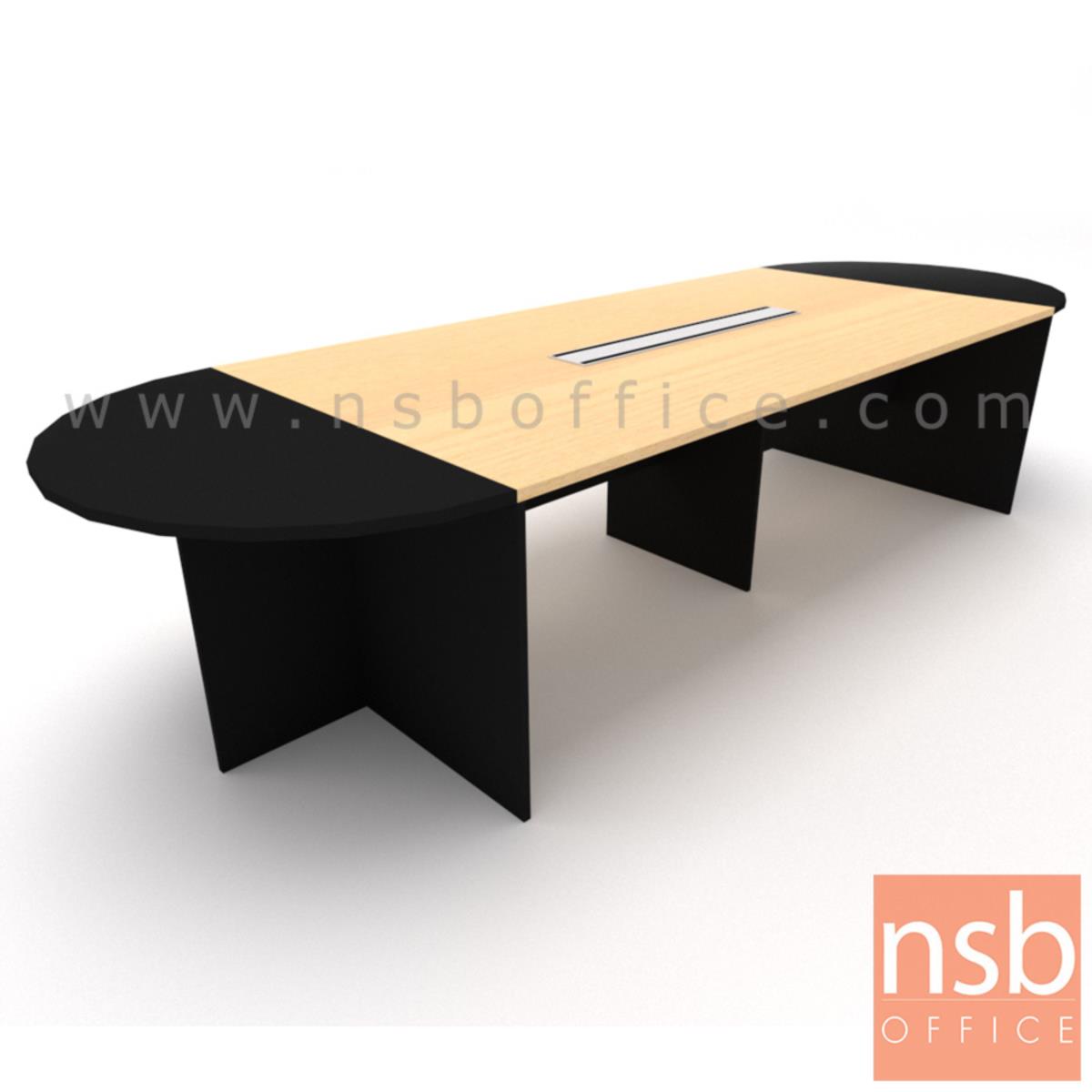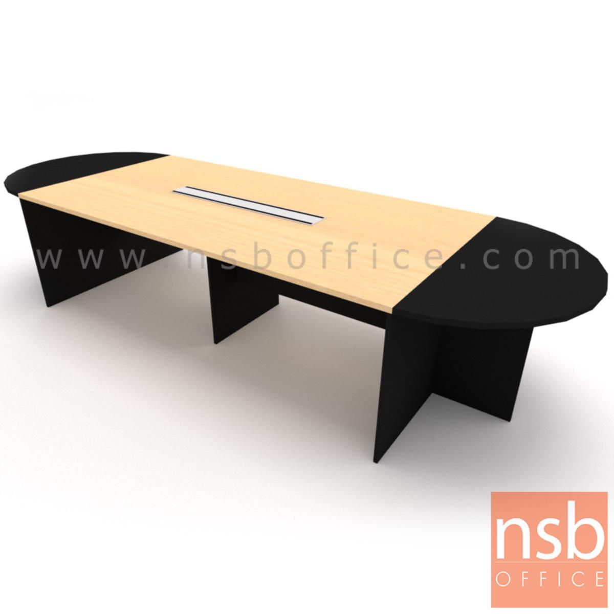 : โต๊ะประชุมทรงแคปซูลไม้ล้วน ขนาด 360W*120D cm. พร้อมป็อบอัพหน้าโต๊ะ
