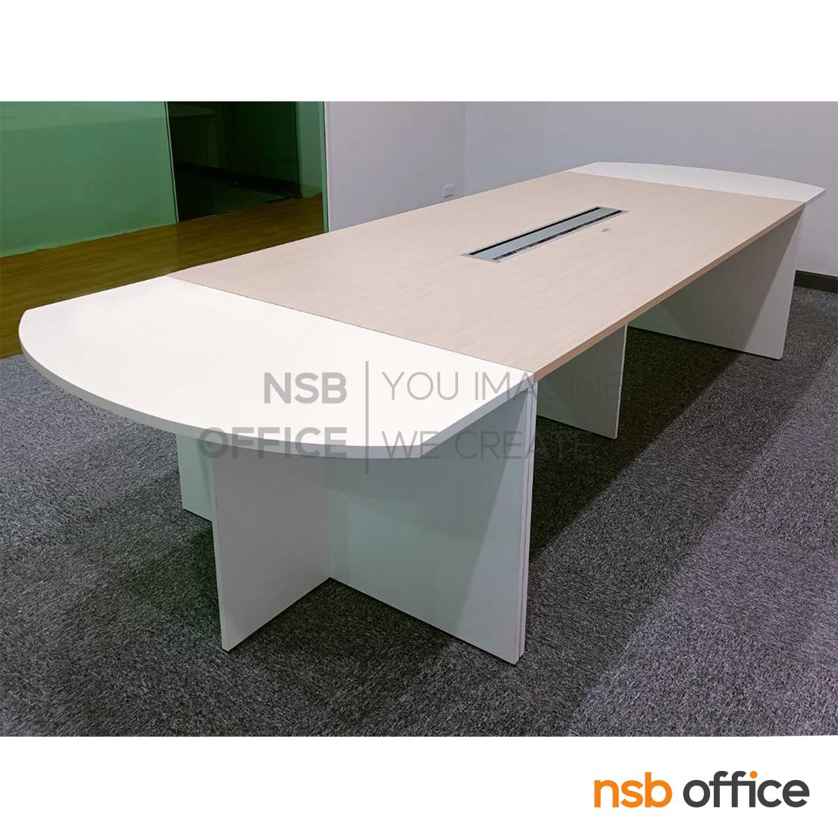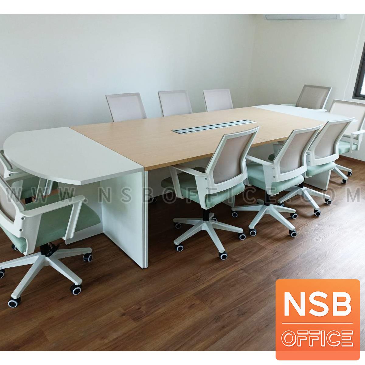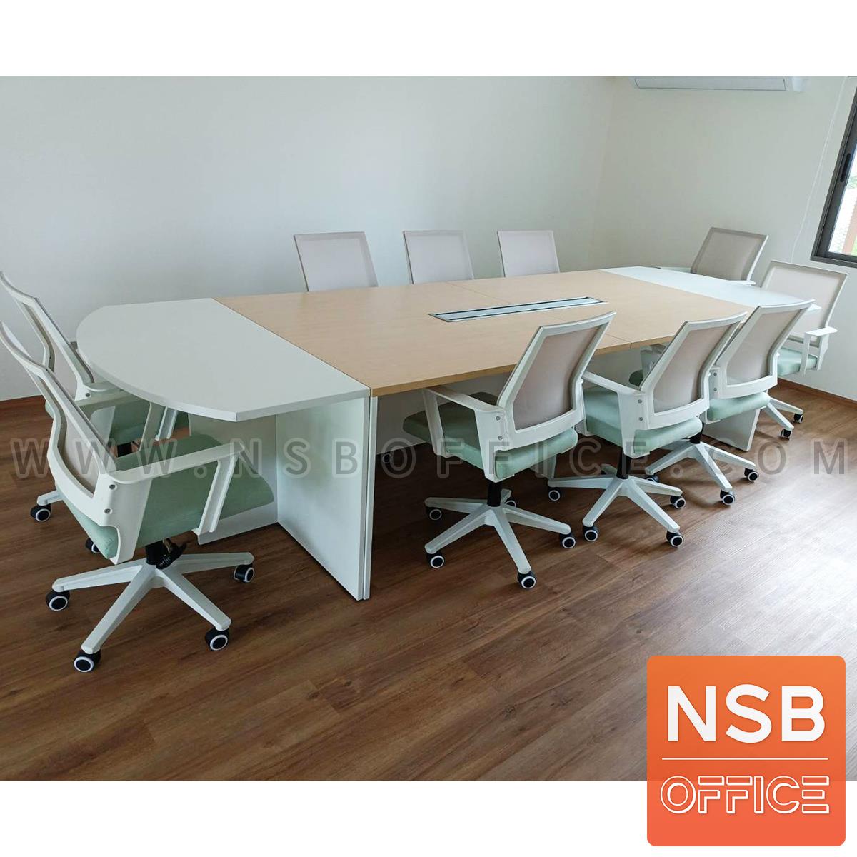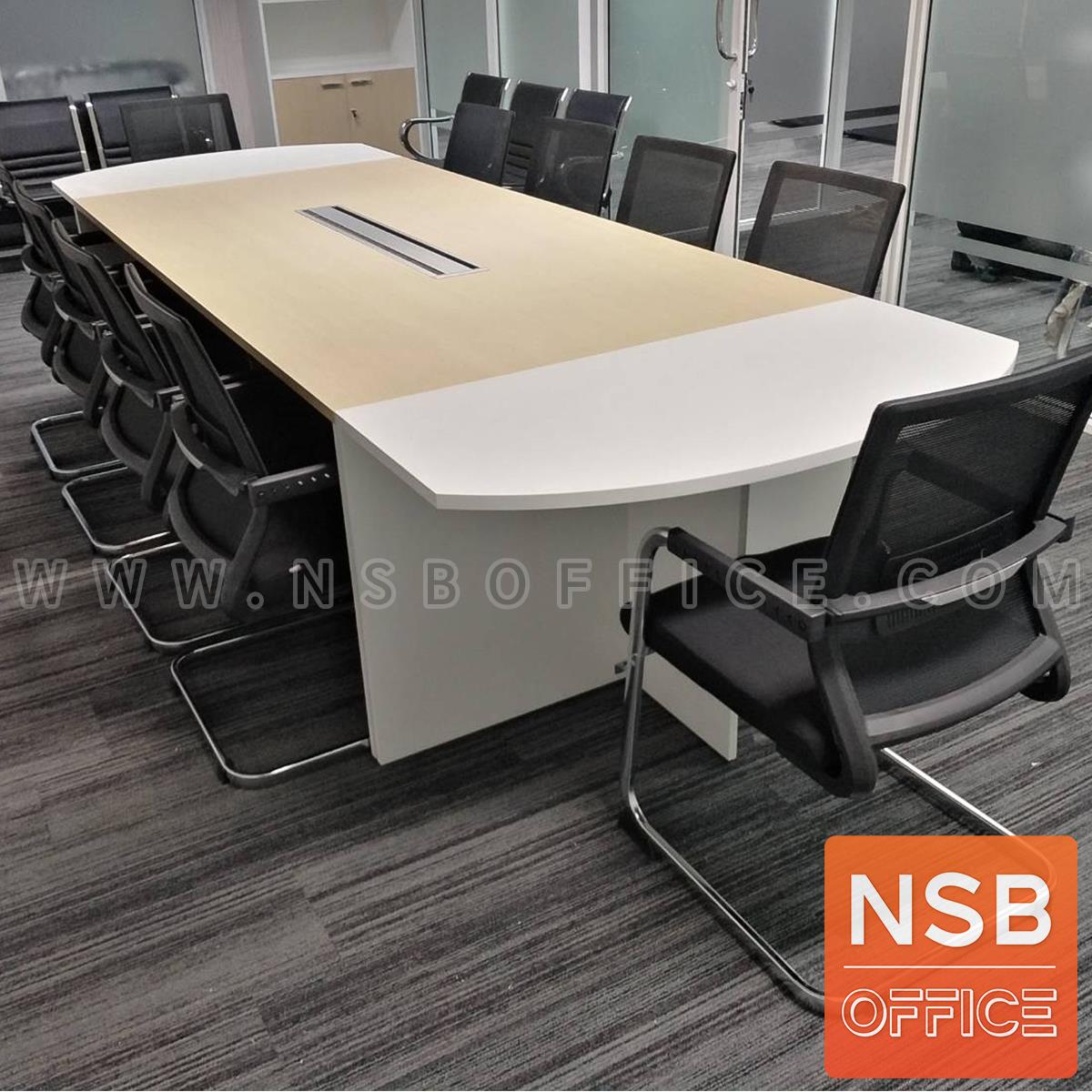 : โต๊ะประชุมทรงเหลี่ยมหัวโค้ง ไม้ล้วน รุ่น Allisyn (อัลลิซิน) ขนาด 360W*120D cm. พร้อมป็อบอัพหน้าโต๊ะ