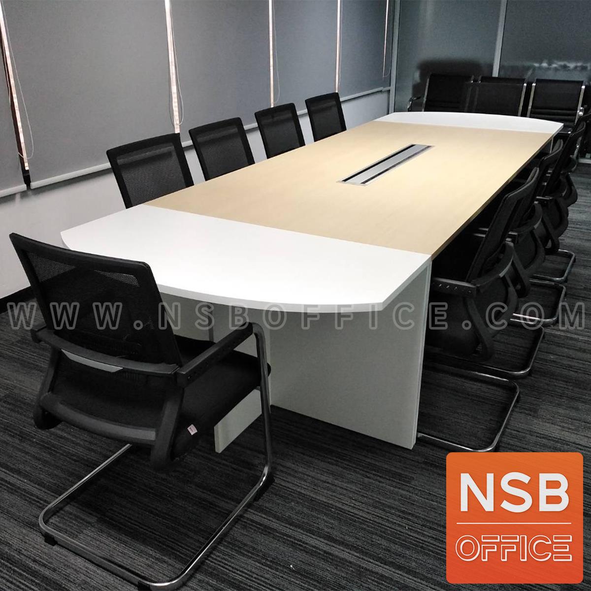 A05A209: โต๊ะประชุมทรงเหลี่ยมหัวโค้ง ไม้ล้วน รุ่น Allisyn (อัลลิซิน) ขนาด 360W*120D cm. พร้อมป็อบอัพหน้าโต๊ะ รหัสสินค้า A24A006