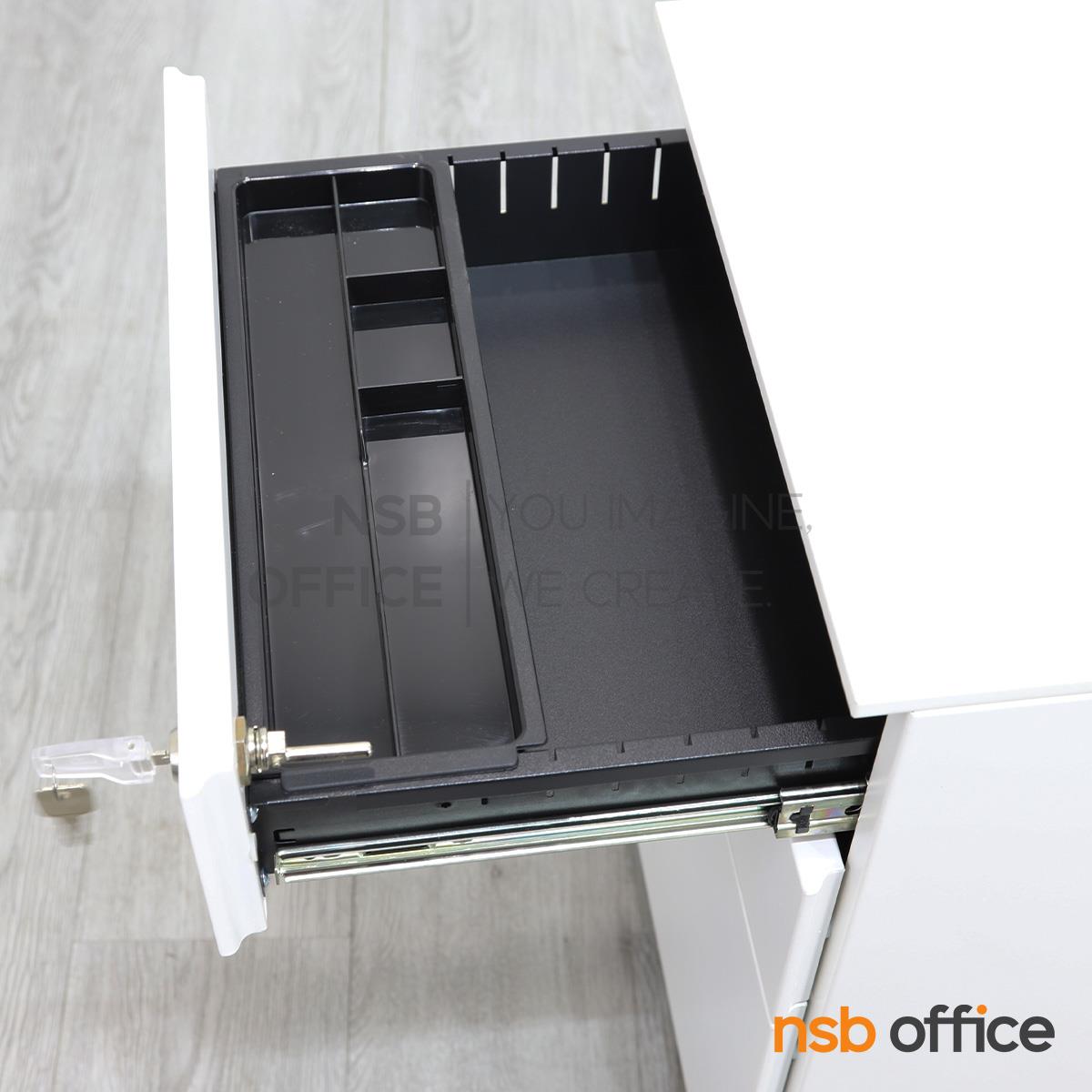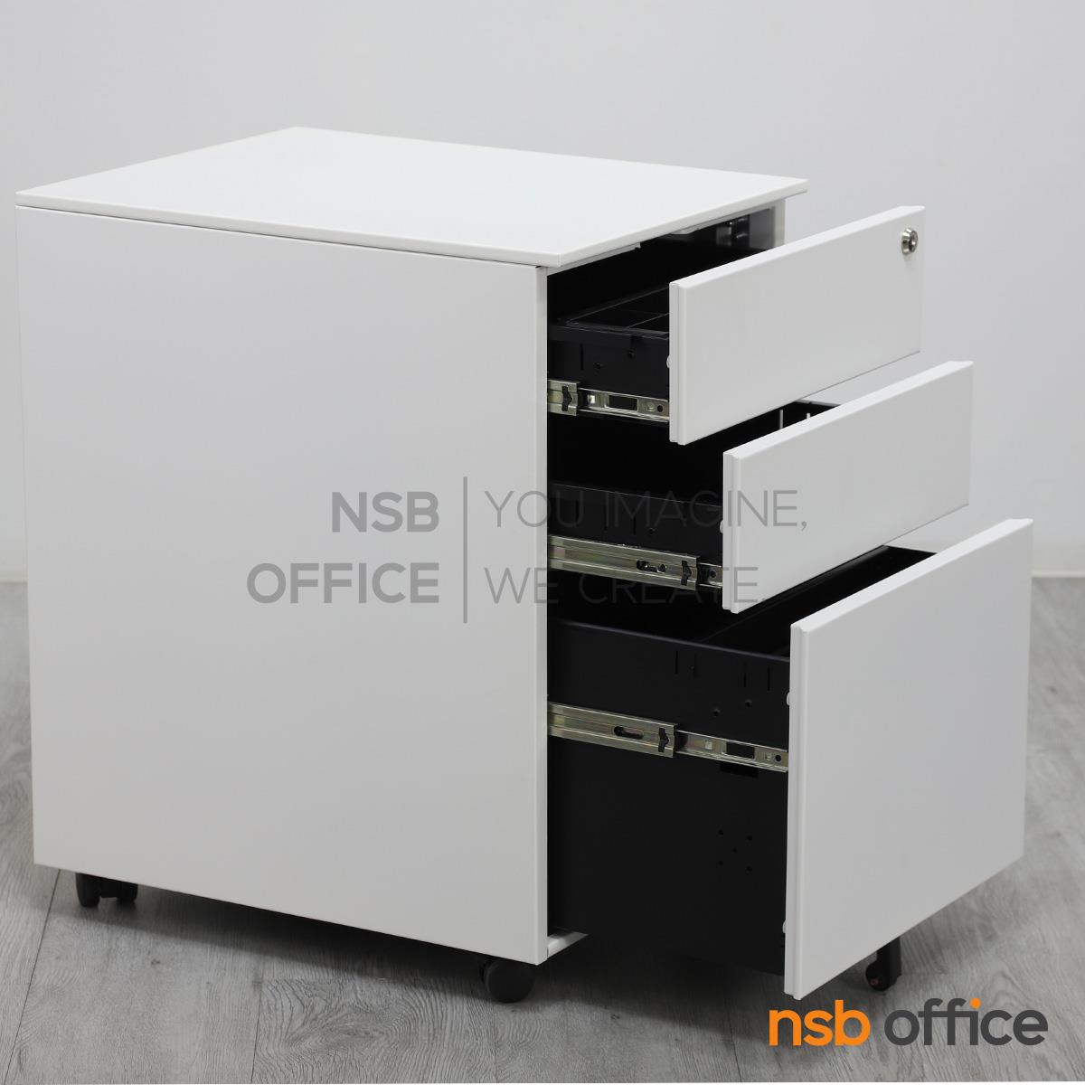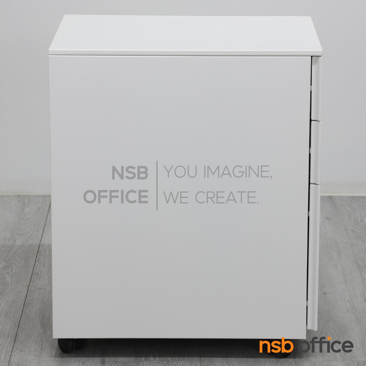 : ตู้เหล็ก 3 ลิ้นชักล้อเลื่อน รุ่น CINNAMON (ซินนามอน) สีขาว วางใต้โต๊ะ