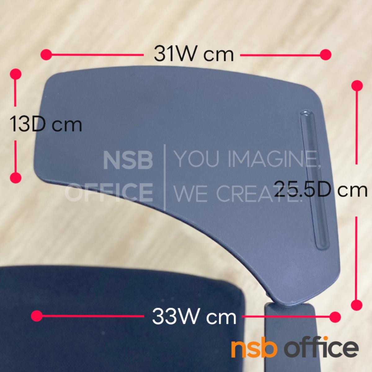 เท้าแขนแผ่นเลคเชอร์ของเก้าอี้อยู่ทางด้านขวา ออกแบบมาเพื่อการใช้งานสำหรับคนถนัดมือขวา