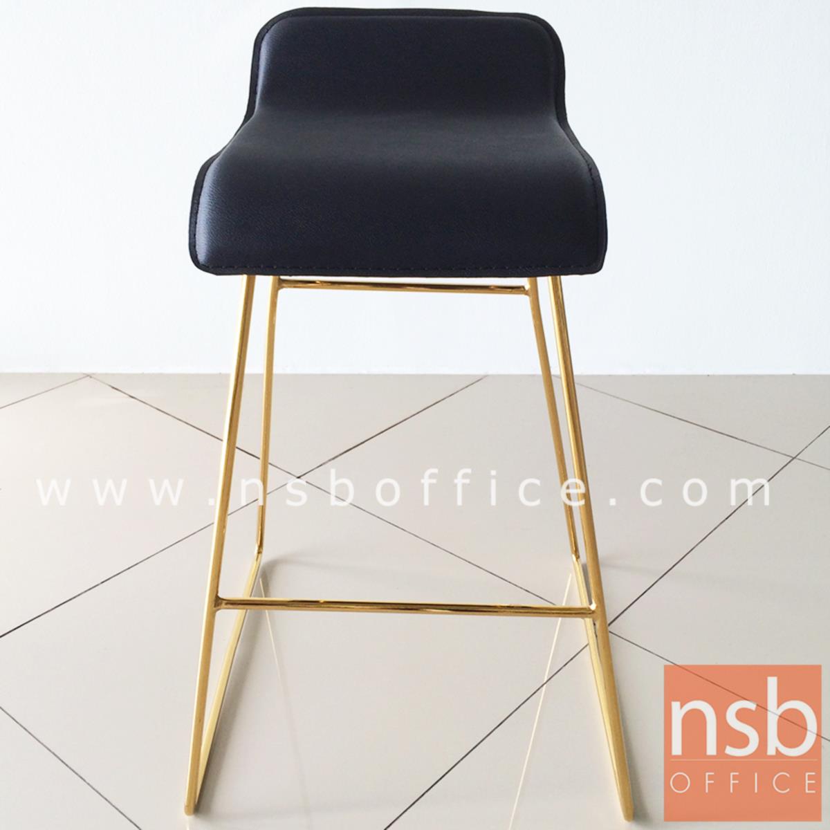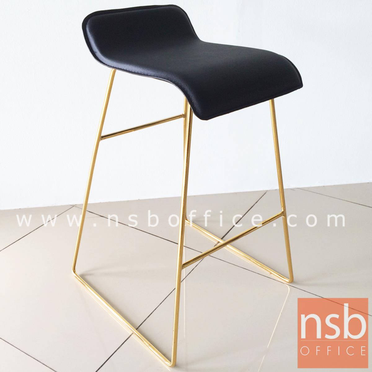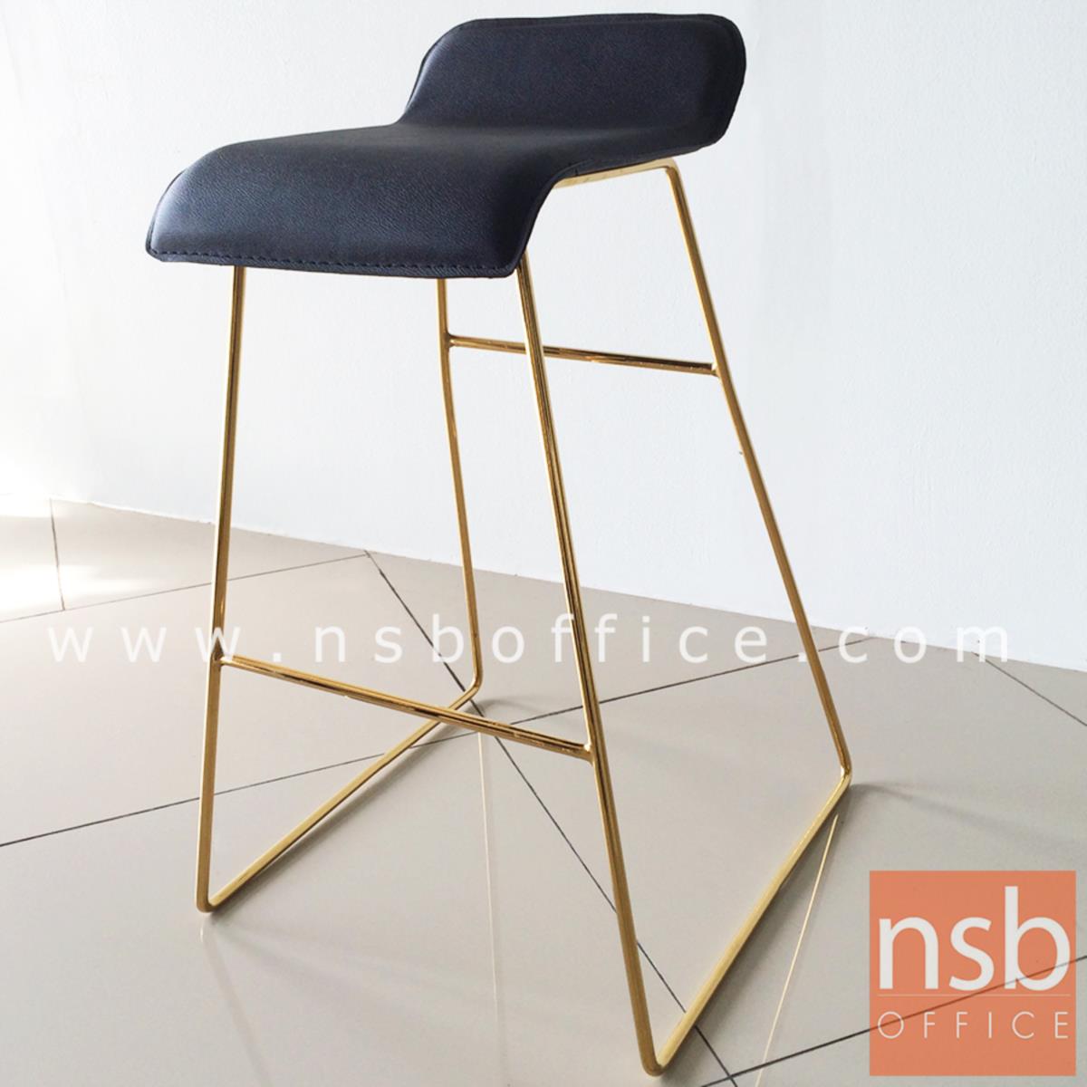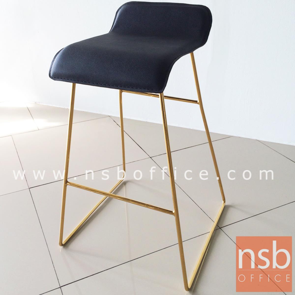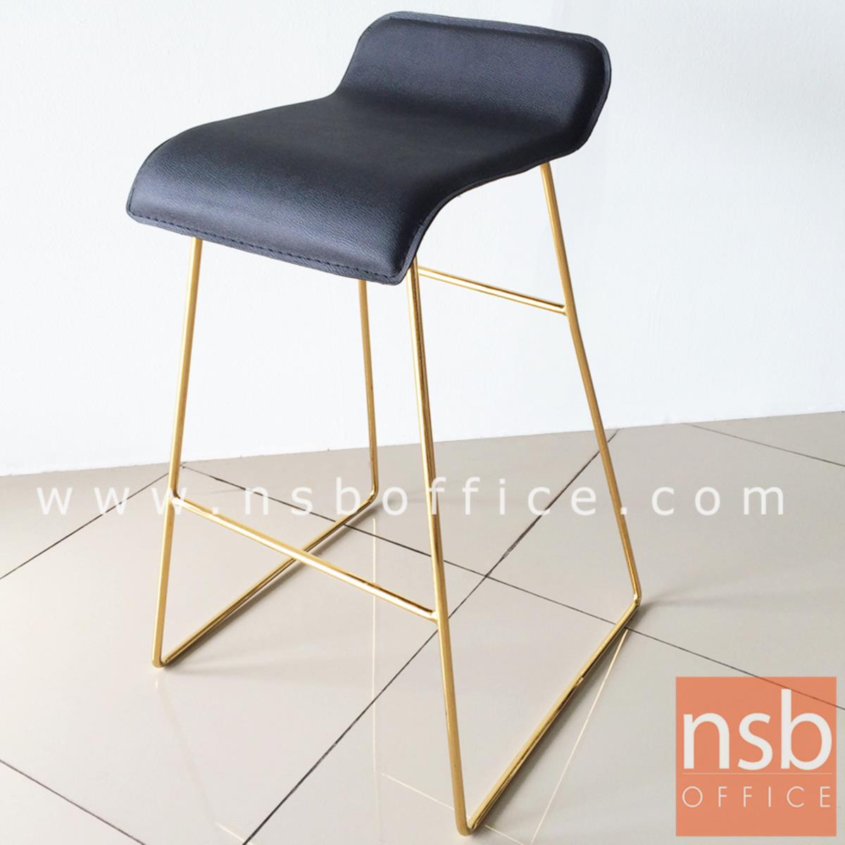 B18A079: เก้าอี้บาร์ ที่นั่งหุ้มหนังเทียม รุ่น Marigold (แมริโกลด์) โครงขาเหล็กชุบทอง