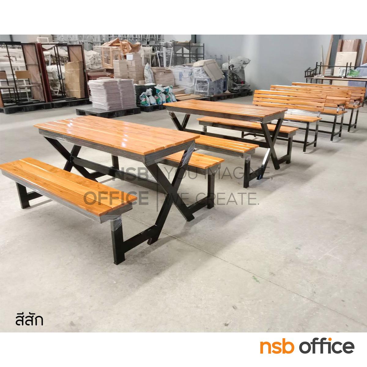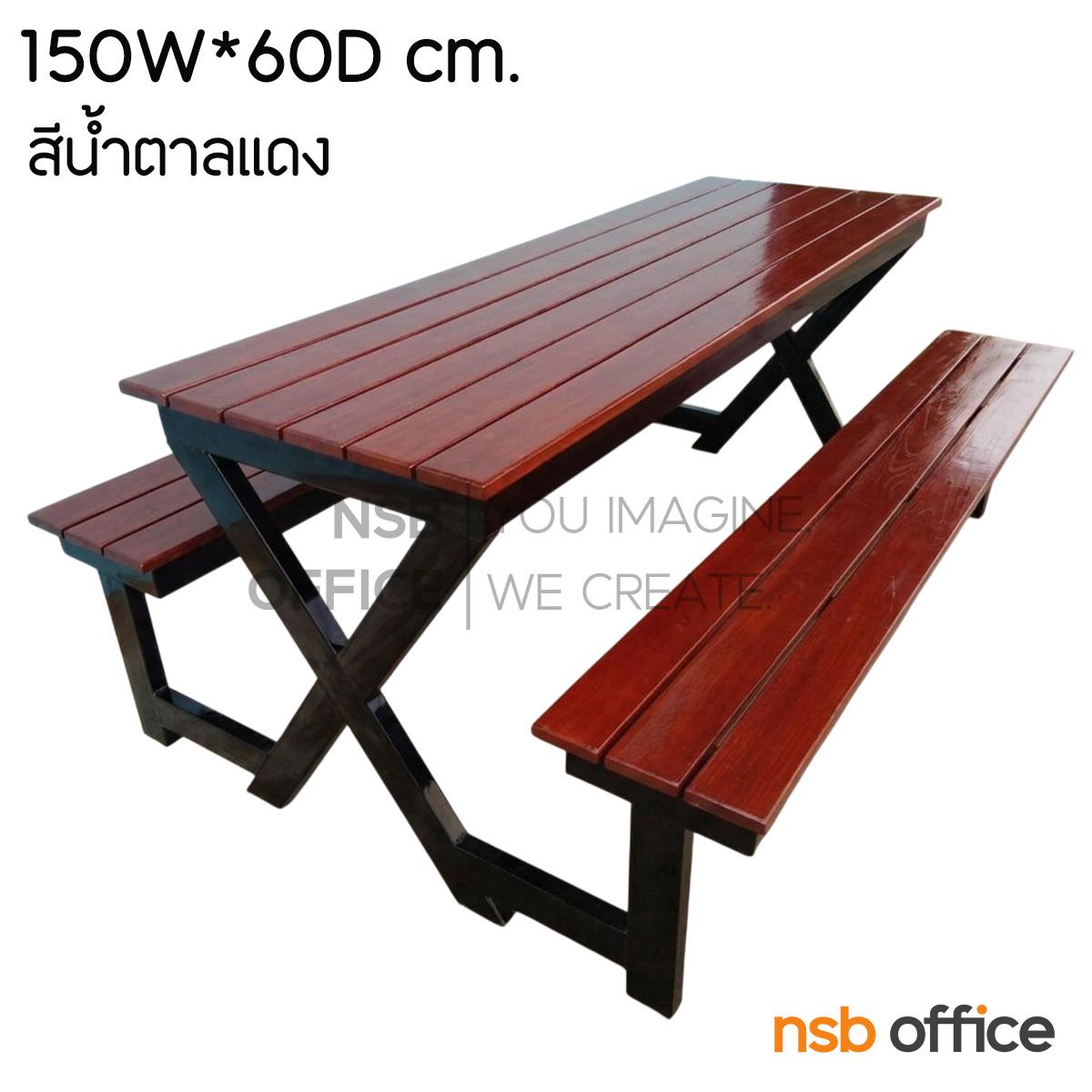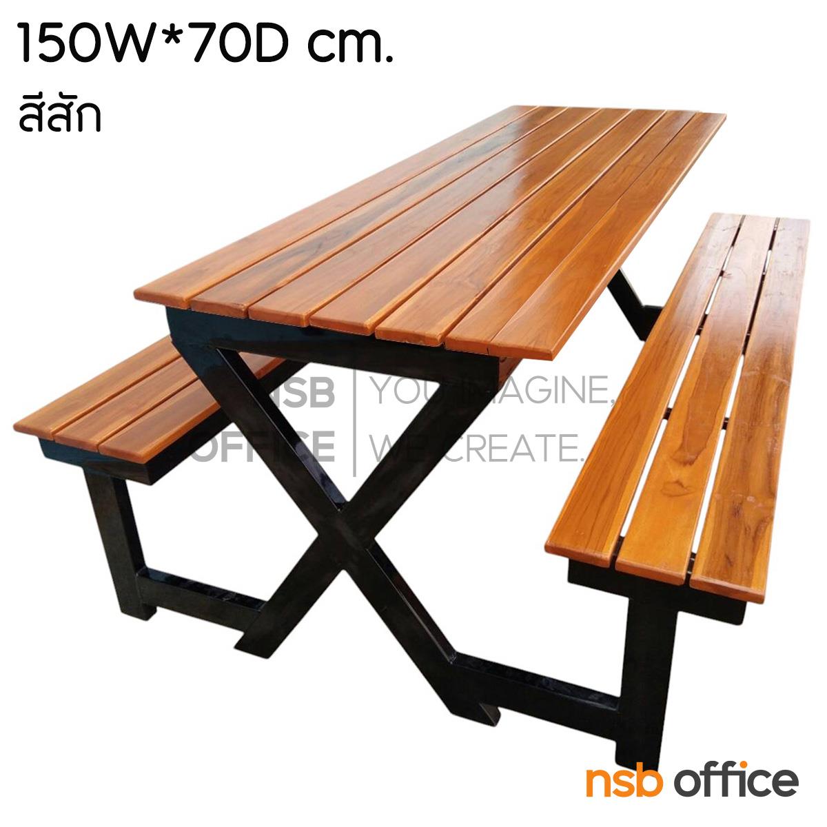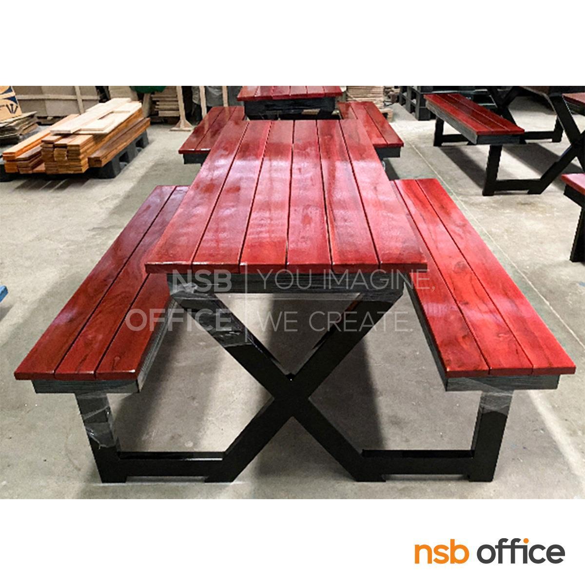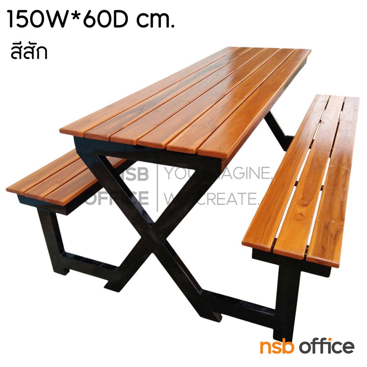 G14A206: โต๊ะโรงอาหาร หน้าไม้สัก รุ่น Leslie (เลสลี) ขนาด 150W cm. (สีไม้สัก และ สีน้ำตาลแดง) ขาเหล็ก X
