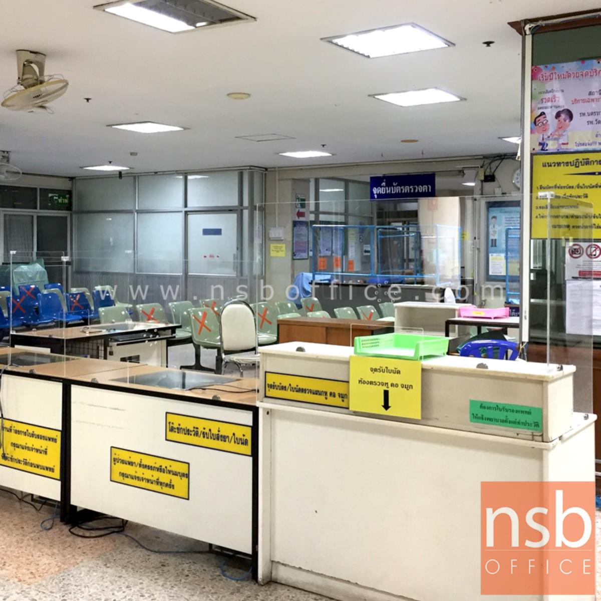 P04A044: มินิสกรีนแผ่นอะคริลิคใส กั้นสูงโต๊ะบริการ รุ่น safe service สูงพิเศษ 60H cm. แบบเจาะหน้าโต๊ะ