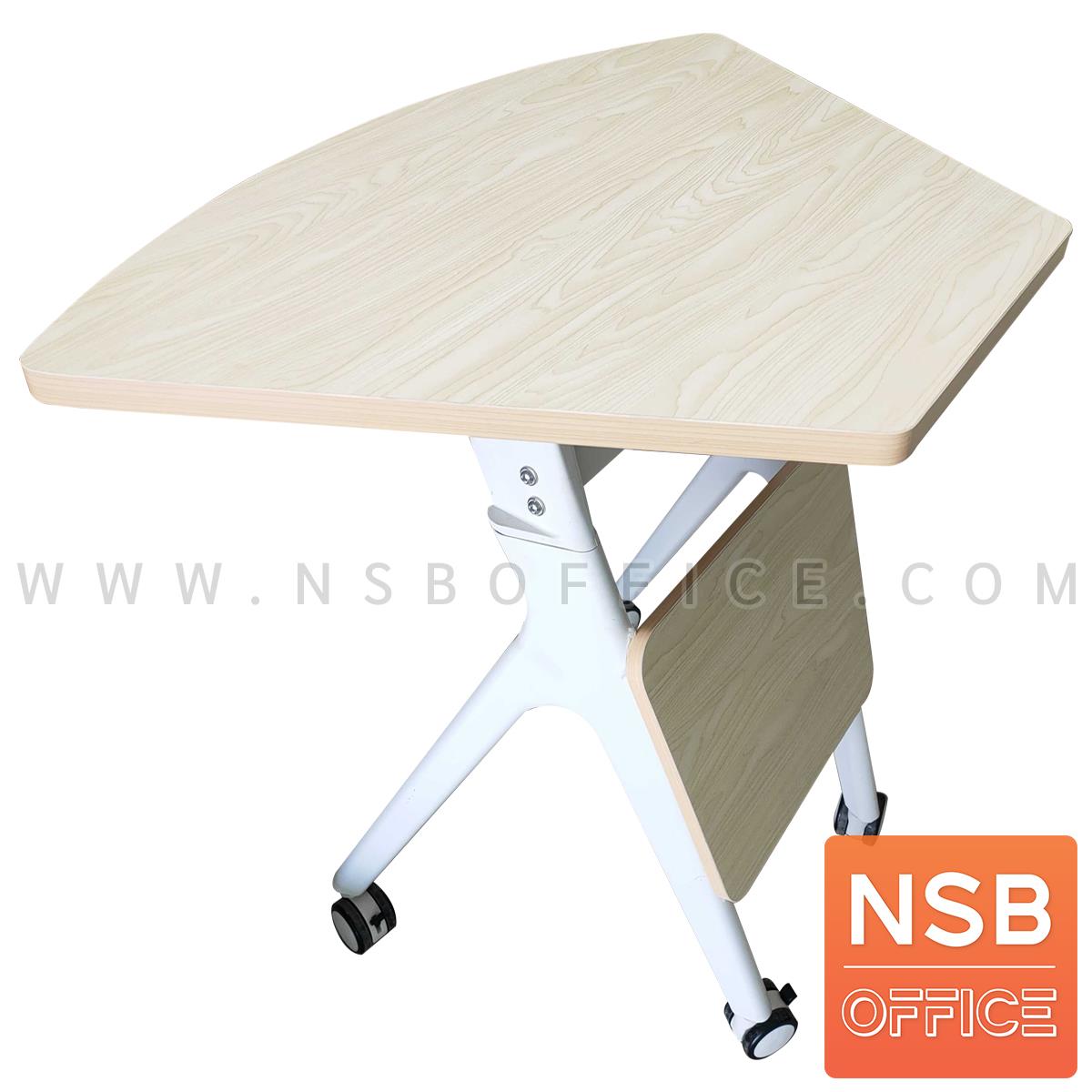 A18A101: โต๊ะพับล้อเลื่อน 1/6 รุ่น Lucy (ลูซี่) โครงเหล็กพ่นสีขาว บังตาไม้