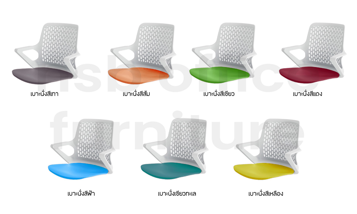 เบาะผลิต 7 สี สีเทา สีส้ม สีเขียว สีฟ้า สีแดง สีเขียวน้ำทะเล และ สีเหลือง