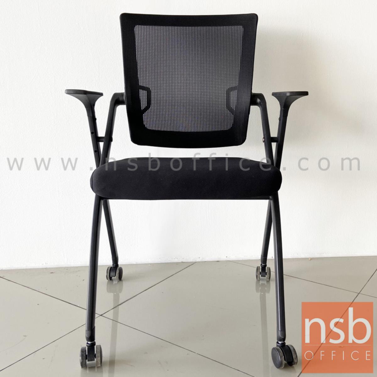 : เก้าอี้สัมมนาหลังเน็ต รุ่น Daho (ดาโฮ) ล้อเลื่อน ขาเหล็กพ่นสีดำ