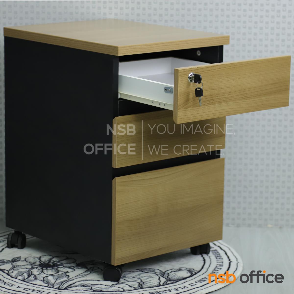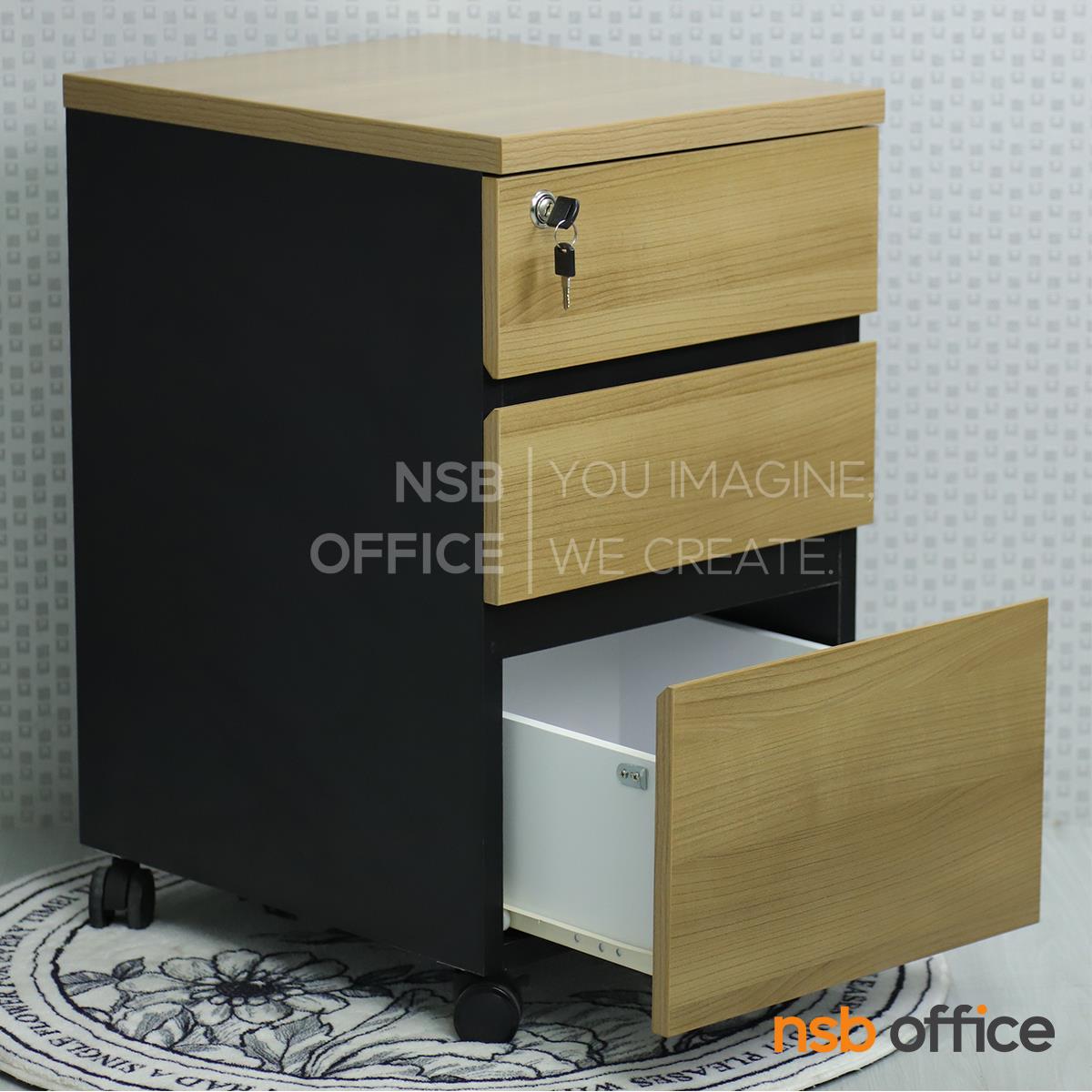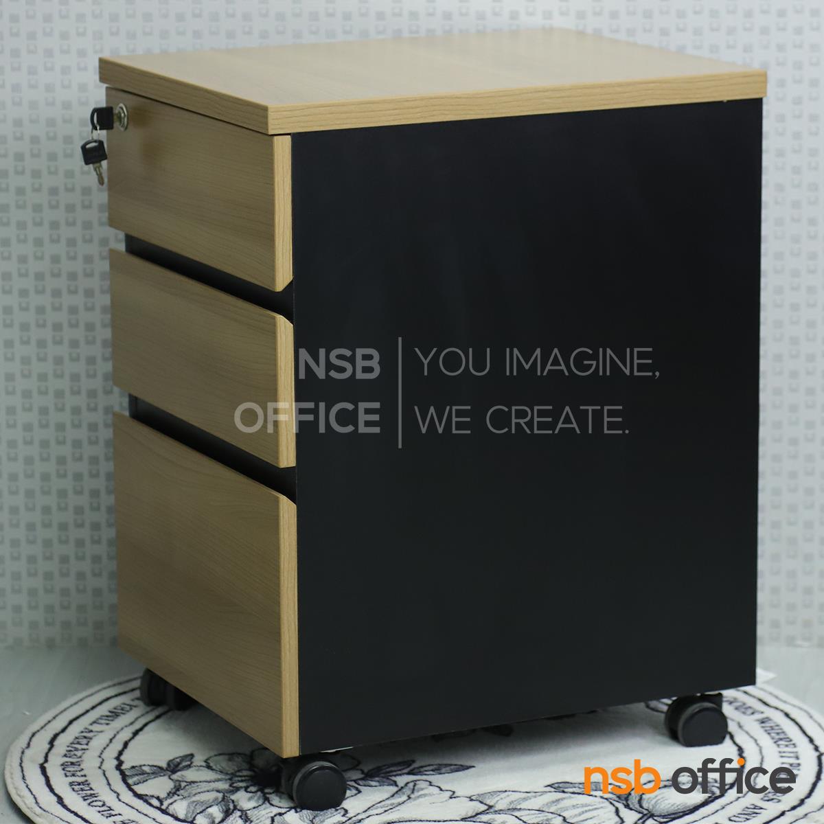 C01A068: ตู้ 3 ลิ้นชักล้อเลื่อน สูง 65 cm. สอดใต้โต๊ะ รุ่น Kenilworth 2 (เคนิลเวิร์ธ 2) เมลามีน บานเพ่