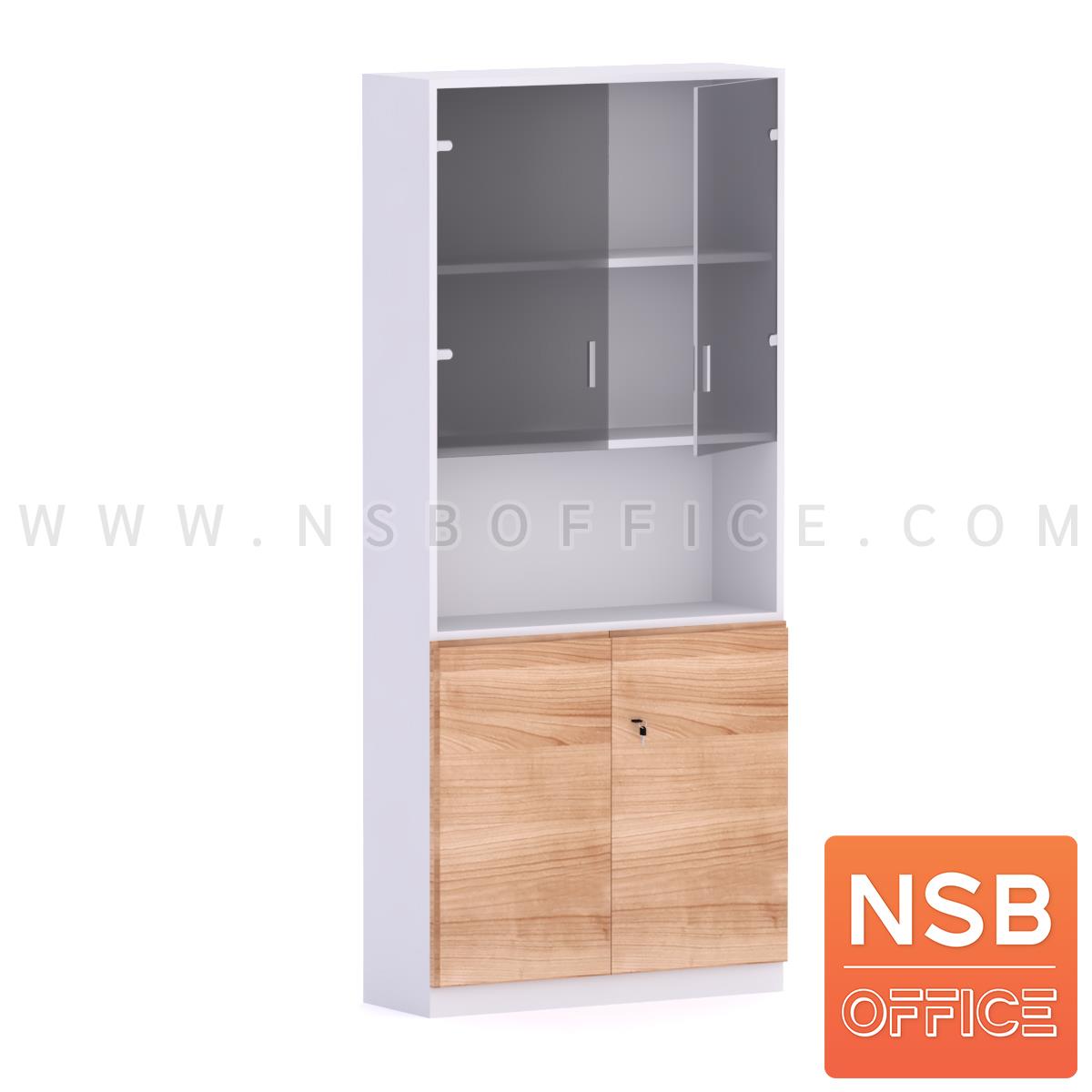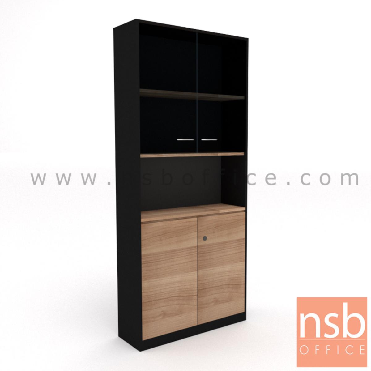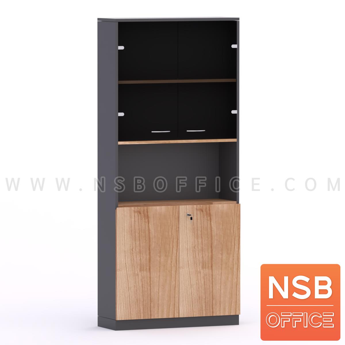 C03A066: ตู้เอกสาร 5 ชั้น บนบานเปิดกระจก ล่างบานเปิดทึบ กลางช่องโล่ง รุ่น EP-3036 สูง 200 cm. เมลามีน