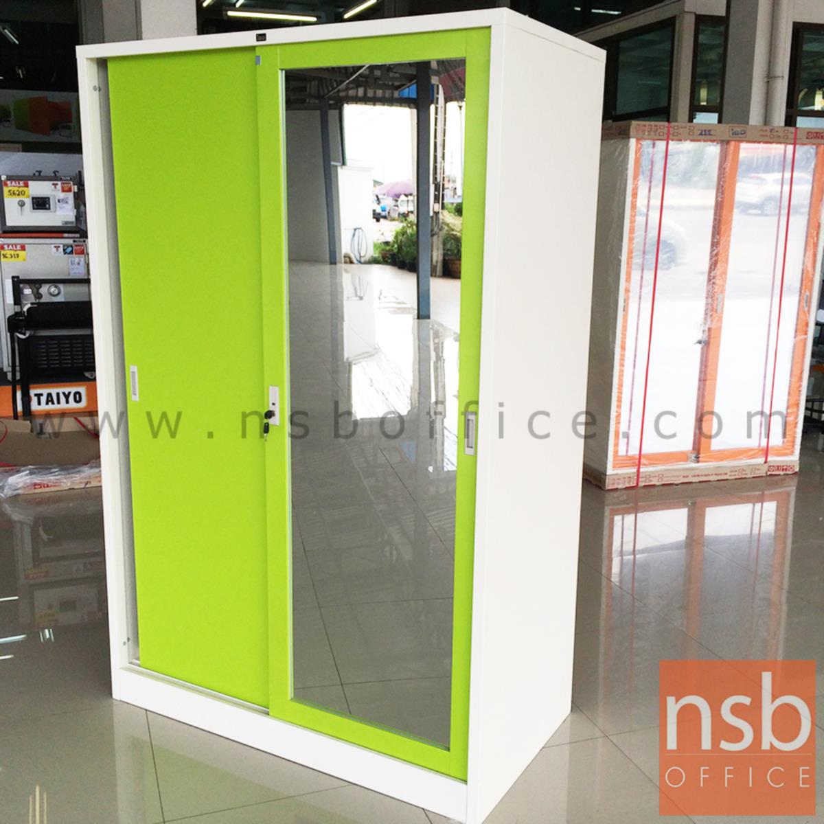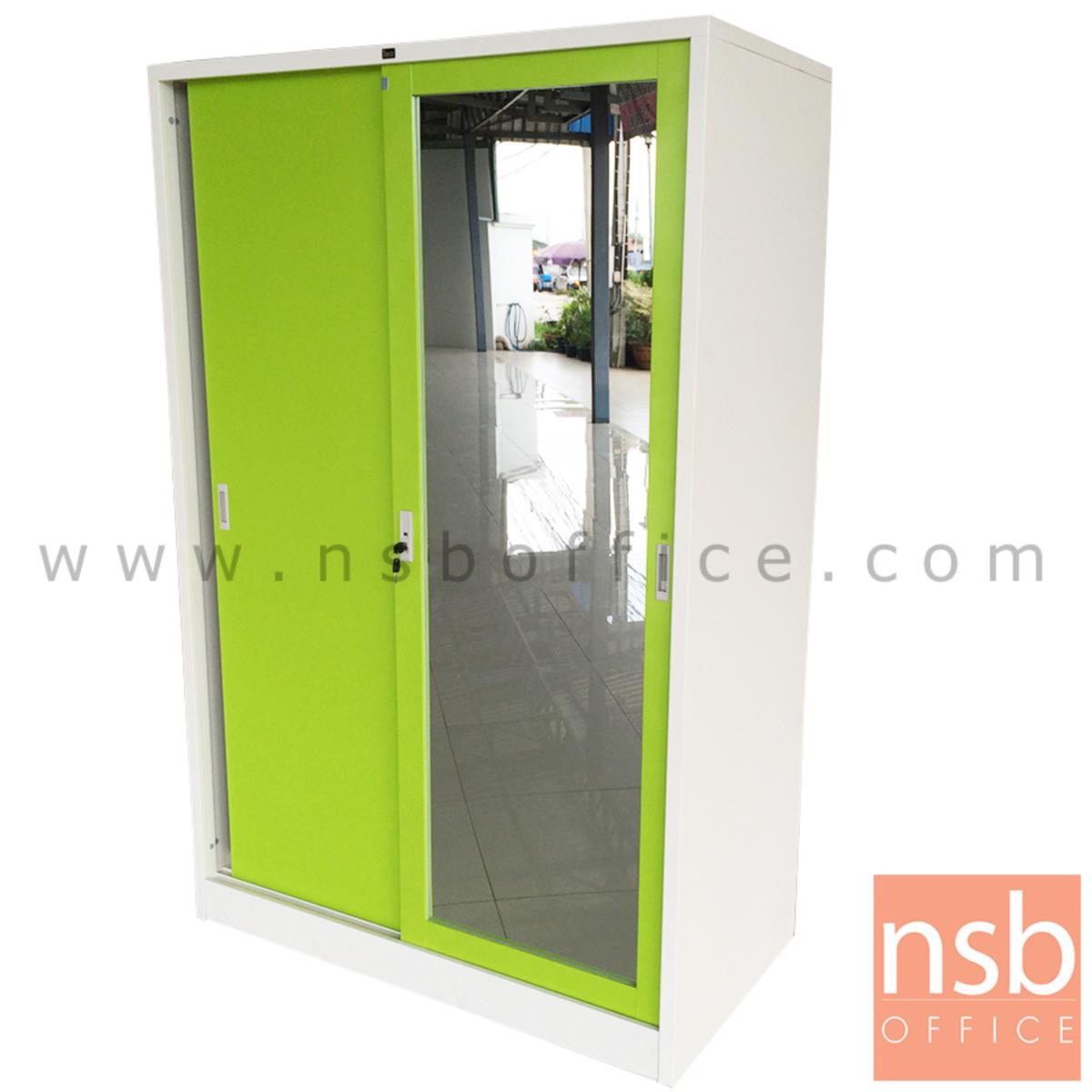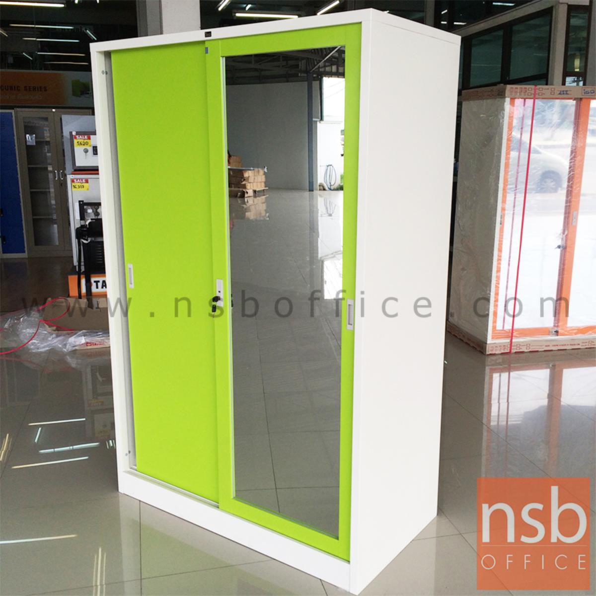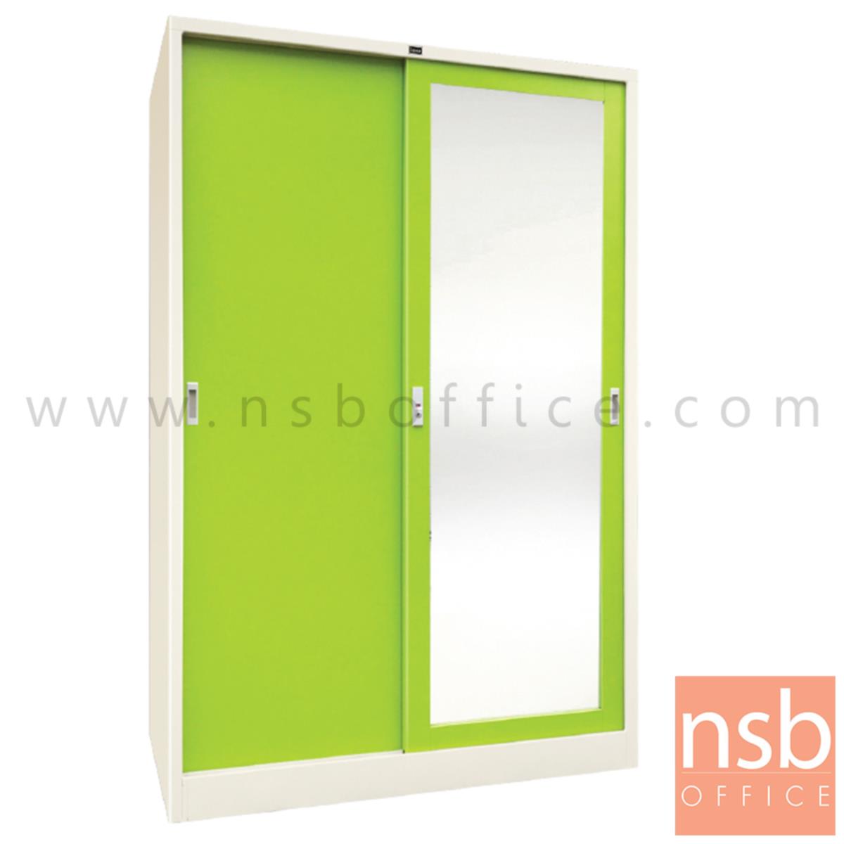 : ตู้เสื้อผ้าเหล็ก 1 บานเลื่อนกระจก 1 บานเลื่อนทึบ รุ่น Doncaster (ดองคัสเตอร์) ขนาด 120W cm.