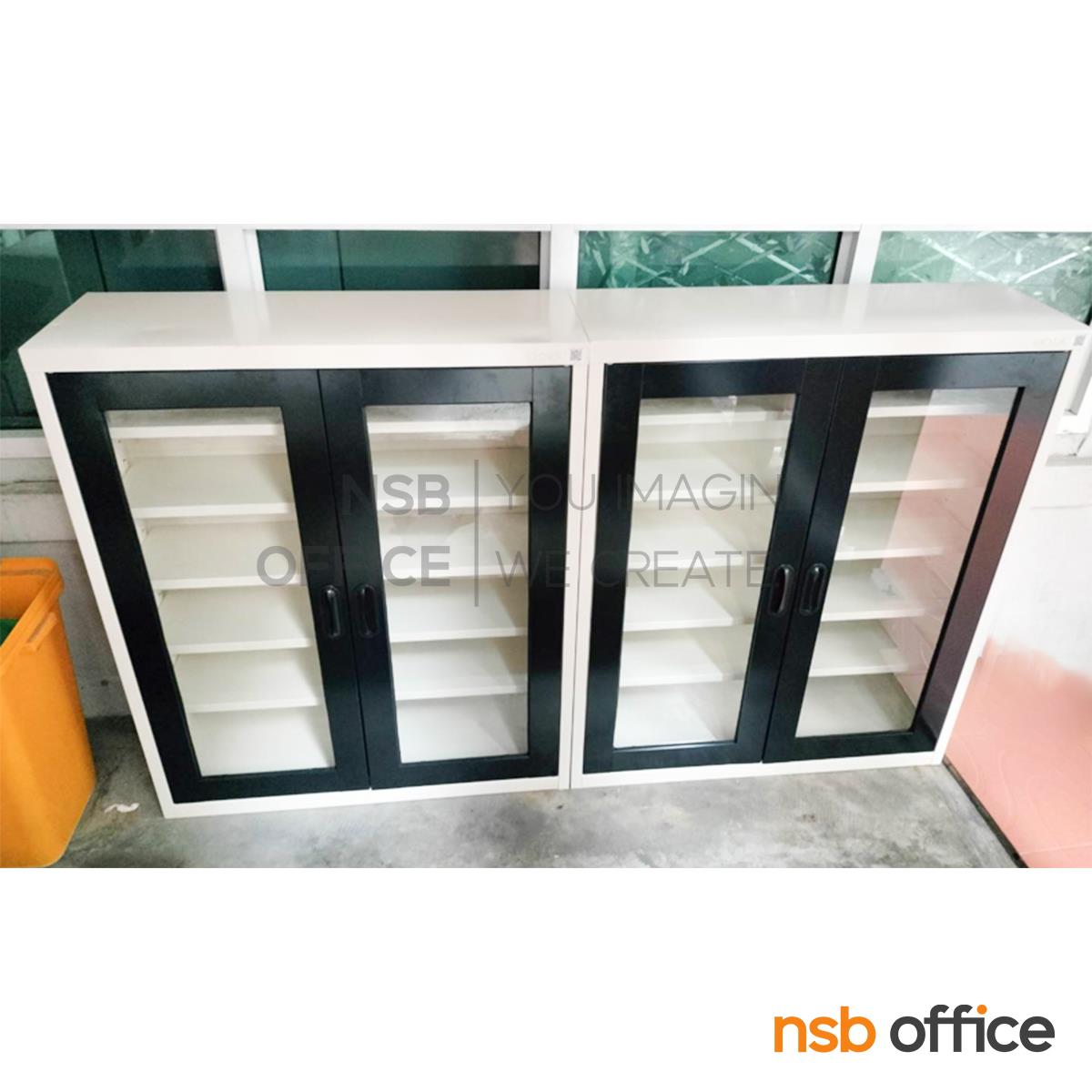 E25A055: ตู้รองเท้า 2 บานเปิดกระจก สูง 105 ซม. รุ่น MAX-033