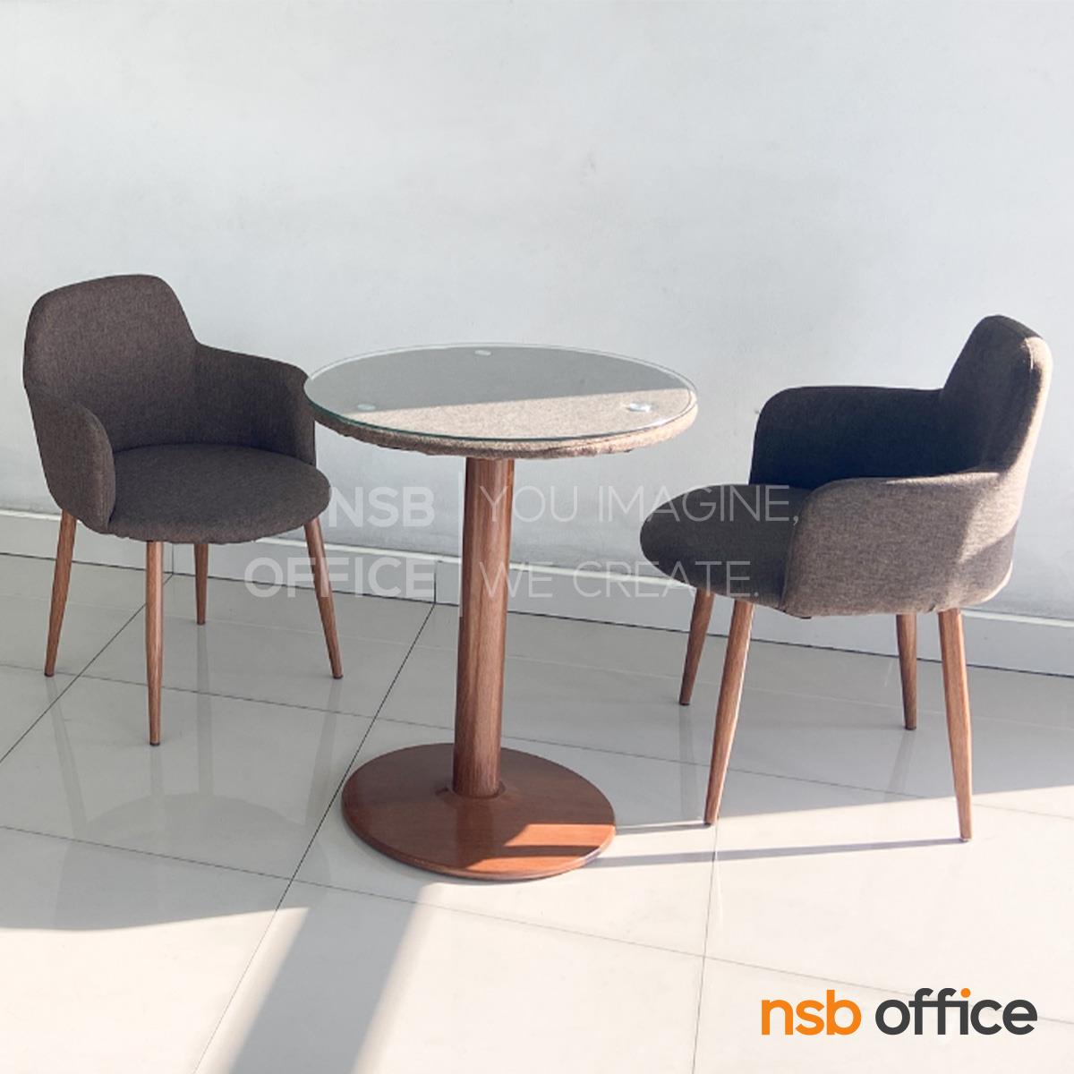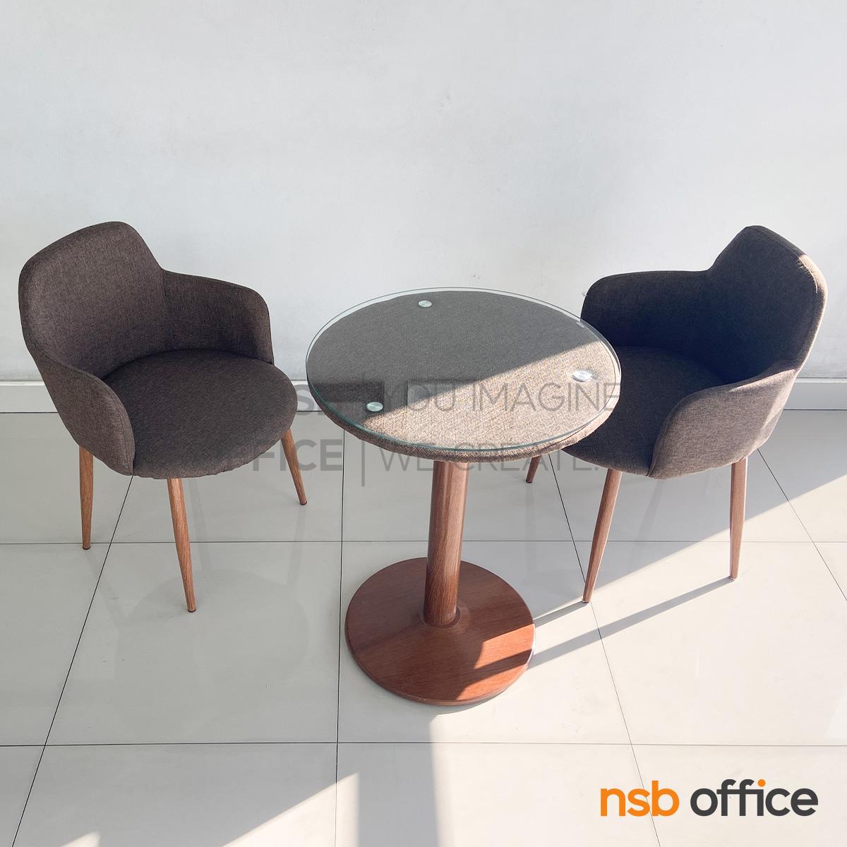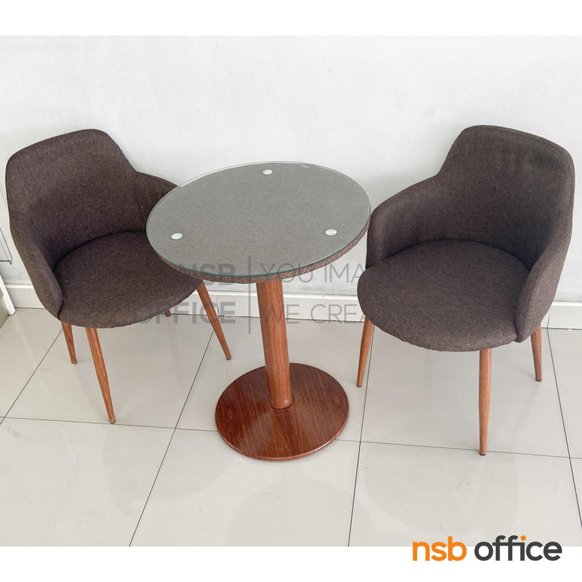 A14A271: ชุดโต๊ะบาร์หน้ากระจก 2 ที่นั่ง รุ่น Zion (ไซออน) พร้อมเก้าอี้เบาะหุ้มผ้า ขาเหล็กลายไม้