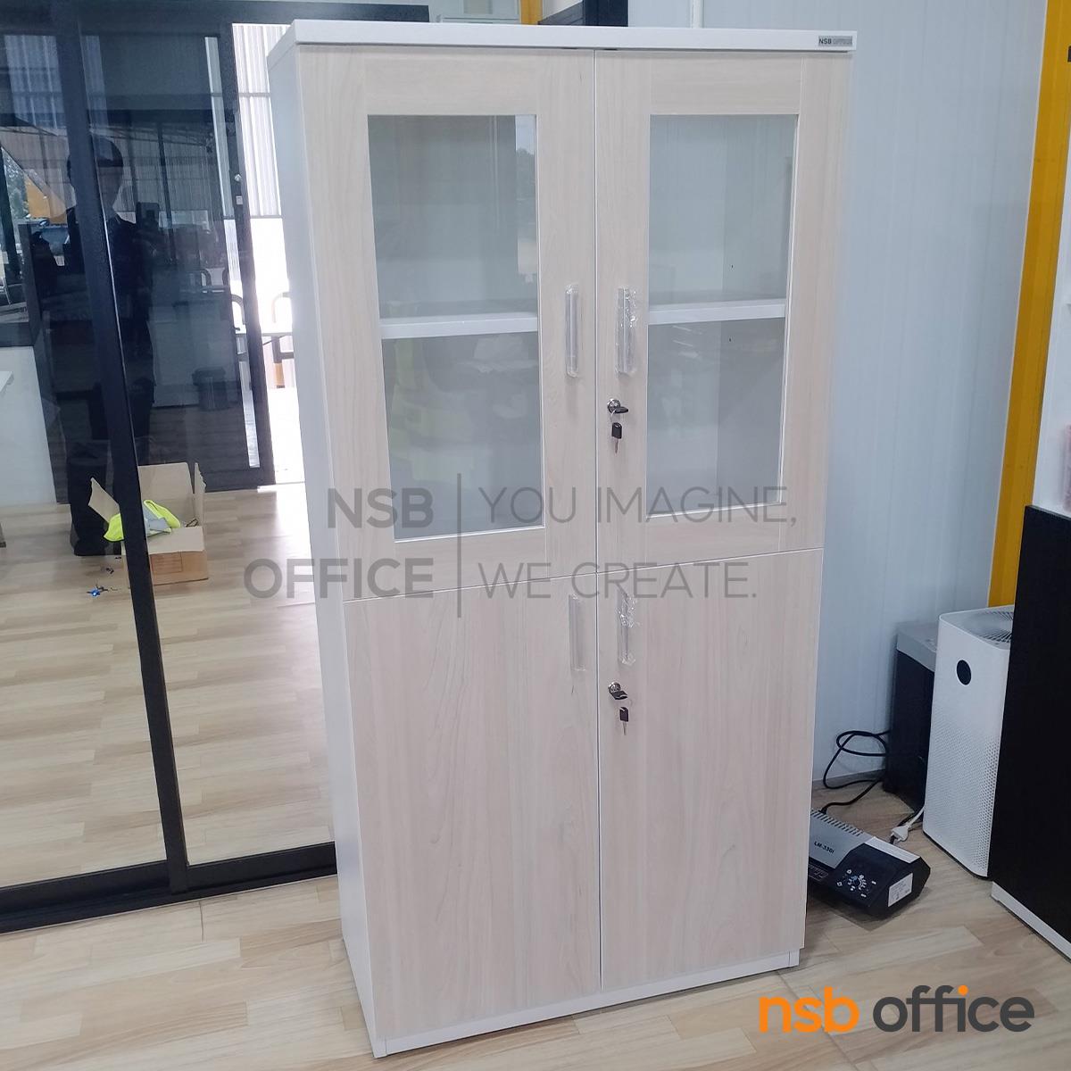 : ตู้เอกสาร บนบานเปิดกระจกเฟรมไม้ ล่างบานเปิดทึบ รุ่น Garcia (การ์เซีย) สีมาตรฐาน เมลามีน
