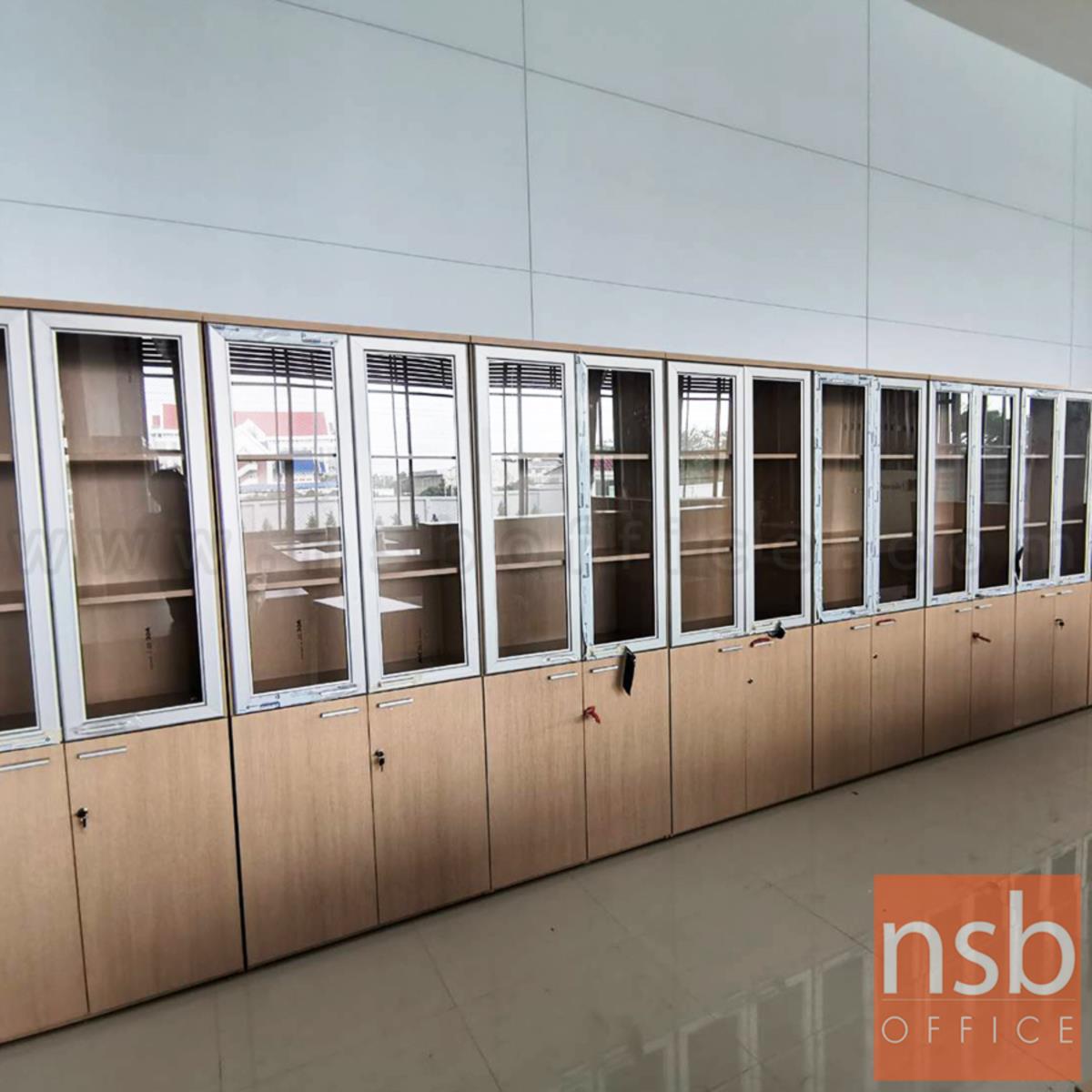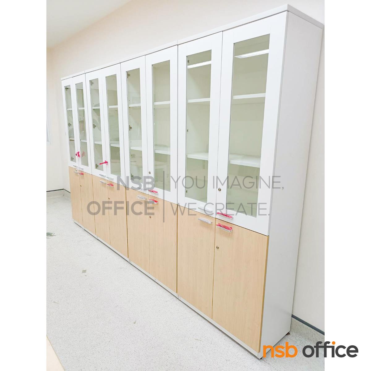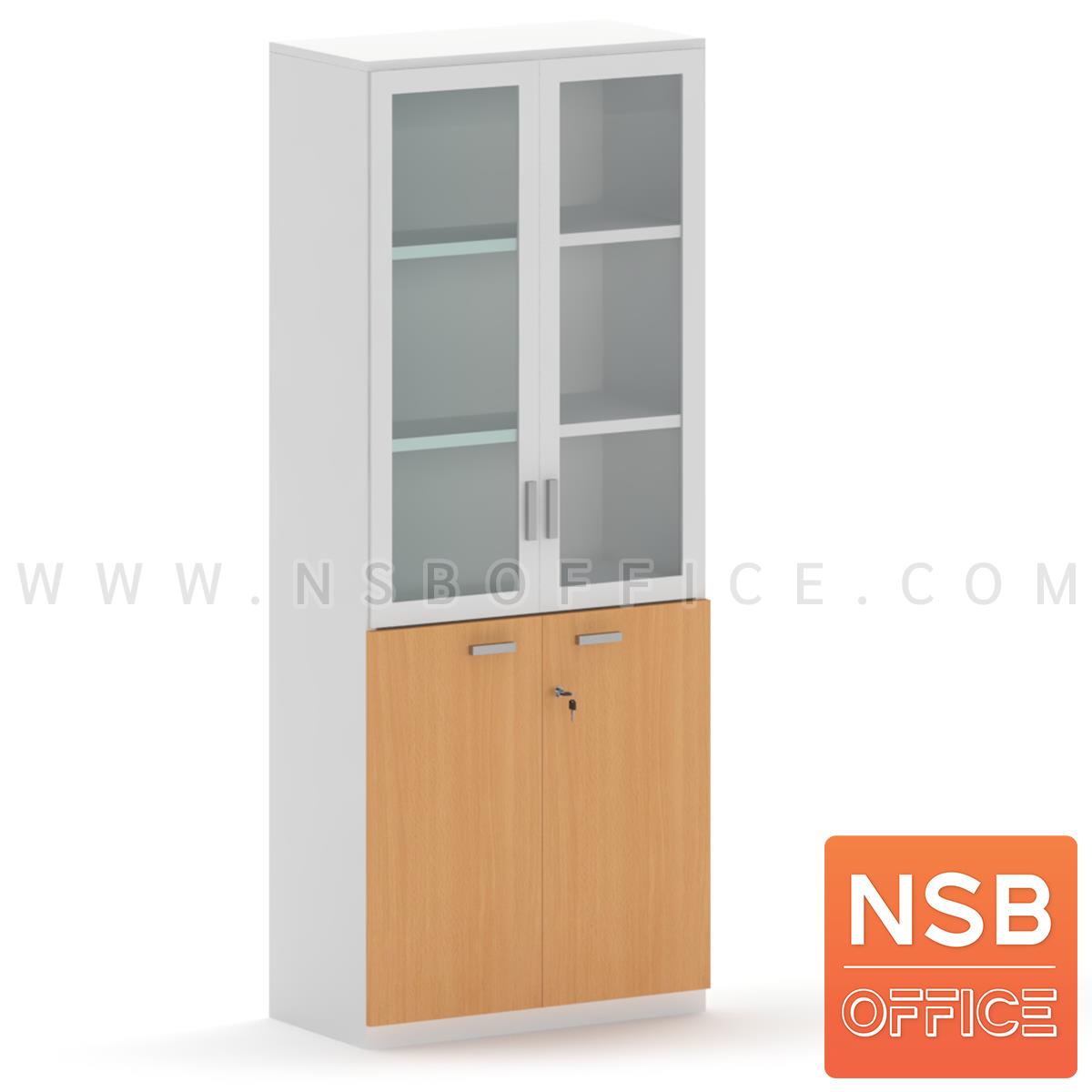 : ตู้เอกสาร 5 ชั้น บนบานเปิดกระจกเฟรมไม้ ล่าง 2 บานเปิดทึบ รุ่น Gabriel (กาเบรียล) ขนาด 80W cm. สีพิเศษ เมลามีน