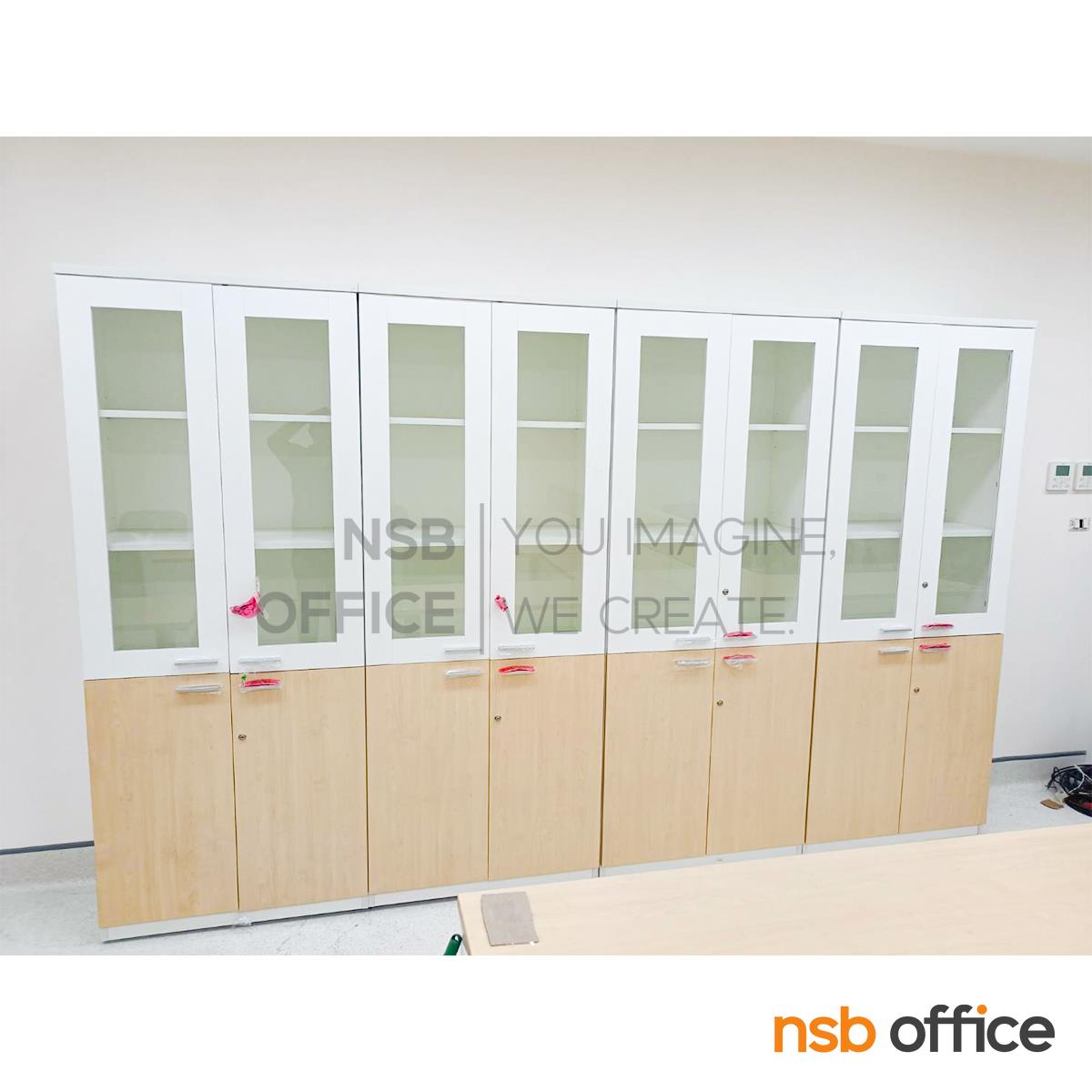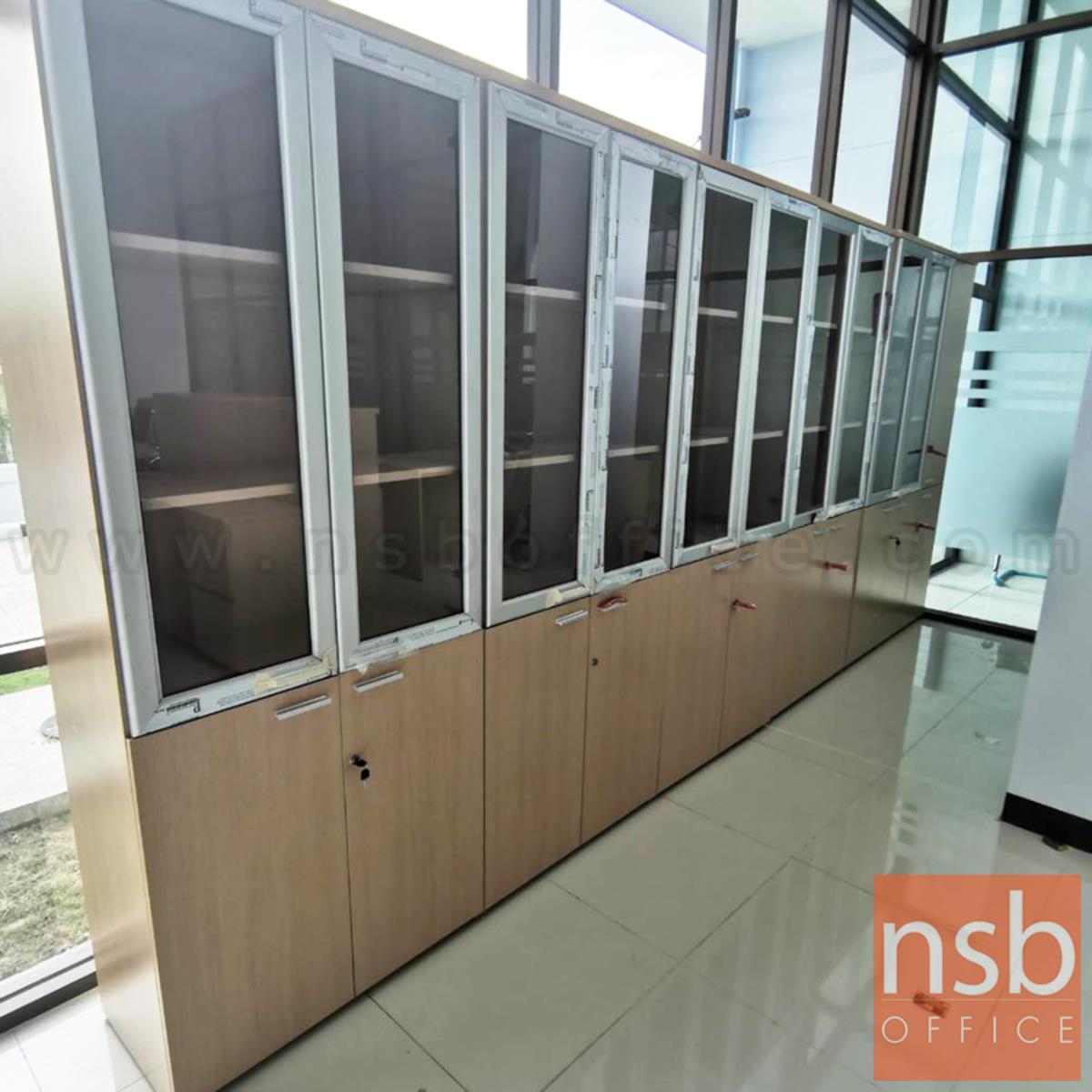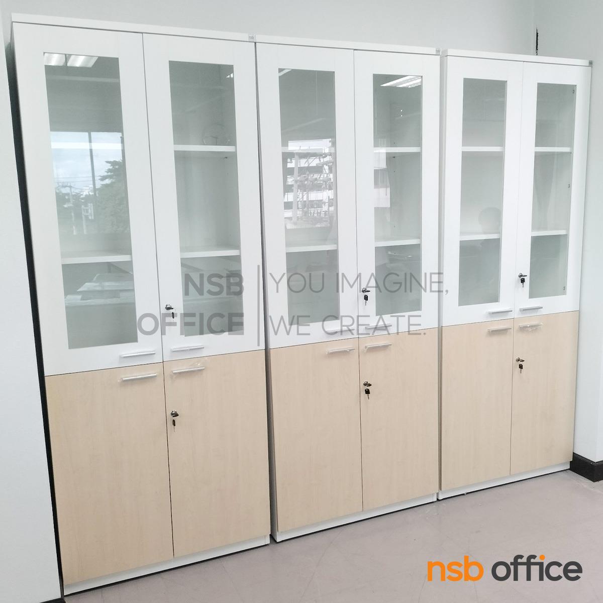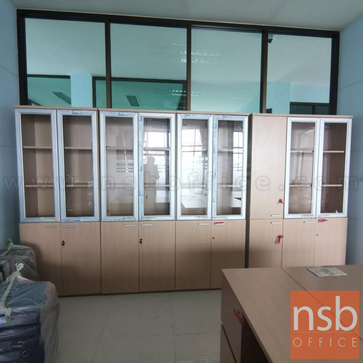 : ตู้เอกสาร 5 ชั้น บนบานเปิดกระจกเฟรมไม้ ล่าง 2 บานเปิดทึบ รุ่น Gabriel (กาเบรียล) ขนาด 80W cm. สีพิเศษ เมลามีน