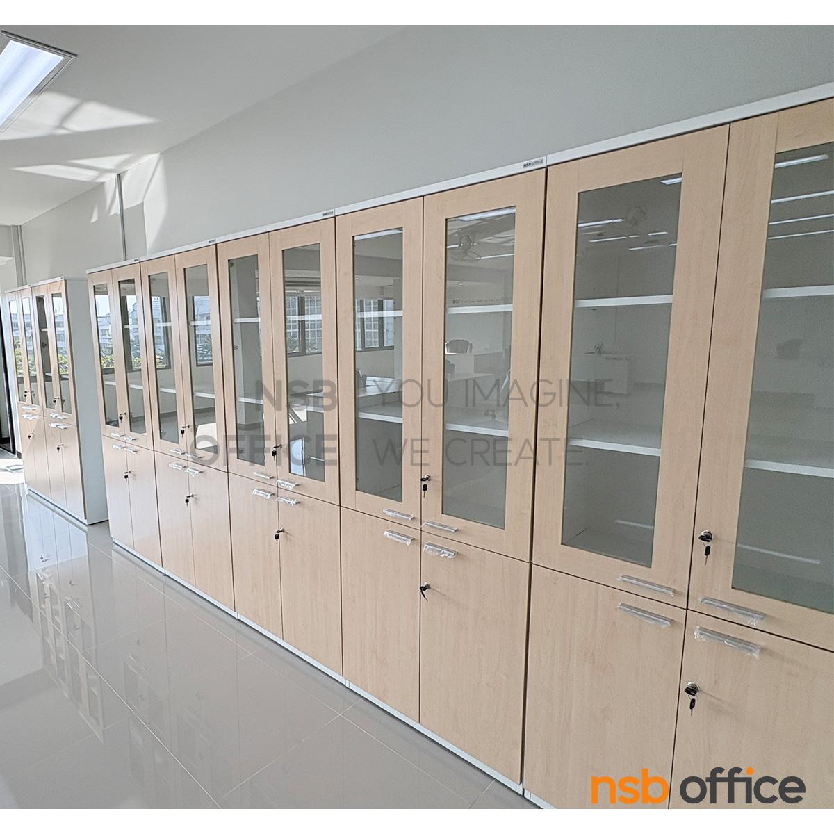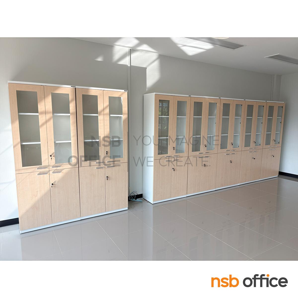 : ตู้เอกสาร 5 ชั้น บนบานเปิดกระจกเฟรมไม้ ล่าง 2 บานเปิดทึบ รุ่น Gabriel (กาเบรียล) ขนาด 80W cm. สีมาตรฐาน เมลามีน