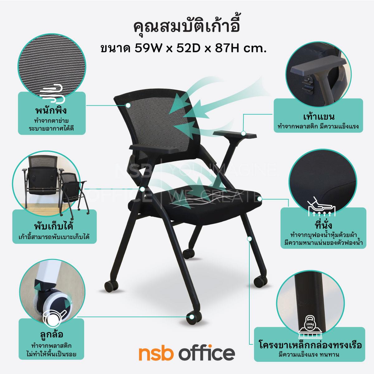: เก้าอี้สัมมนาหลังเน็ต รุ่น Rolex (โรเล็กซ์) ล้อเลื่อน ขาเหล็กพ่นดำ