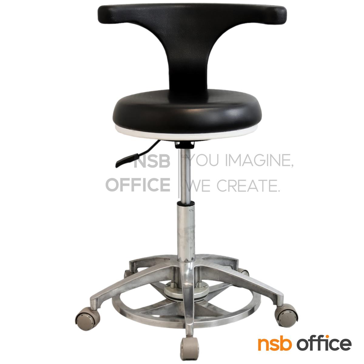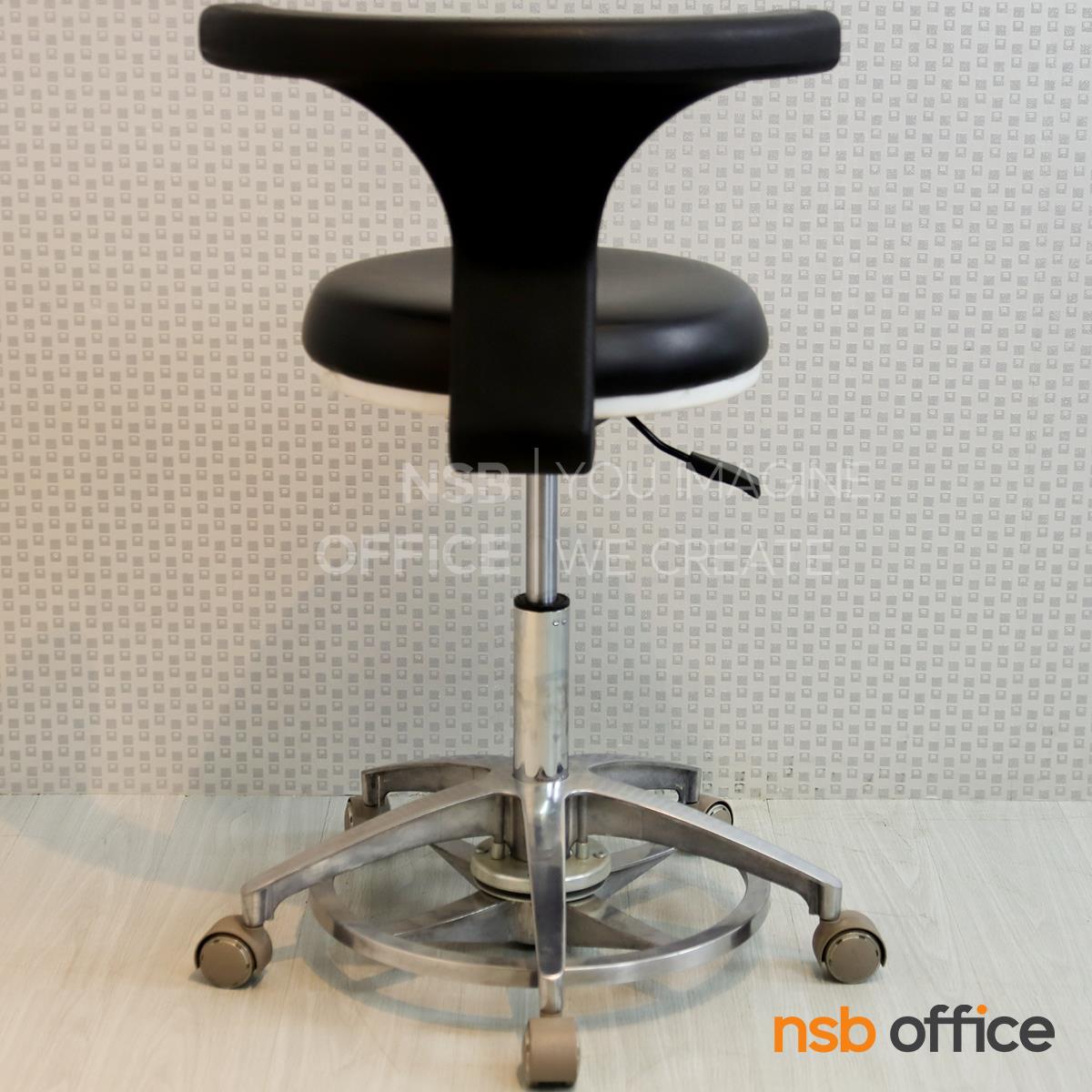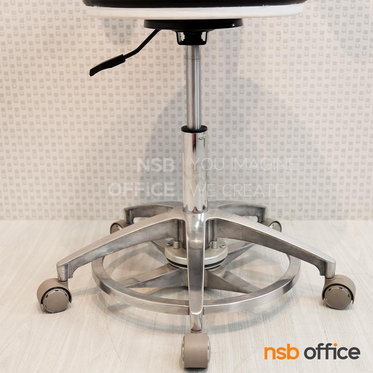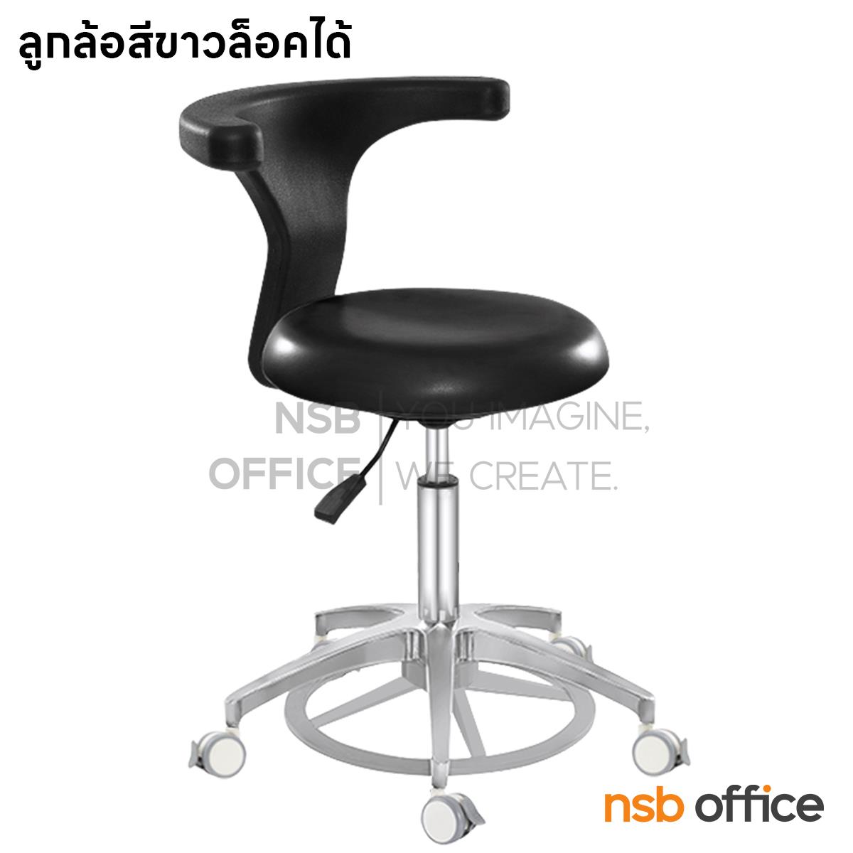 : เก้าอี้คุณหมอ รุ่น Mocking (ม็อกกิ้ง) (ล้อสีขาว ลูกล้อล็อกได้) ขาอลูมีเนียม ลูกล้อเก็บเสียง (ปรับระดับด้วยเท้า)