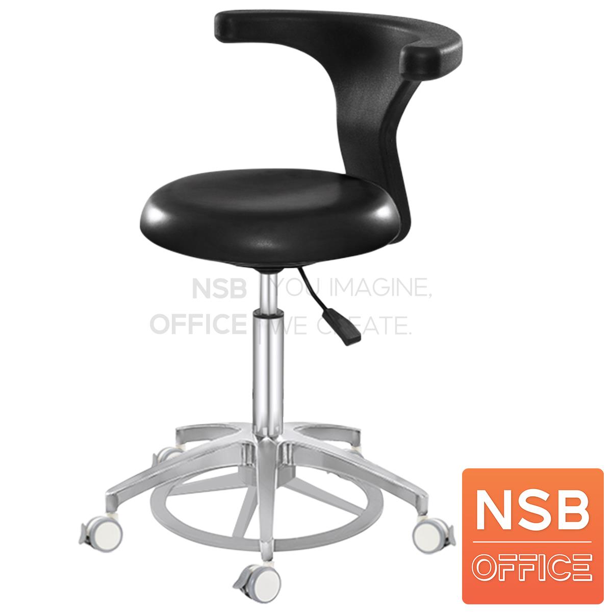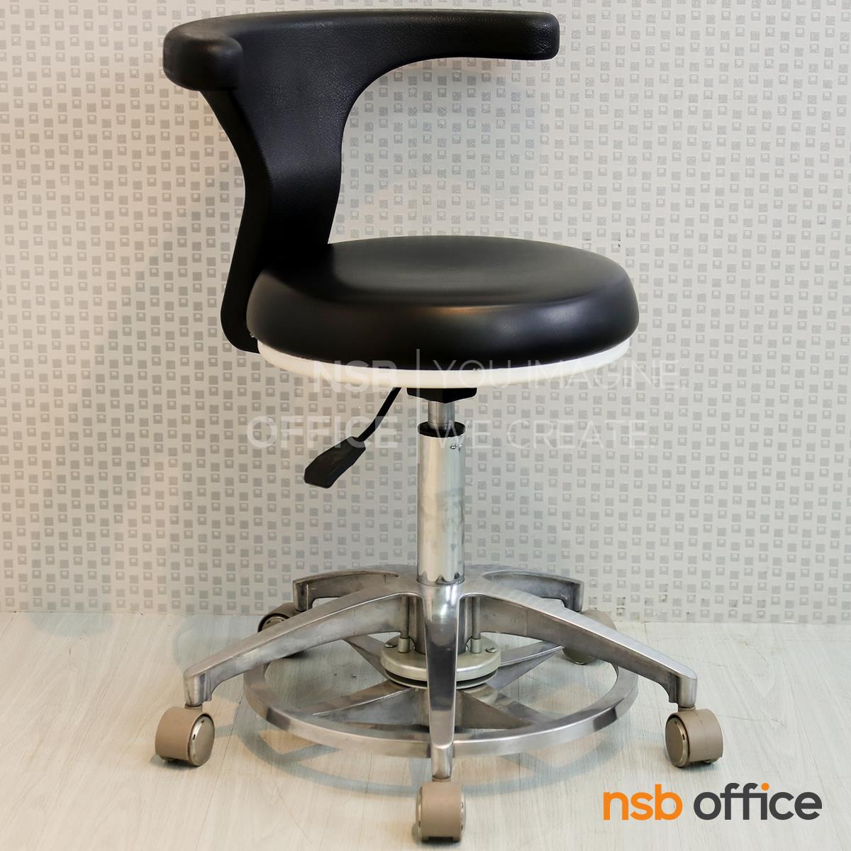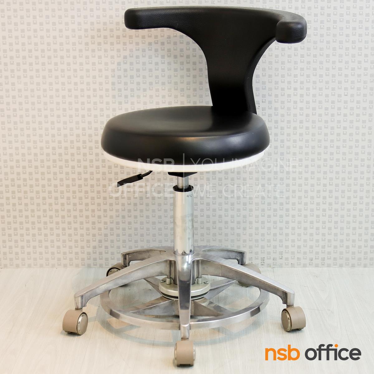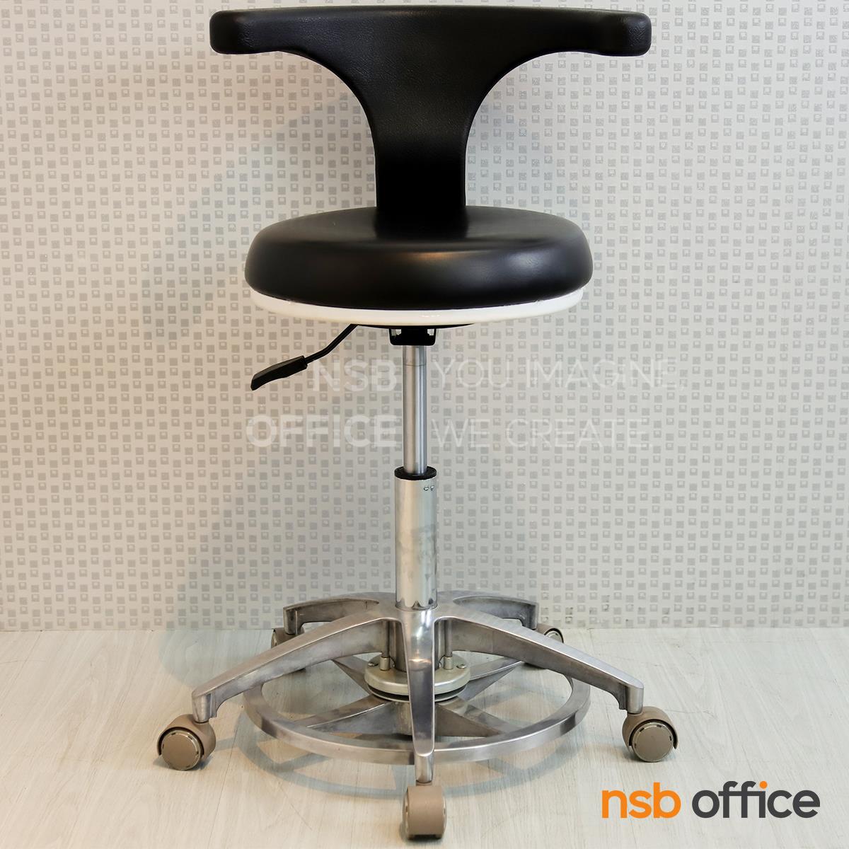 : เก้าอี้คุณหมอ รุ่น Mocking (ม็อกกิ้ง) (ล้อสีขาว ลูกล้อล็อกได้) ขาอลูมีเนียม ลูกล้อเก็บเสียง (ปรับระดับด้วยเท้า)