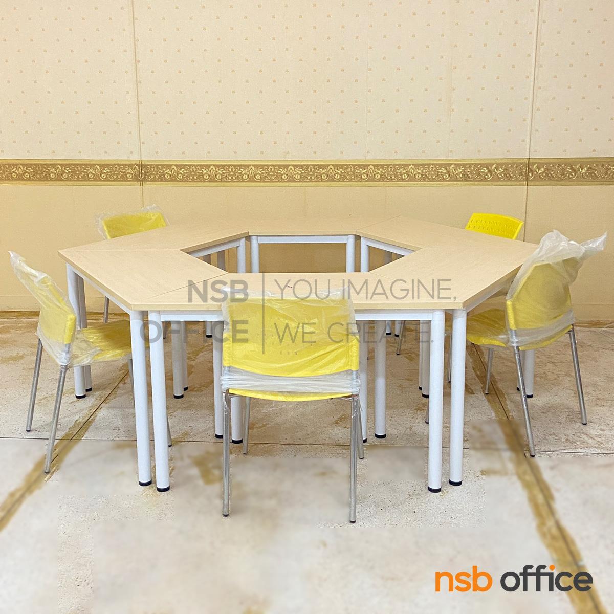 : โต๊ะทรงคางหมู 118W cm. รุ่น Mulrey (มัลเรย์) Top เมลามีน โครงขาสีขาว