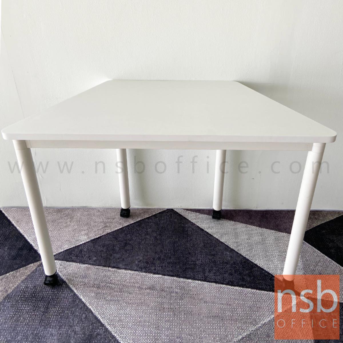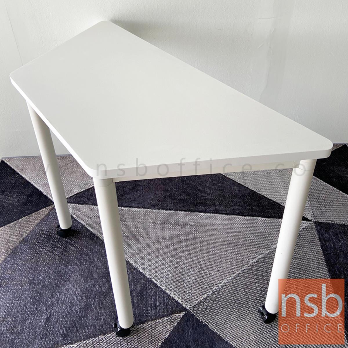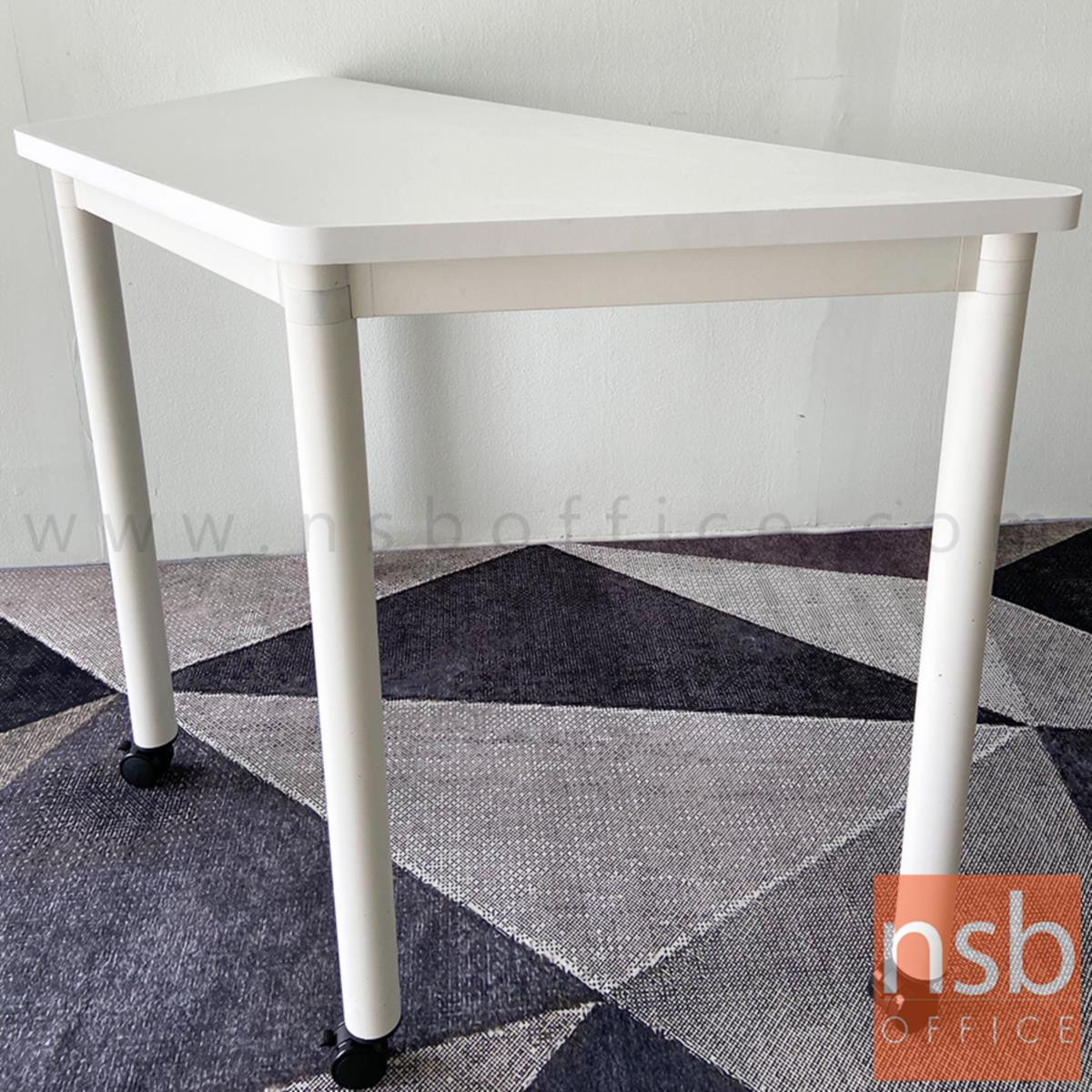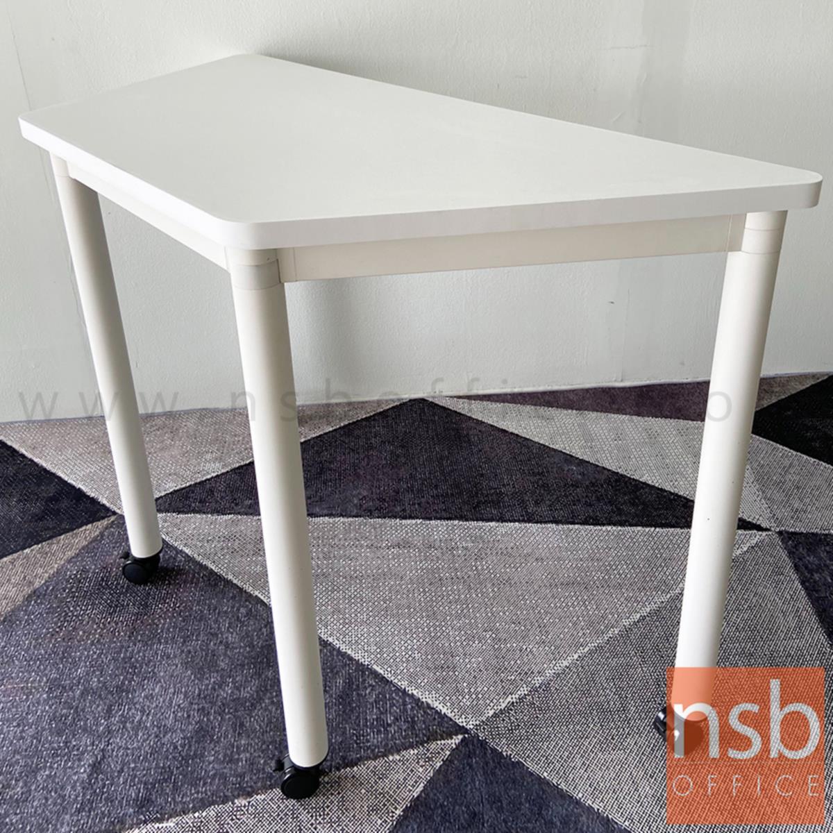: โต๊ะทรงคางหมูล้อเลื่อน 118W cm รุ่น Malfoy (มัลฟอย) หน้า Top เมลามีน HPL โครงขาสีขาว
