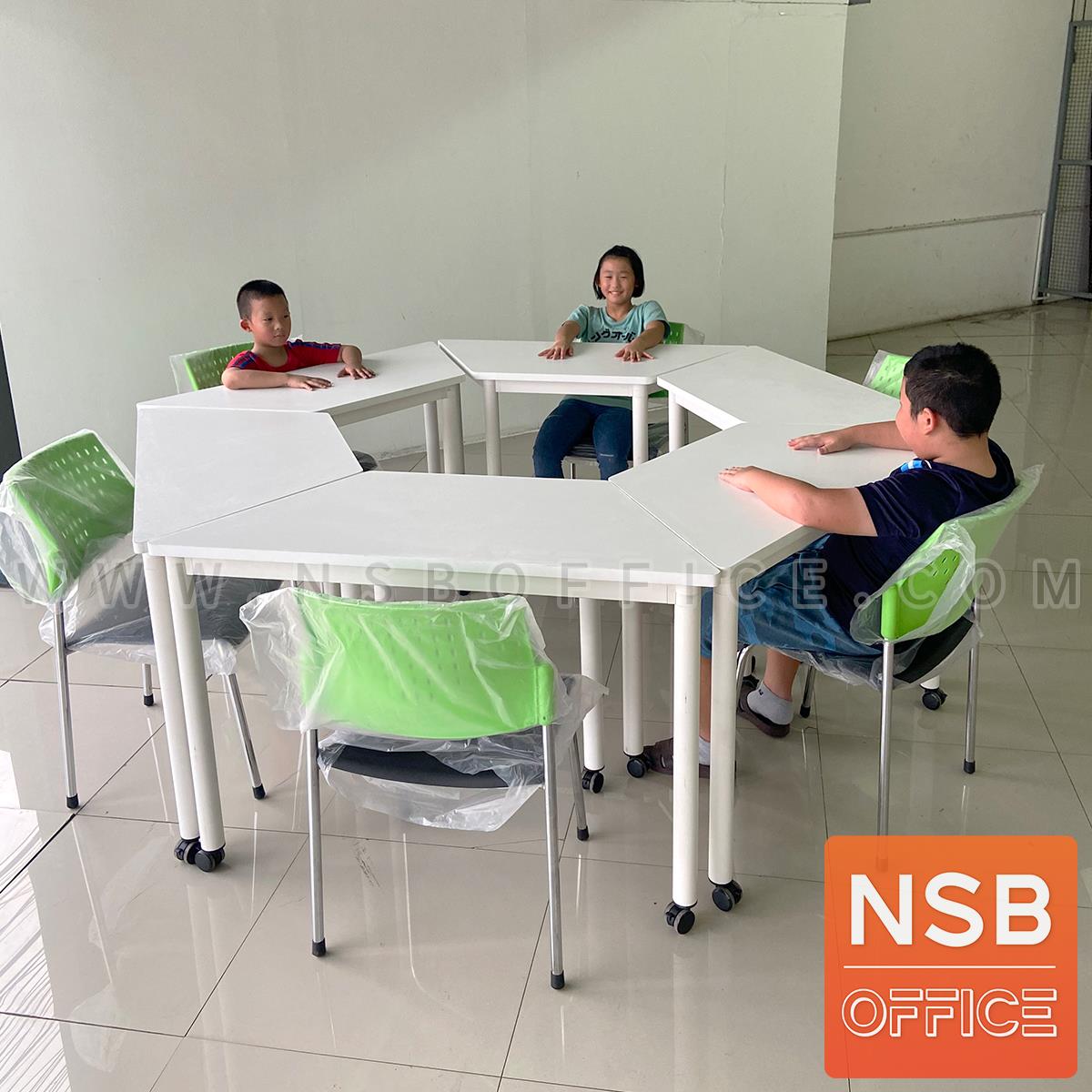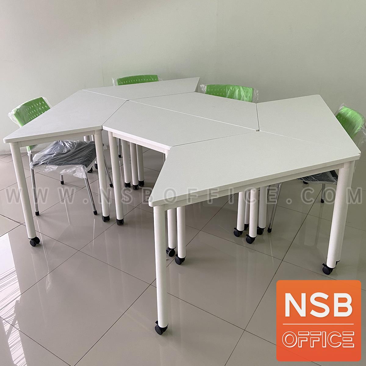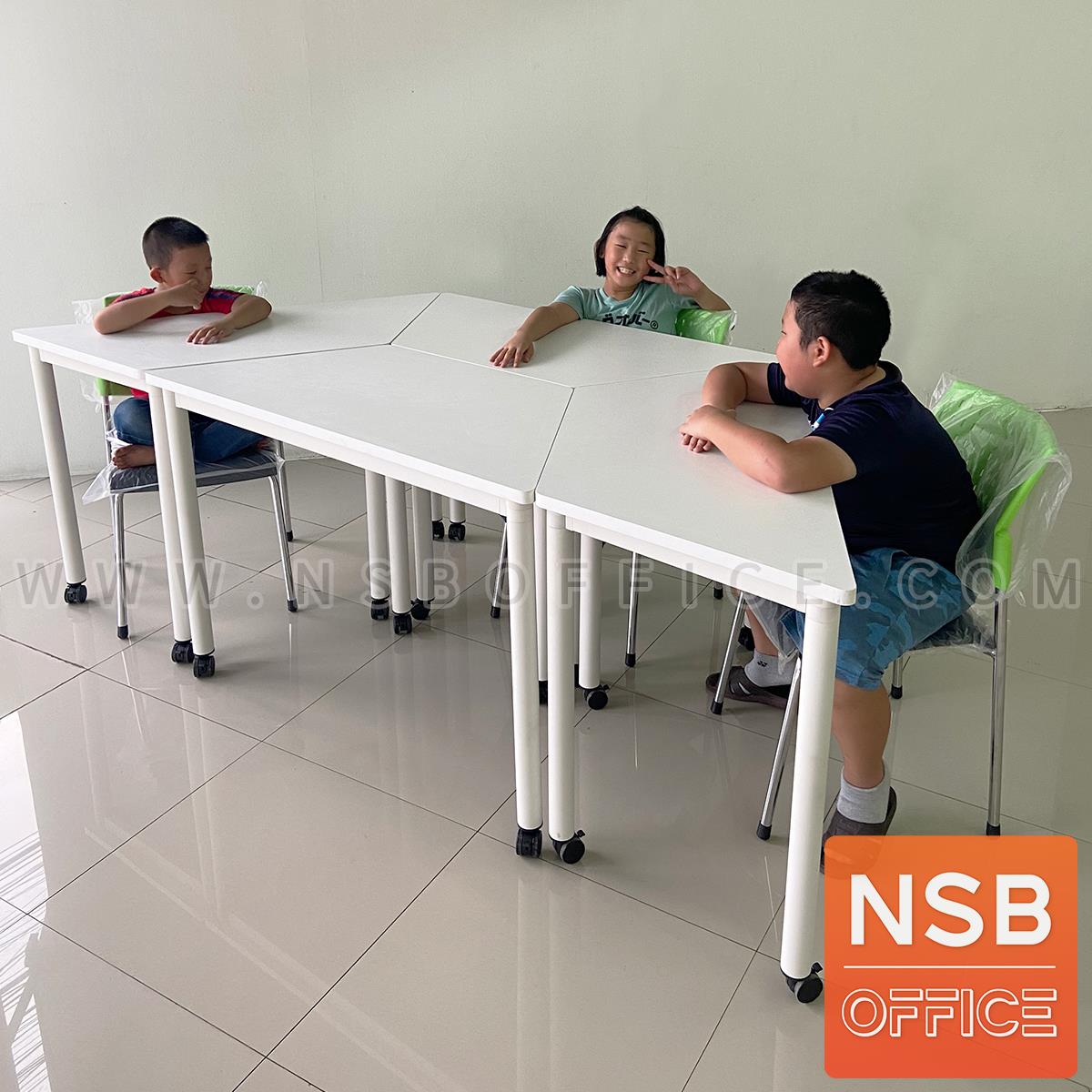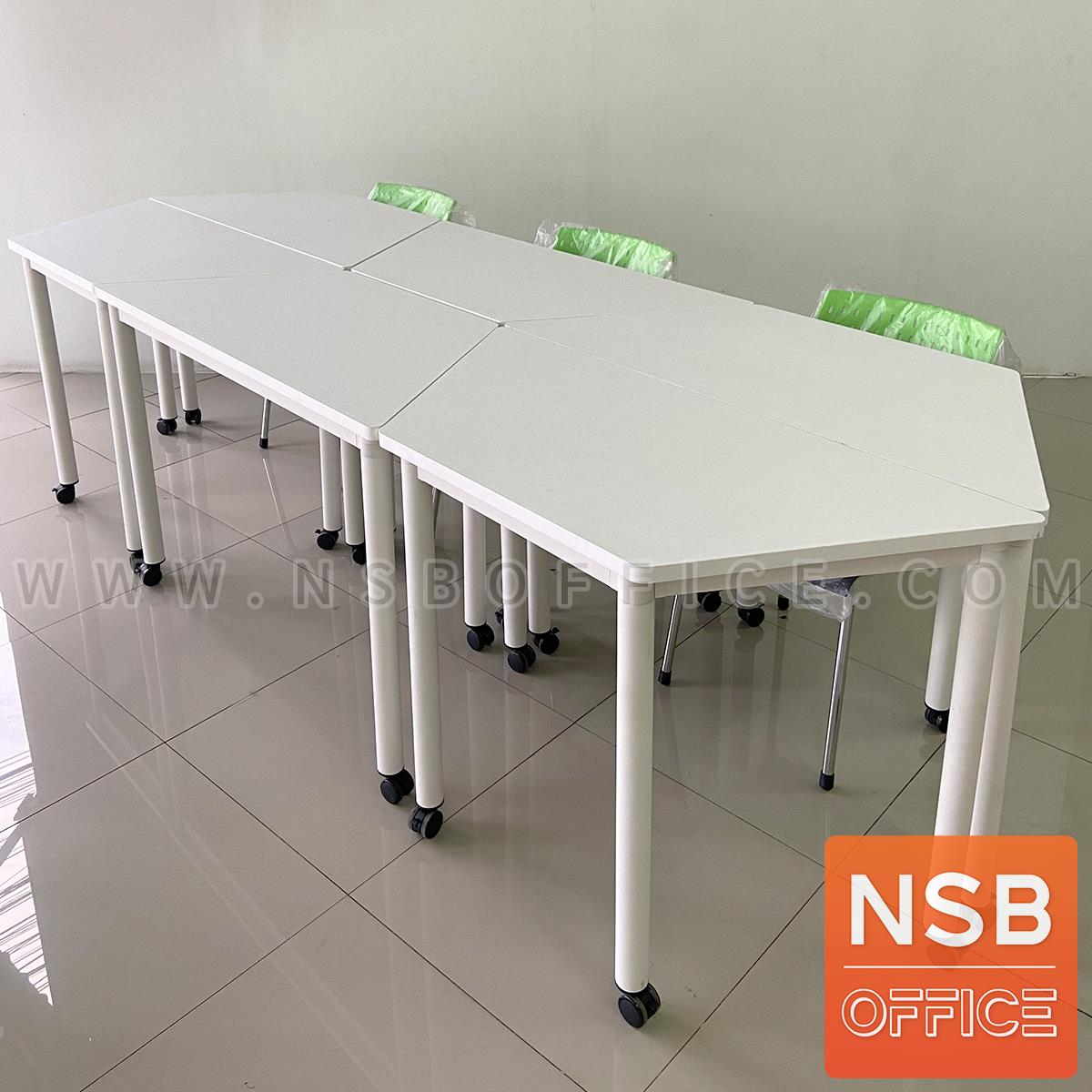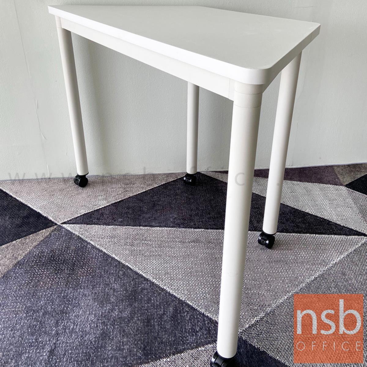: โต๊ะทรงคางหมูล้อเลื่อน 118W cm รุ่น Malfoy (มัลฟอย) หน้า Top เมลามีน HPL โครงขาสีขาว