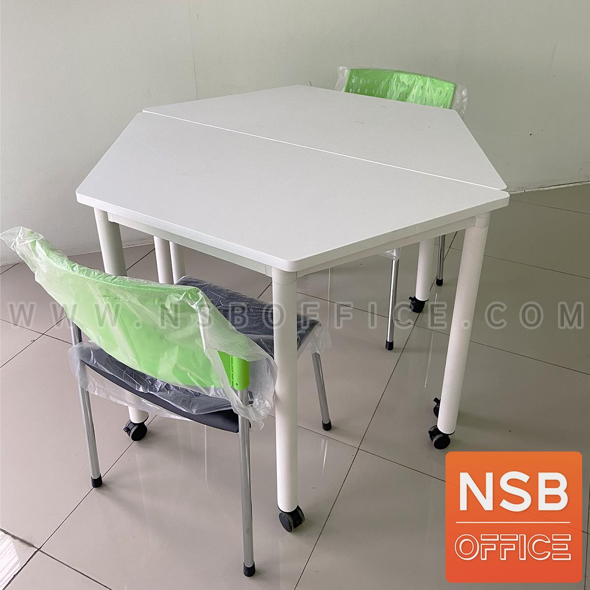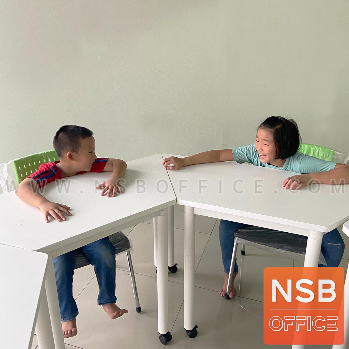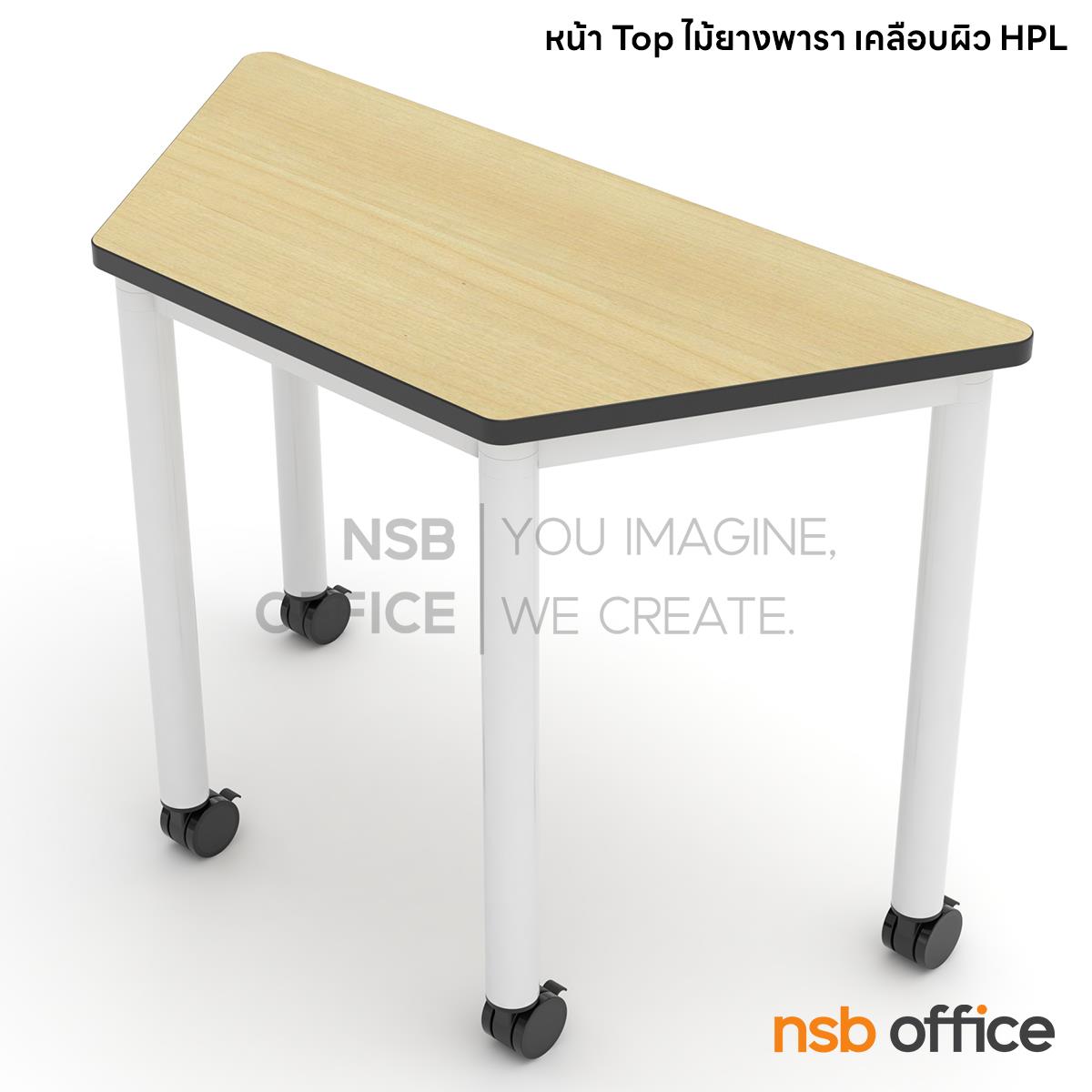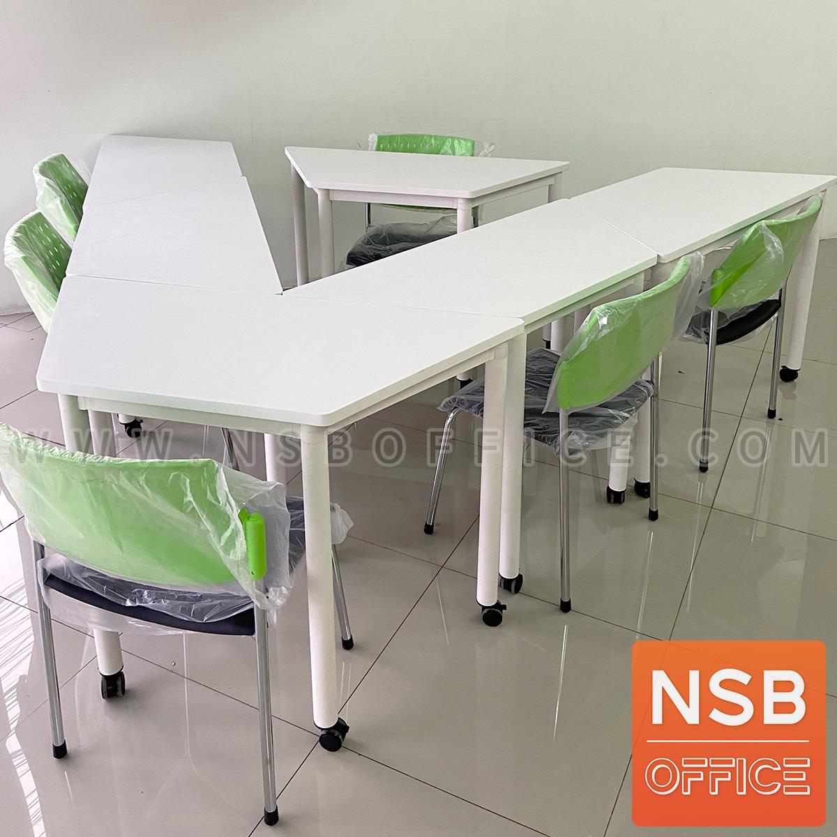 : โต๊ะทรงคางหมูล้อเลื่อน 118W cm รุ่น Malfoy (มัลฟอย) หน้า Top เมลามีน HPL โครงขาสีขาว