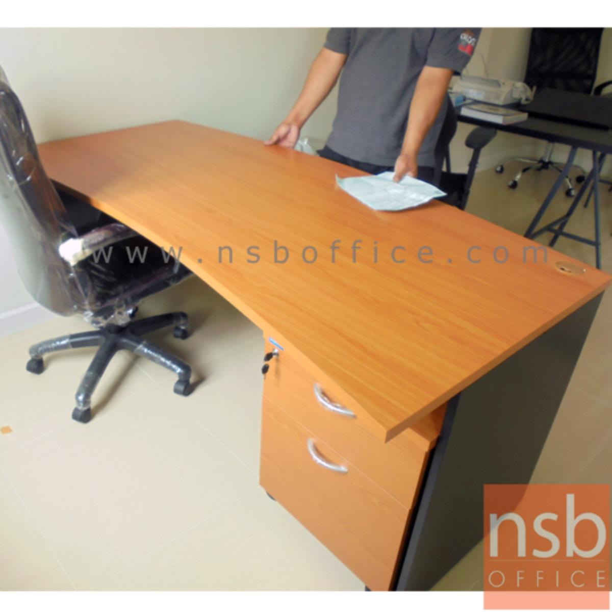 ประกอบด้วย โต๊ะผุ้บริหารหน้าโค้งเสี้ยวพระจันทร์ พร้อมตู้ 2 ลิ้นชัก / ผิวเมลามีน สีเชอร์รี่ดำ / TOP หนา 25 มม