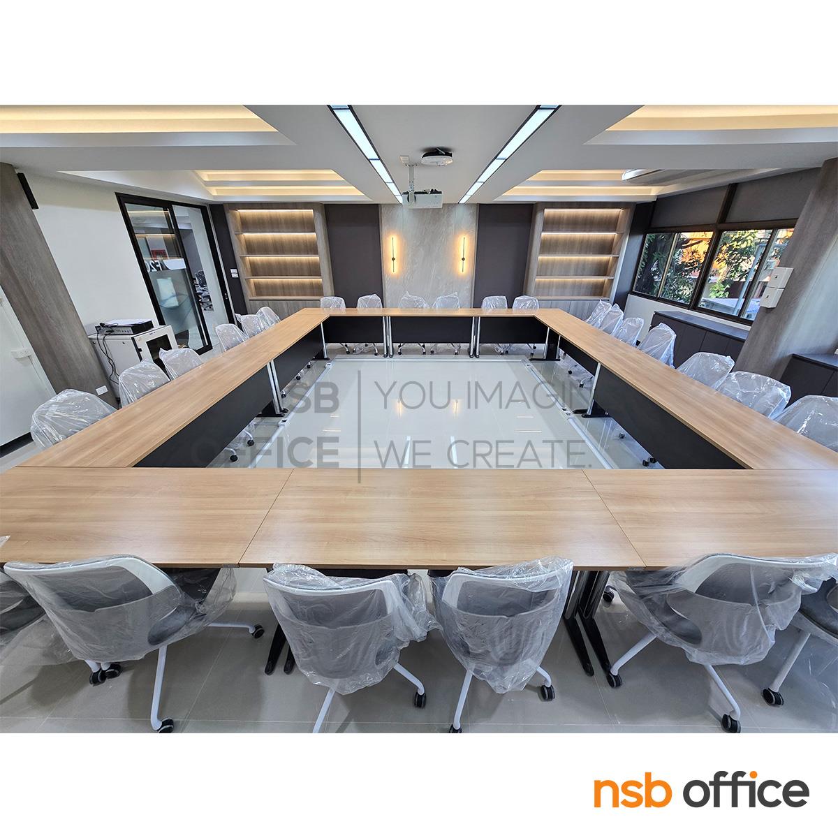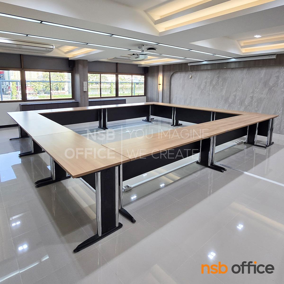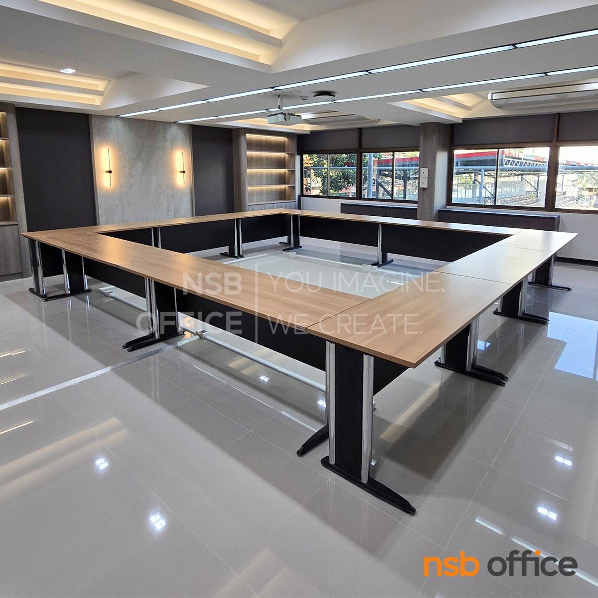 A05A031: โต๊ะประชุมตรง รุ่น Oracle พร้อมบังตาไม้ ขาเหล็กตัวแอล